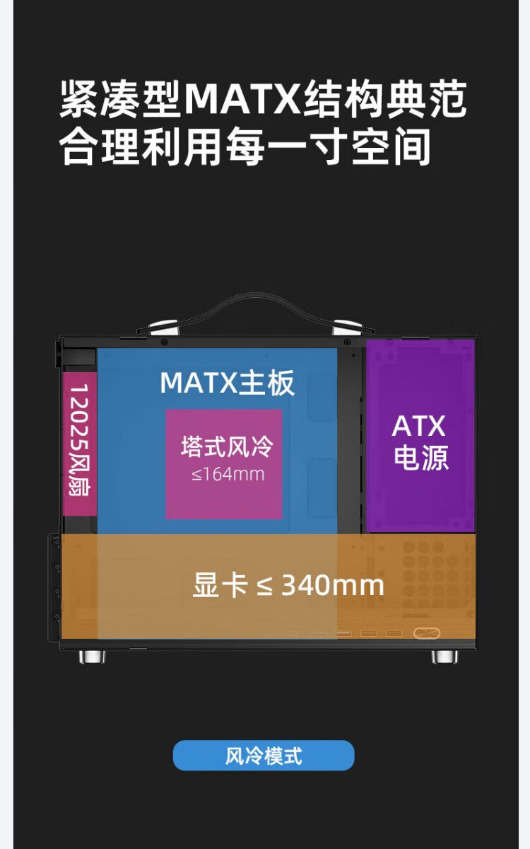 G300 MATX case (about 16L/portable case/340mm long graphics card/164mm air cooling/14CM ATX power supply/Type-c) G300 white model