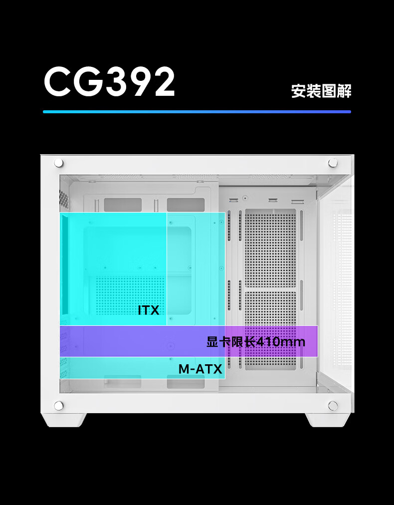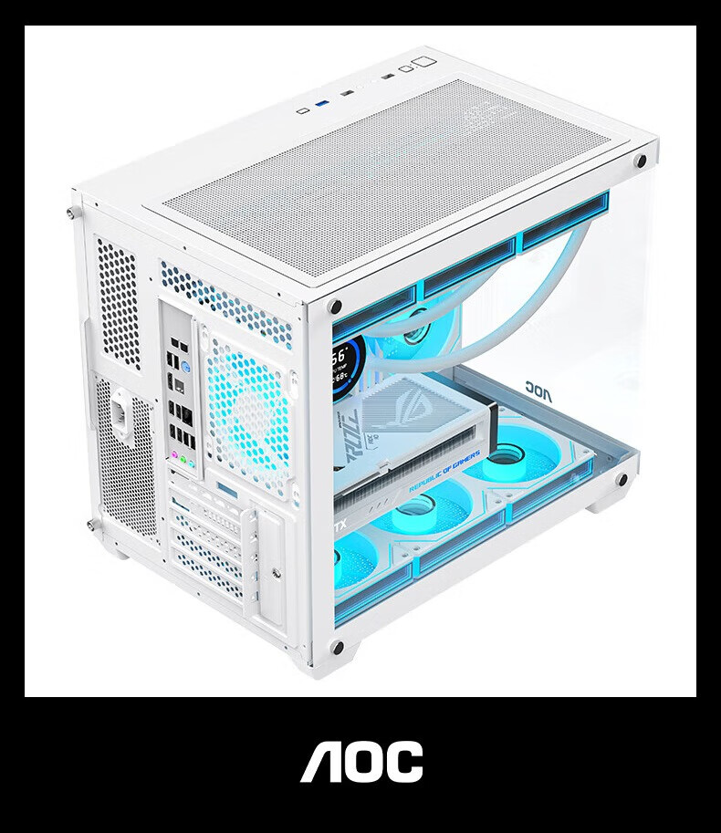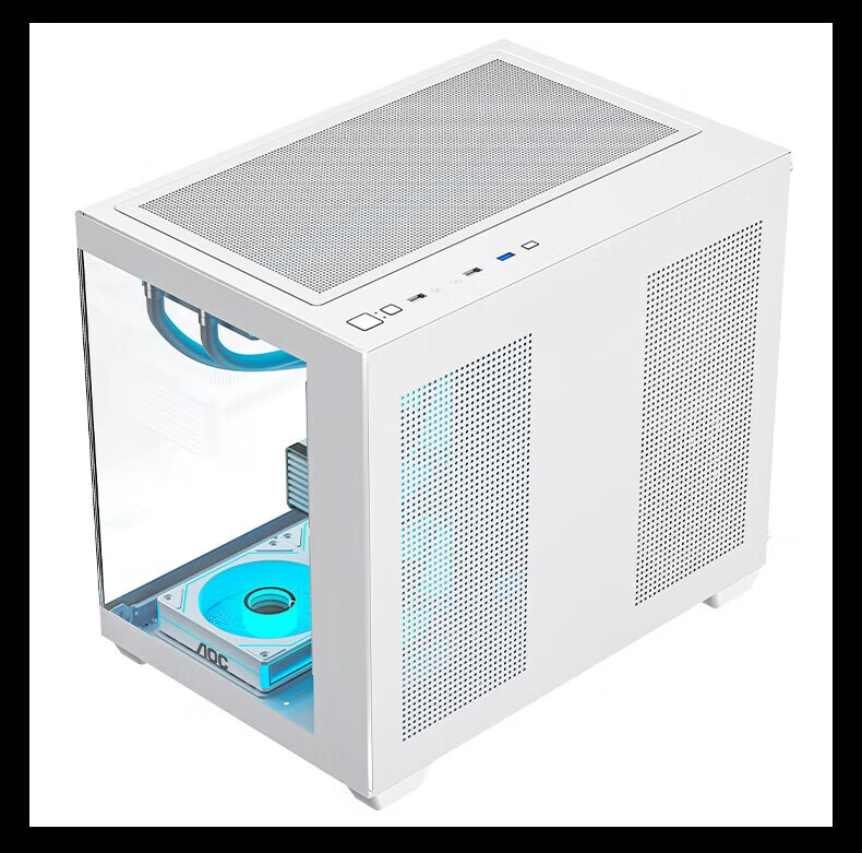 AOCCG392 MATX-Raumgehäuse mit Meerblick ohne Säulen, Panorama-Seitenansicht, ITX-Computer-Hauptgehäuse, hochwertiges Desktop-DIY-Spiel E-Sport, unterstützt 360 wassergekühltes Weiß, CG392W weiß + 6 T120-Lüfter, standardmäßig 2 negativ und 4 positiv