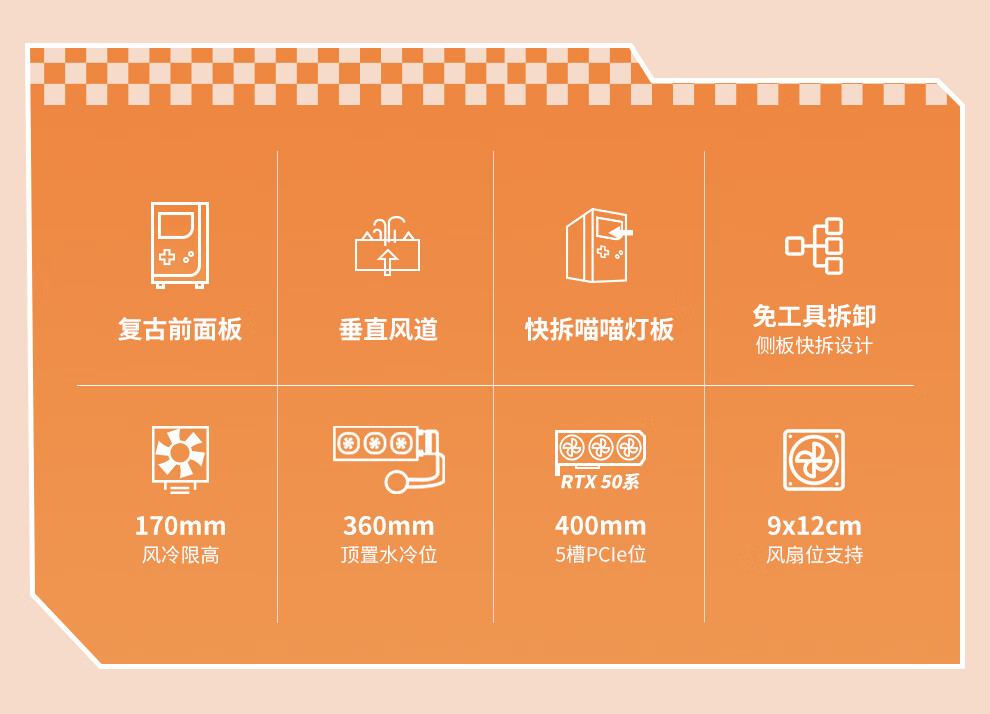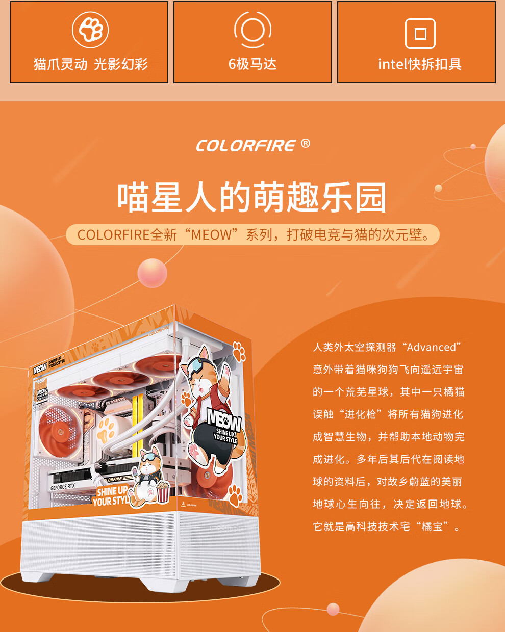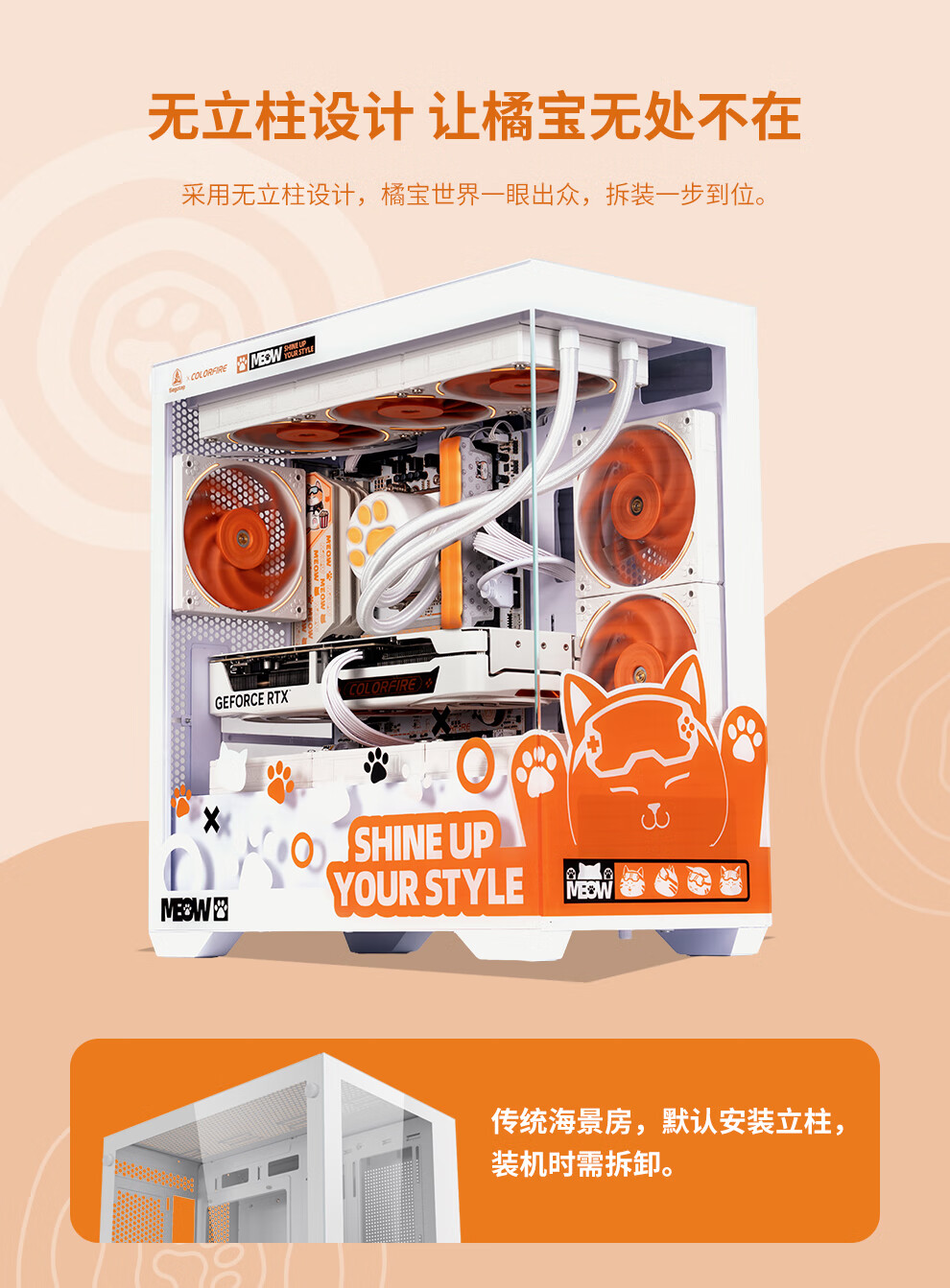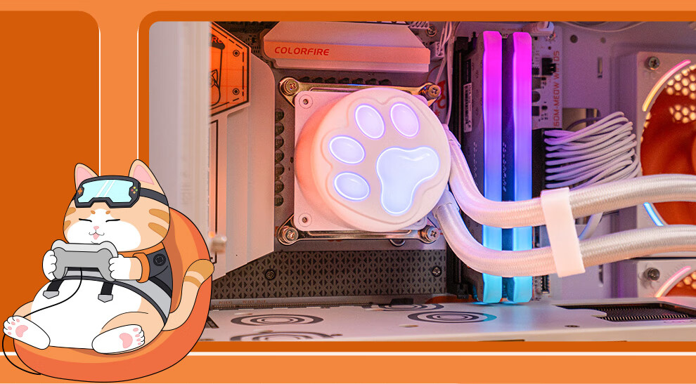 Colorful (Colorful) Endless G+ Orange Shadow Orange Memphis Video Game Version Computer Case Ocean View Room MATX Case Fan 360 Water Cooling Side Transparent Case Orange Cat Family Bucket Accessories Memphis Video Game Version Retro Gray + 360 Water Cooling + 4 Fans
