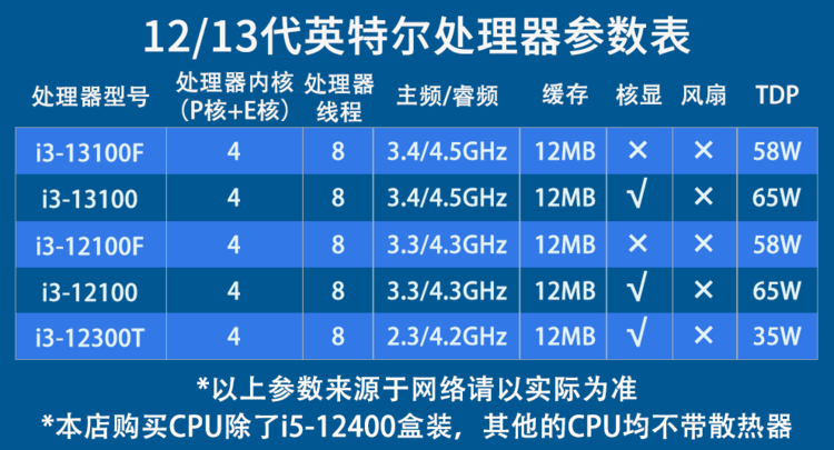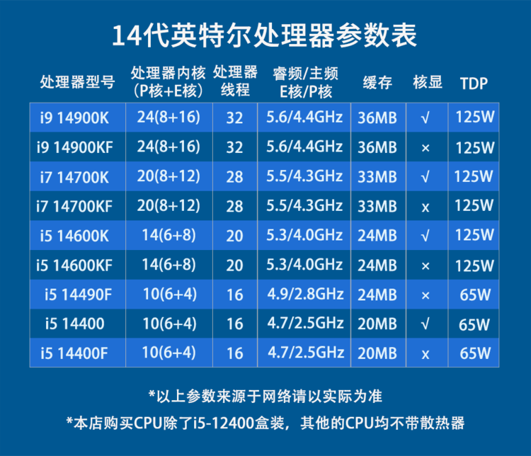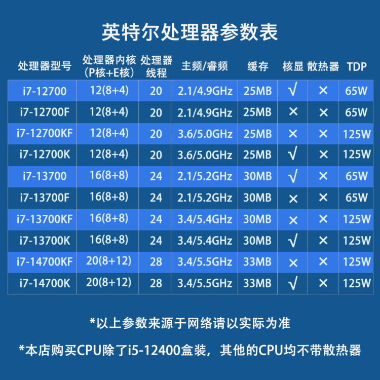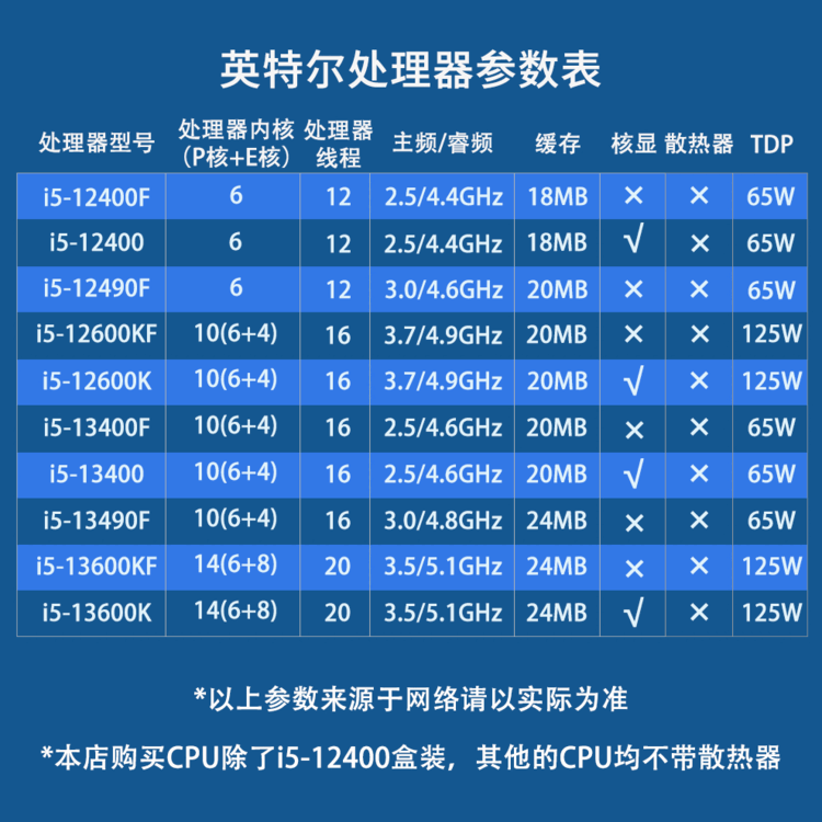 英特尔(Intel)12/13代CPU处理器 i5 12400f 13400f 12600kf 14600KF 14900KF U285 U265 U255 盒装 散片 14代i9 14900K散片【店保三年】