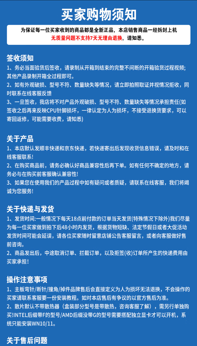 英特尔14代CPU处理器i3i5i7i914100F14400F14500F14600KF14700KF14900KF全新盒装全新散片【店保三年】 i9 14900K拆机散片
