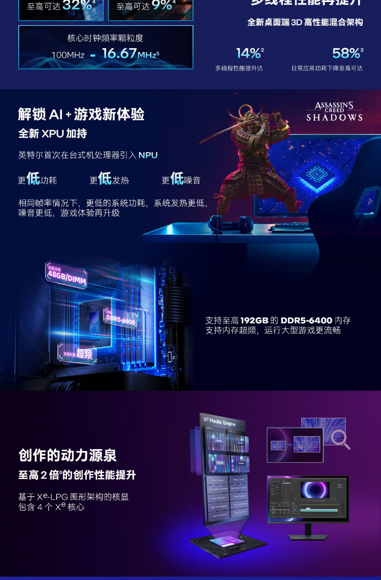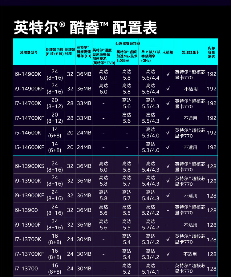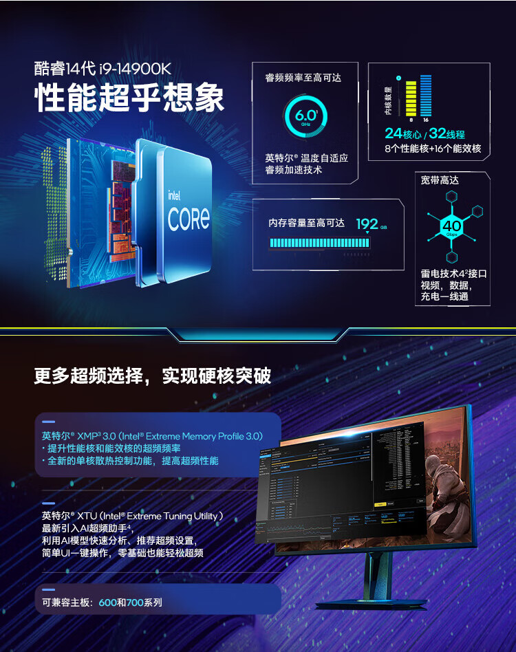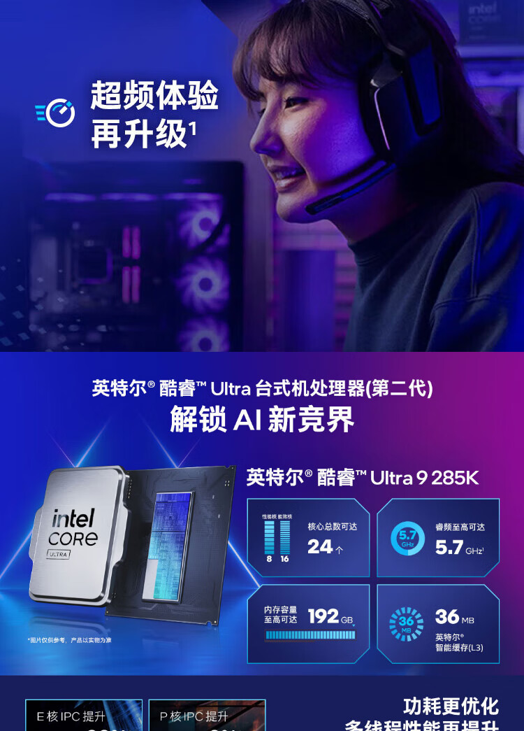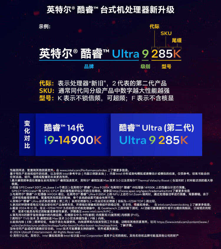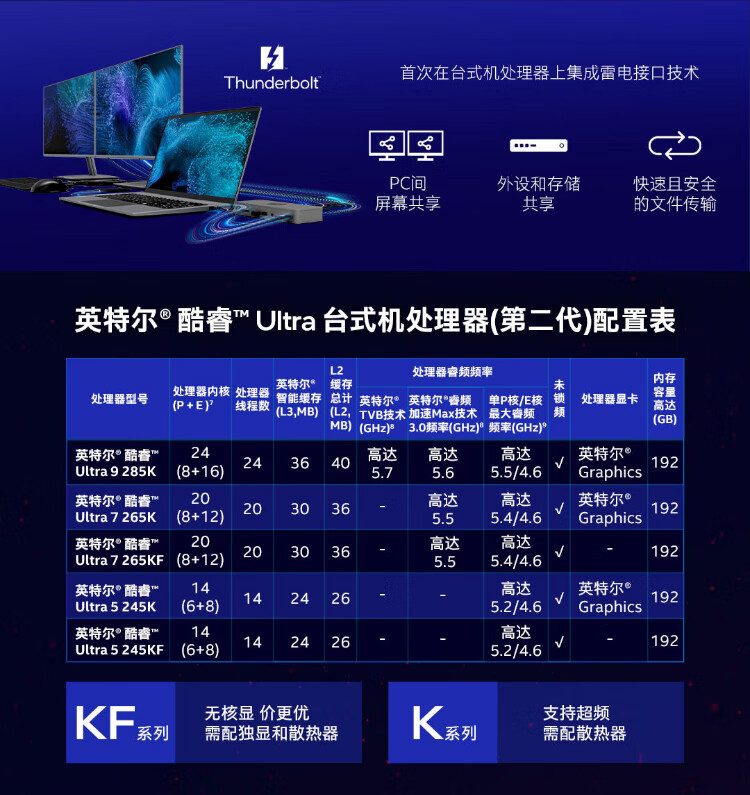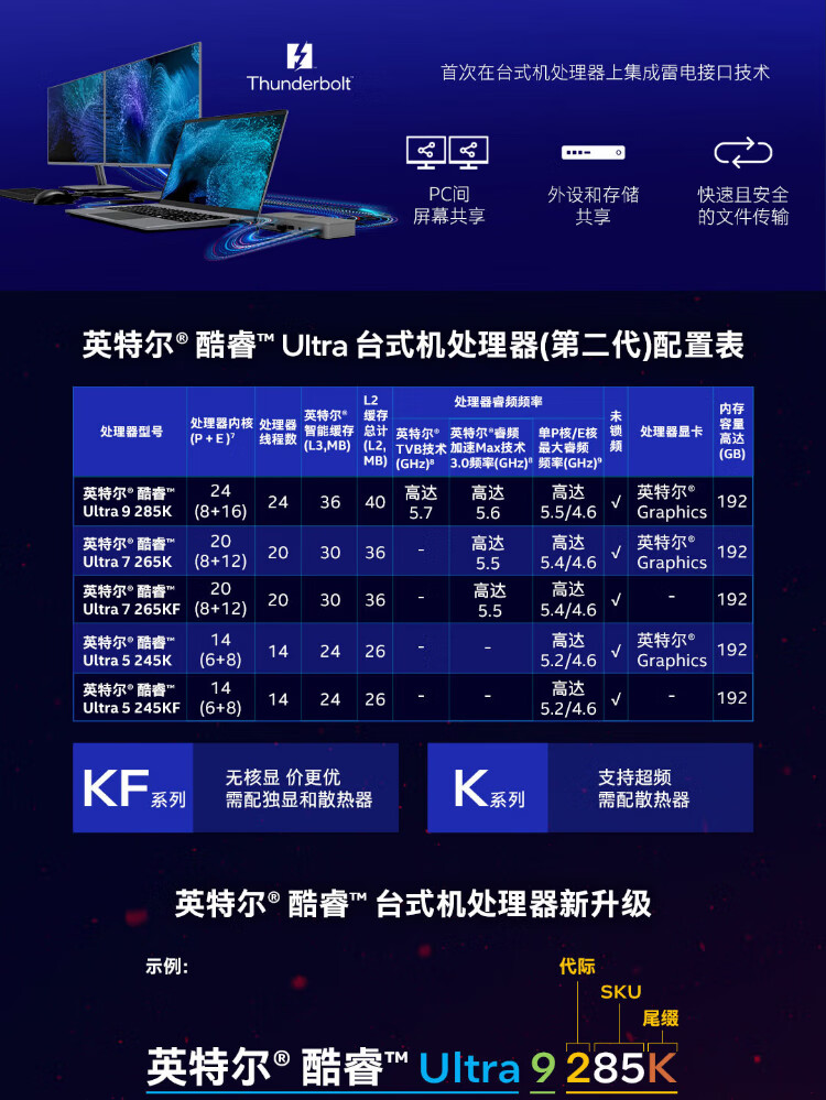 英特尔(Intel)15代 酷睿 Ura U9 285K U7 265KF U5 245KF 14代 酷睿 i7 1 i9 14900K 24核32线程 带核显