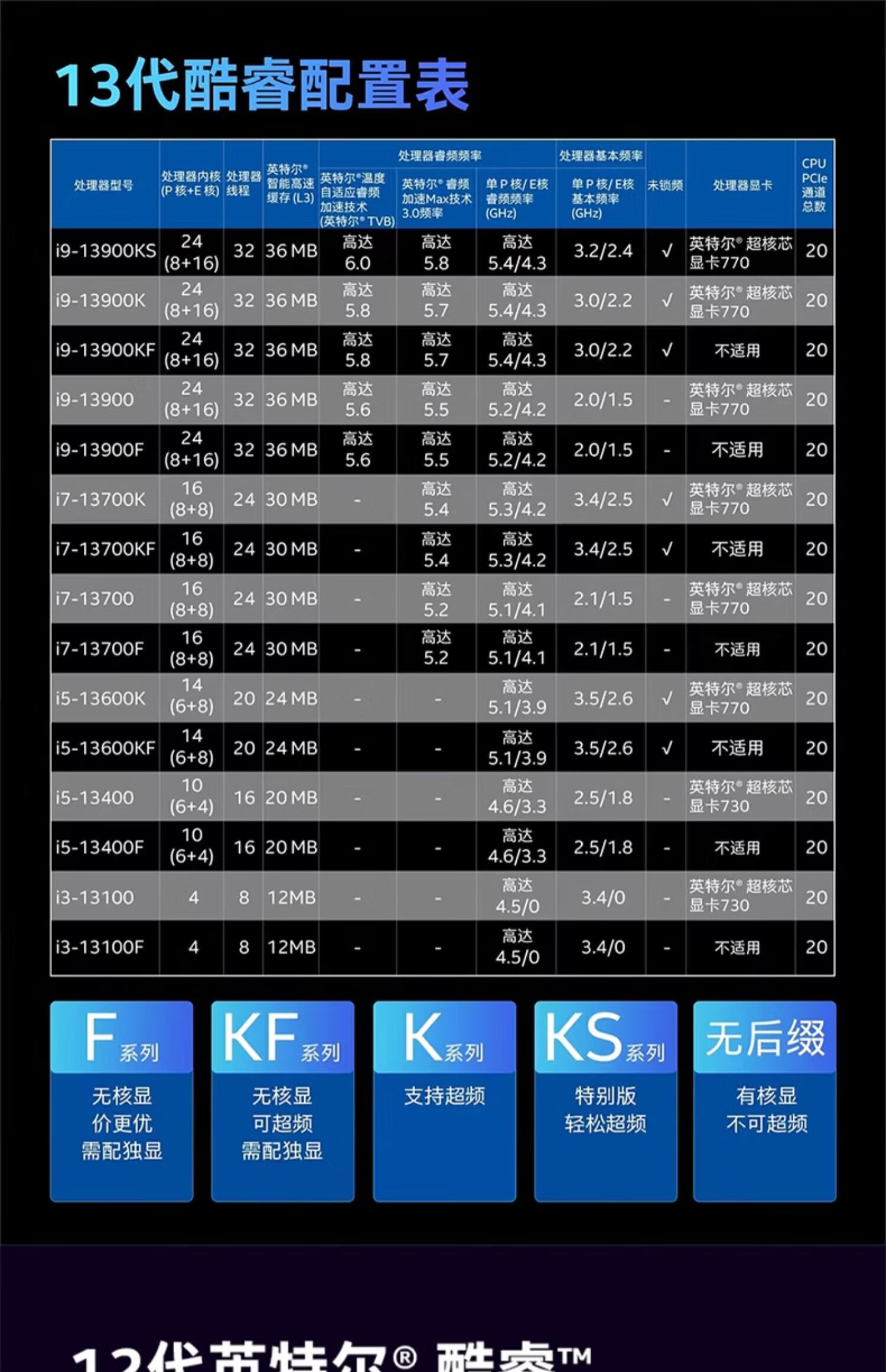糜鸿Intel英特尔全新CPU盒装 I3-12100 I5-13400F 12490F 13600KF I7 12700KF 13100F 13700散片 13代酷睿i5-13600K散片【核显】 【3年包换】
