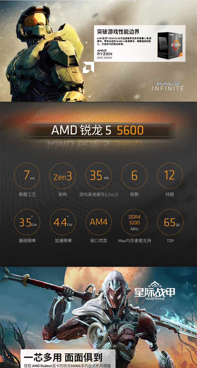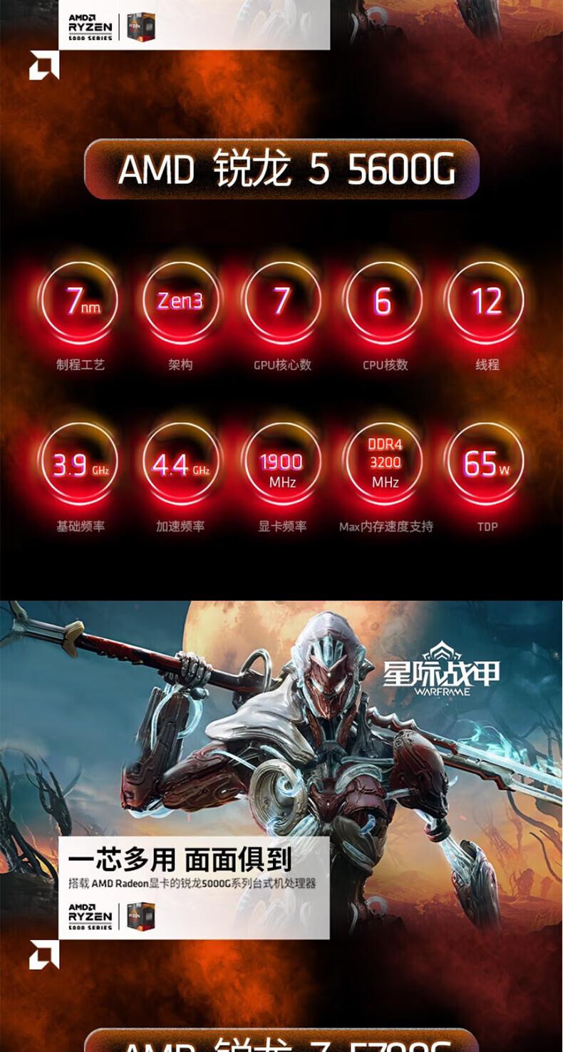 糜鸿AMD全新CPU 锐龙Ryzen R5 5600 5600GT/R7 5700X3D/5700G散片AM4处理器散片 AMD R5-5500GT 全新散片【核显】