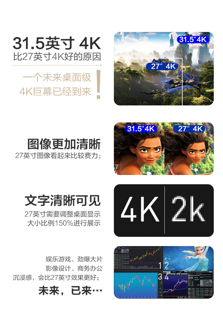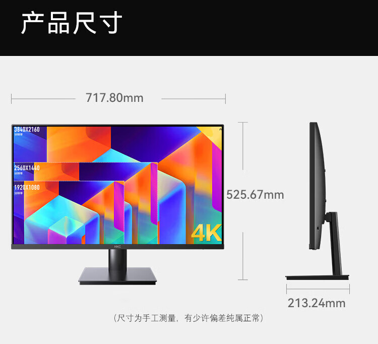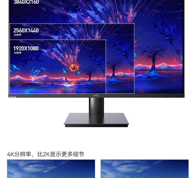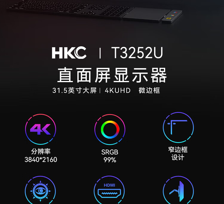 HKC 31.5英寸4K超清大屏幕P3广色域 广视角微边框 商用办公壁挂低蓝光不闪屏PS5台式电脑显示器T3252U