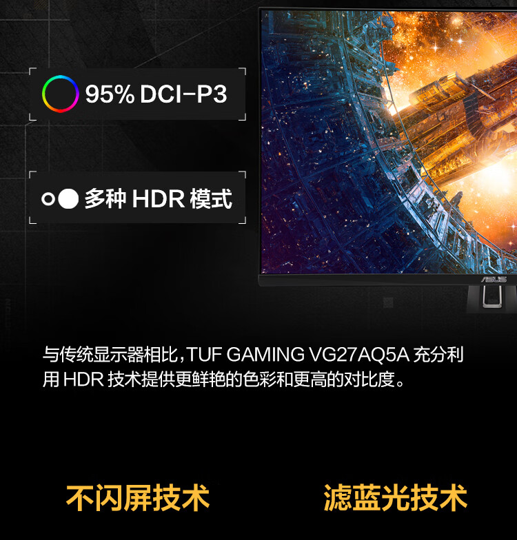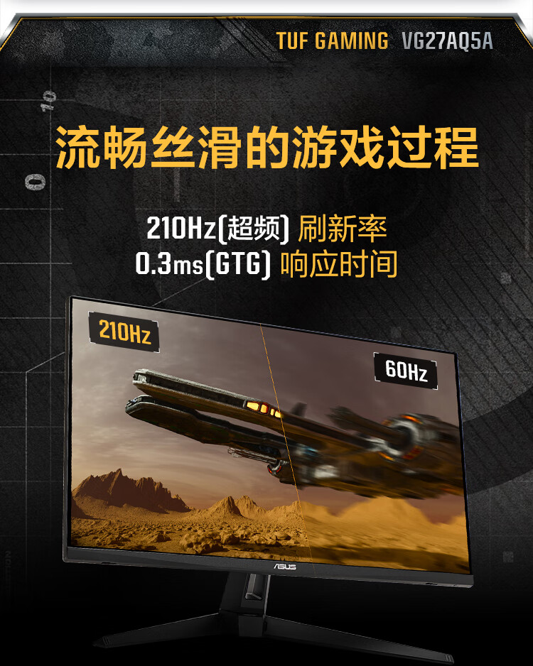 ASUS VG27AQ5A 27-inch monitor 2K 180Hz monitor overclocked 210Hz FastIPS HDR10 FreeSync tear-free 0.3ms response HDR10