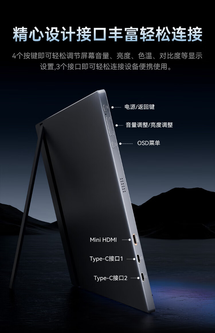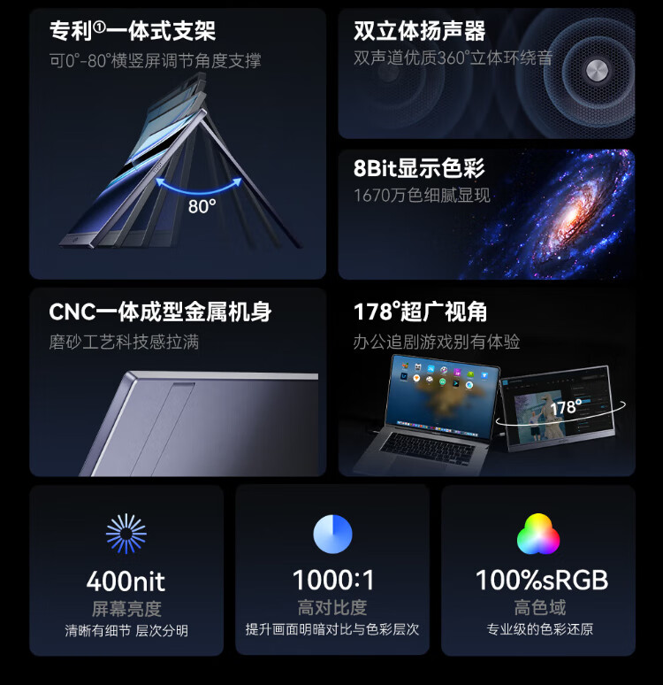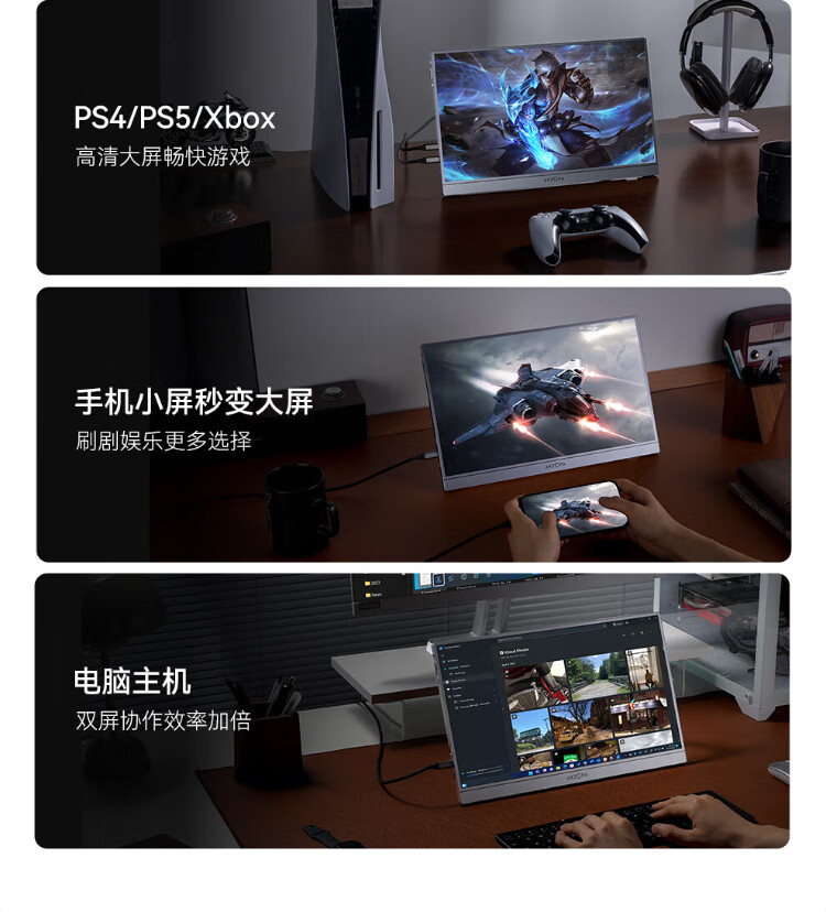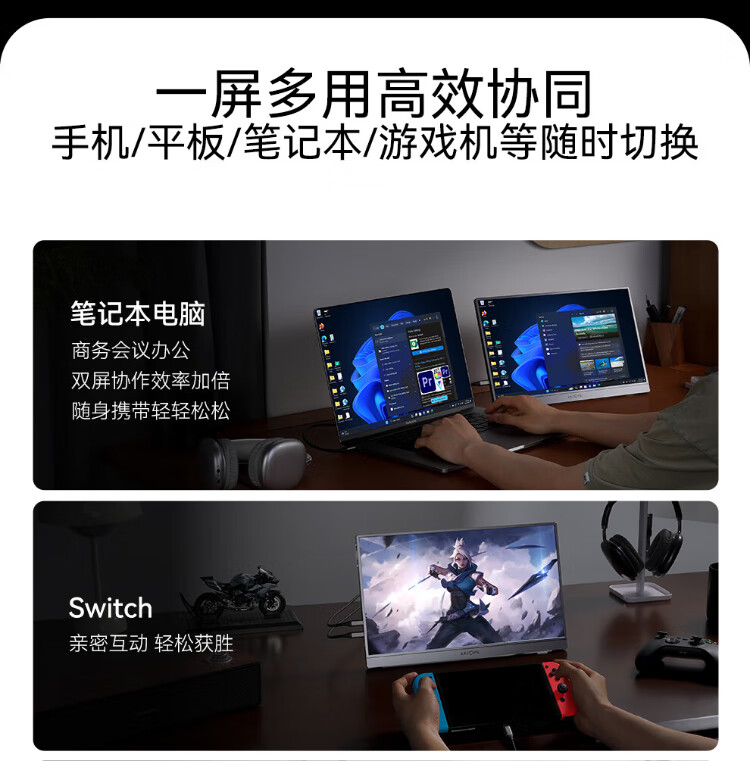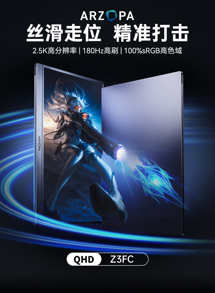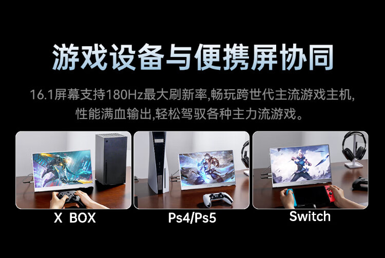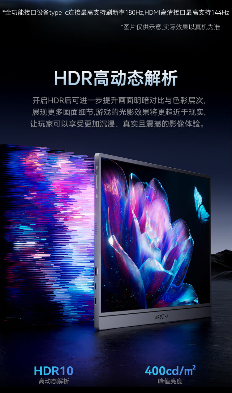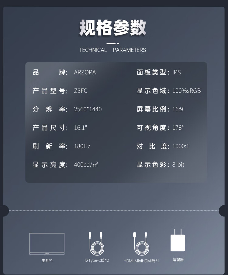ARZOPA阿卓帕16.1英寸2.5K 180Hz 高色域便携式显示器 笔记本电脑手机副屏Switch Ps5/4显示屏Z3FC