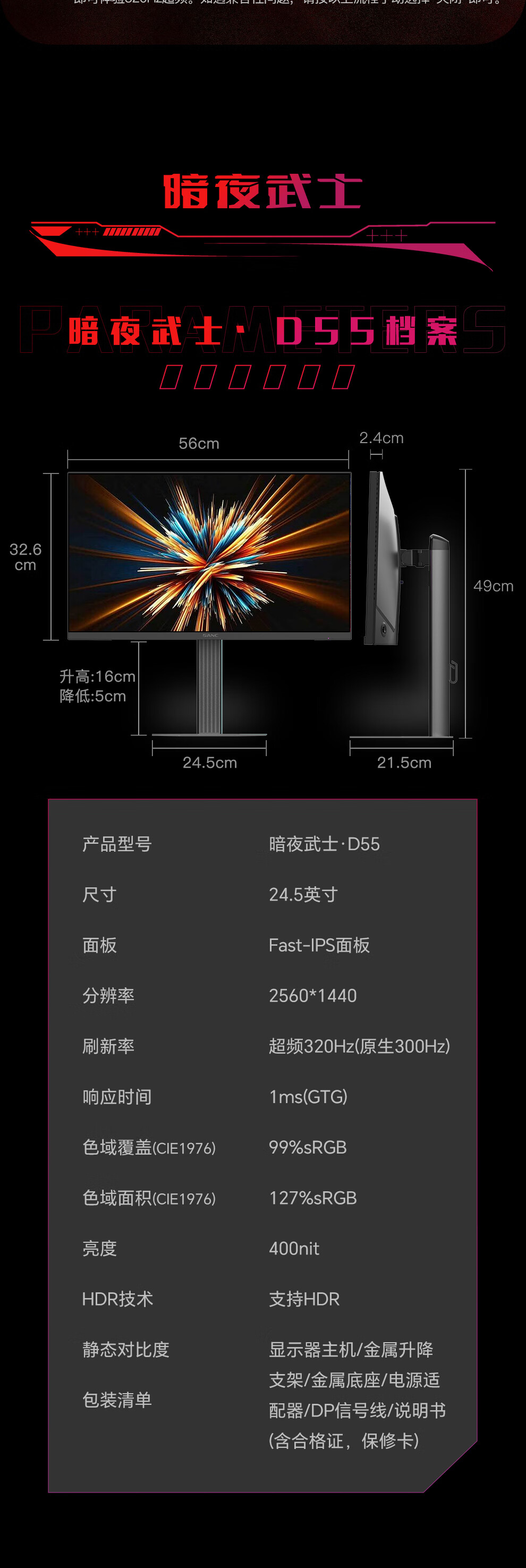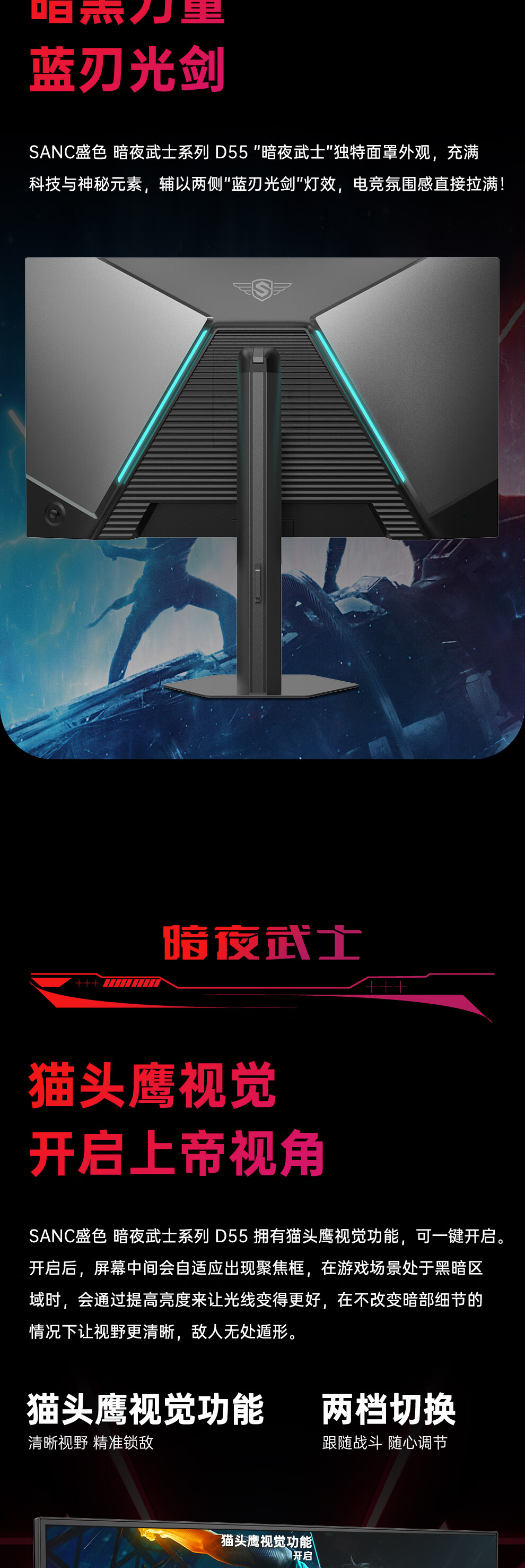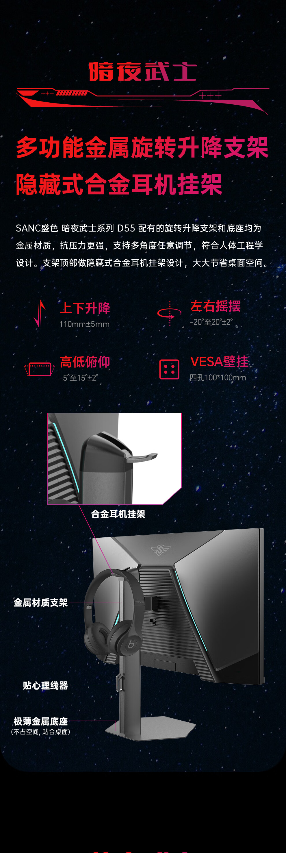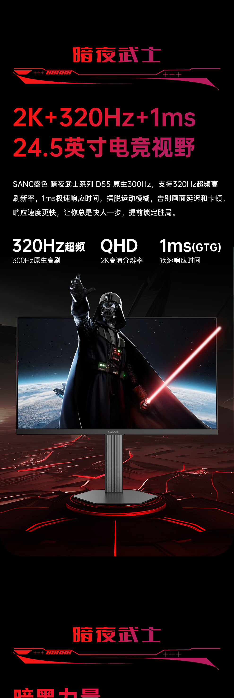 SANC盛色24.5英寸2K300Hz超频320Hz FastIPS显示器1ms 硬件低蓝光 耳机挂架小夜灯 电竞电脑屏幕D55