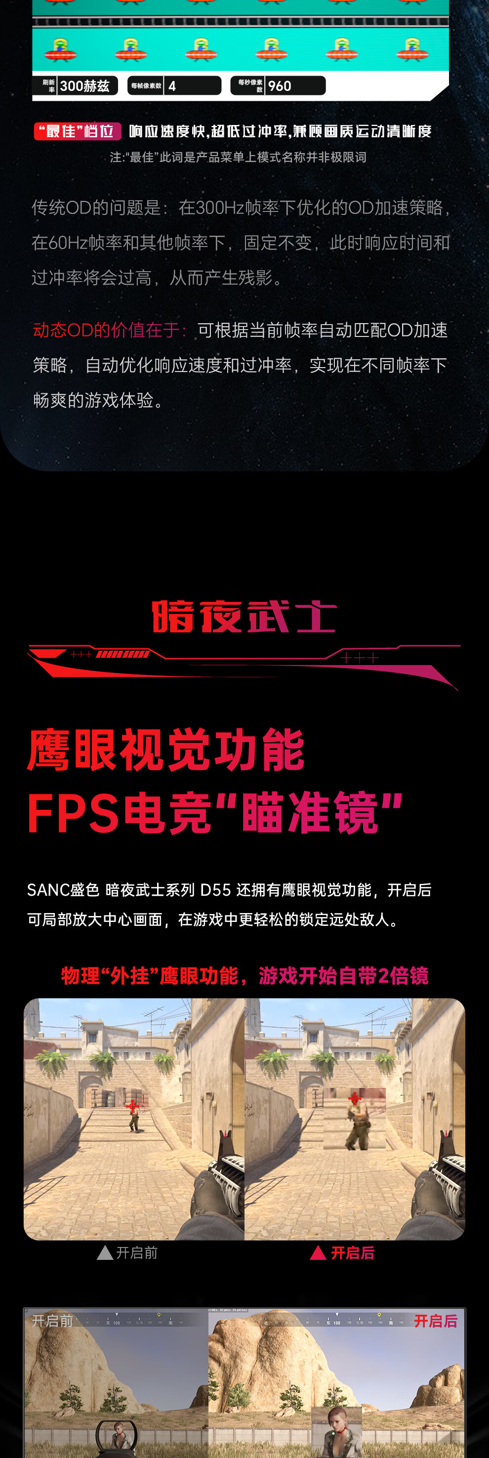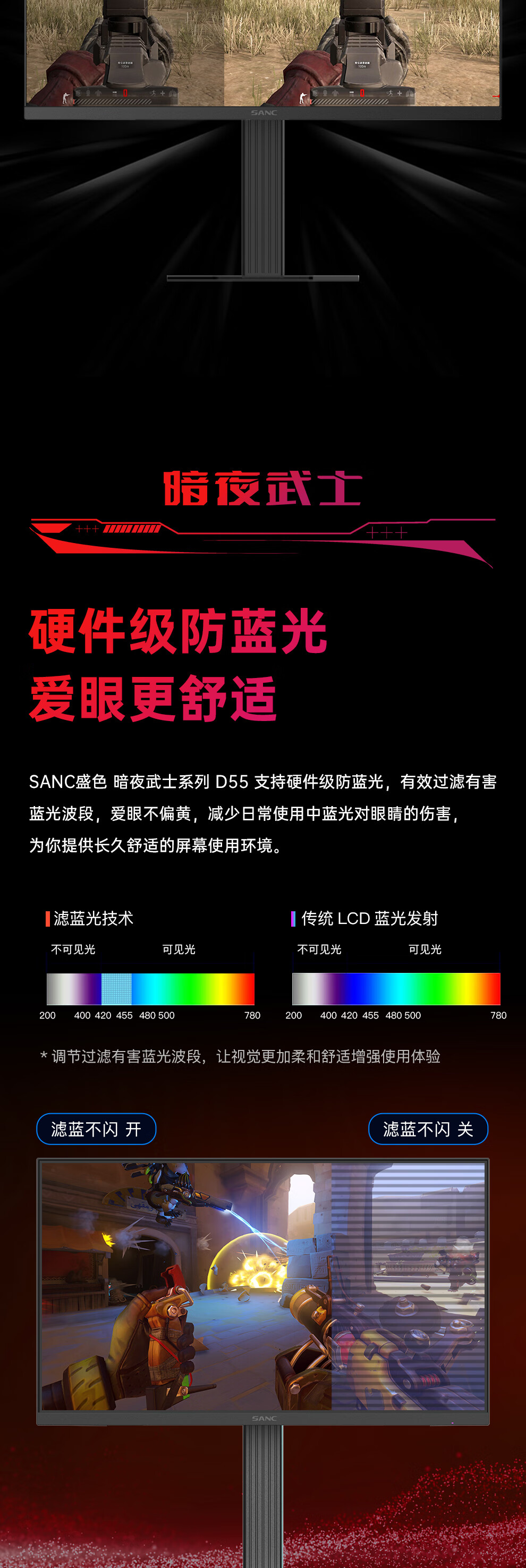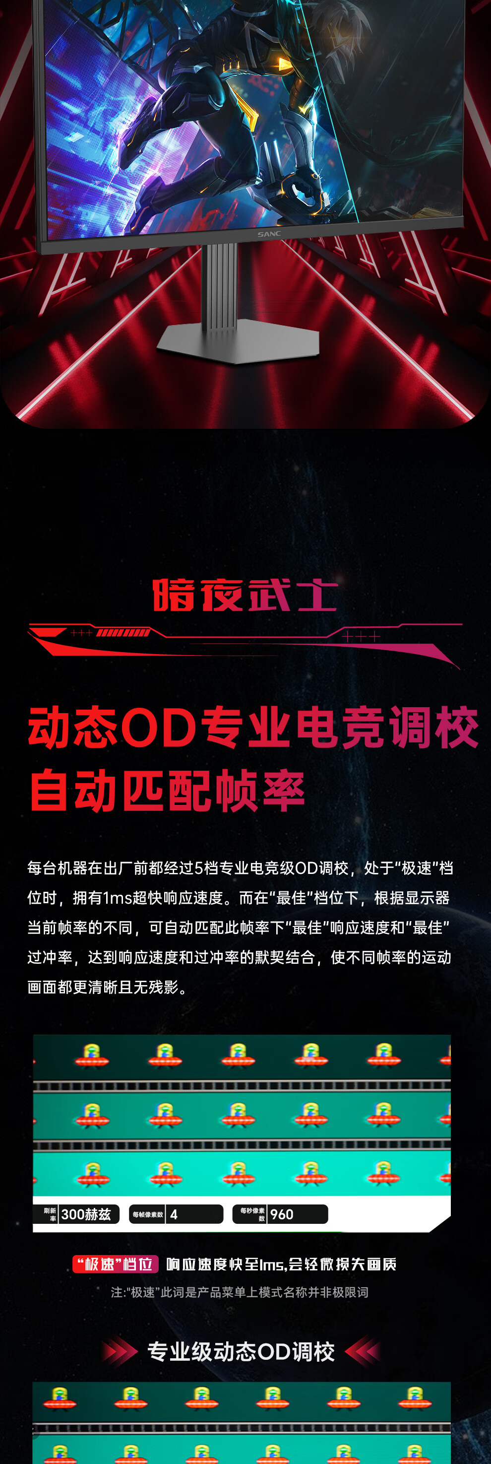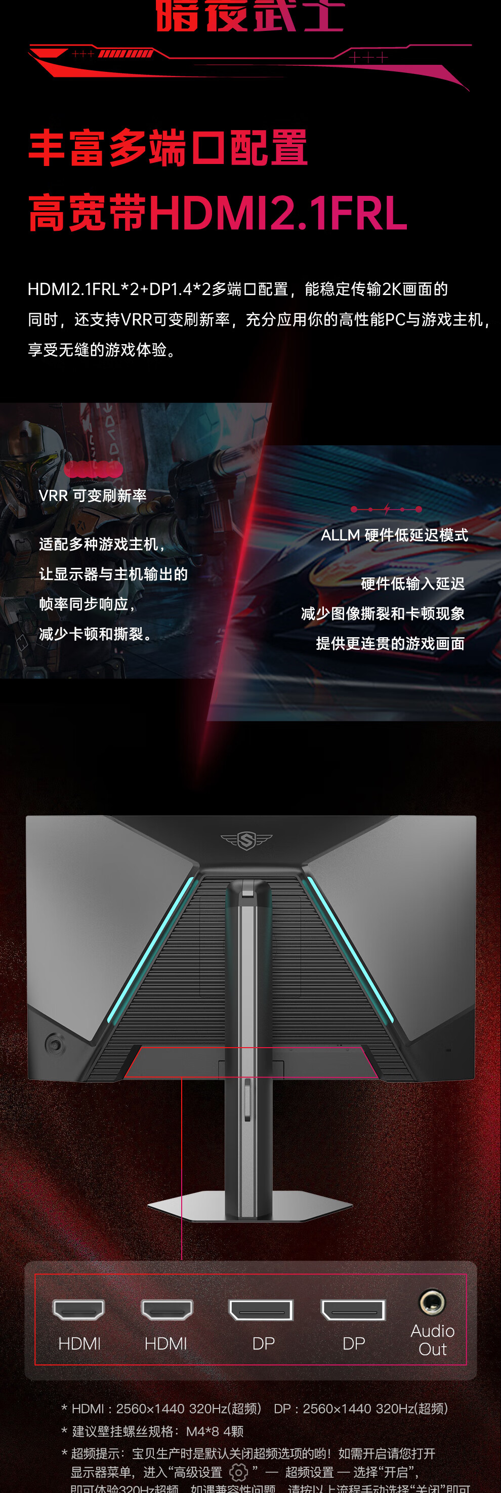 SANC盛色24.5英寸2K300Hz超频320Hz FastIPS显示器1ms 硬件低蓝光 耳机挂架小夜灯 电竞电脑屏幕D55