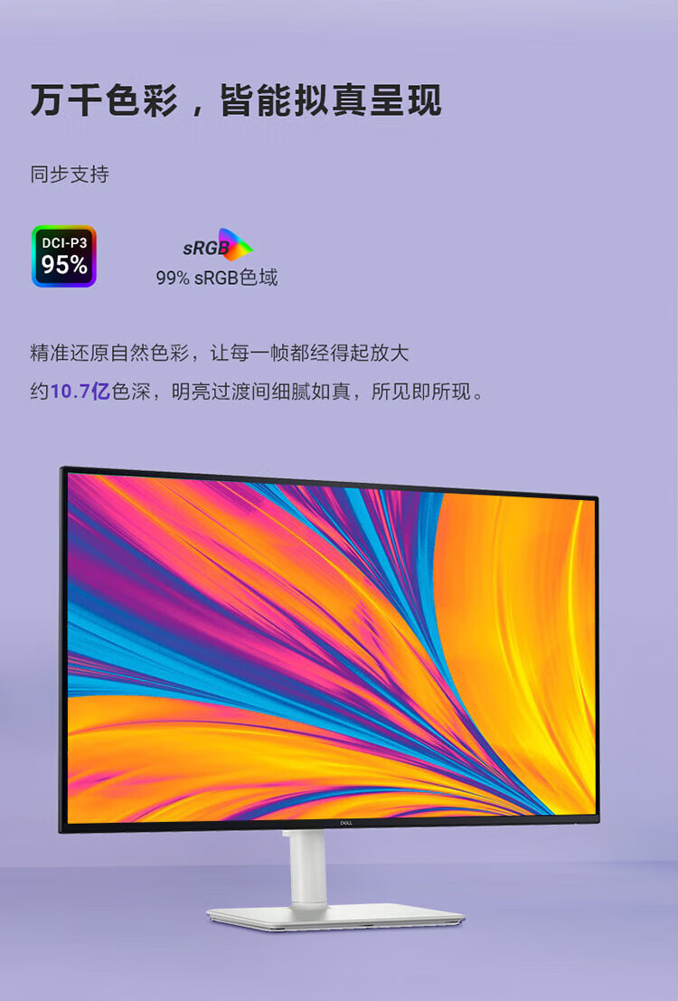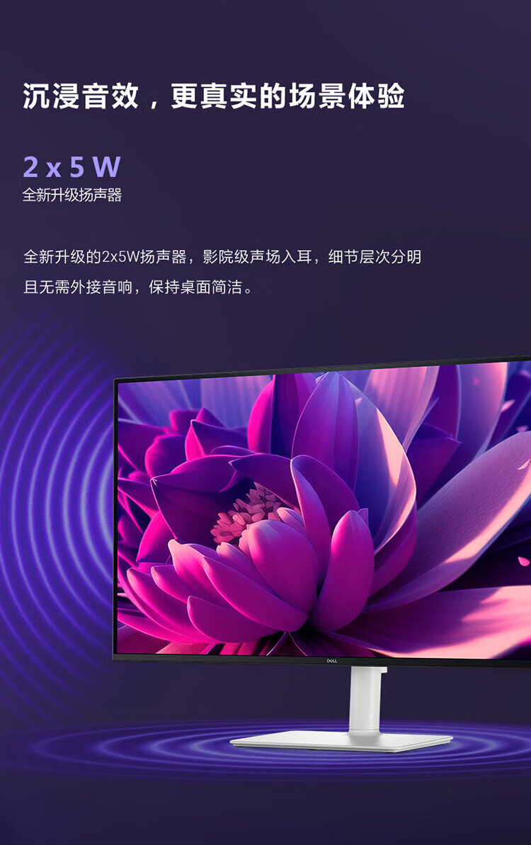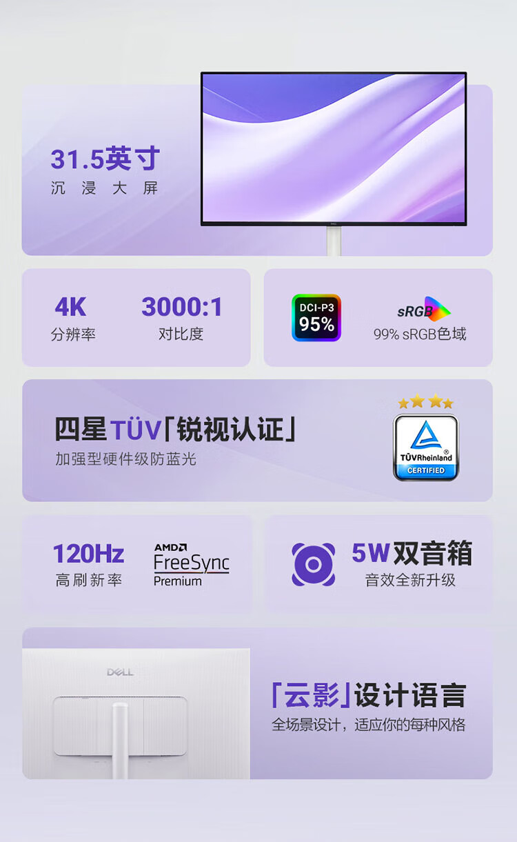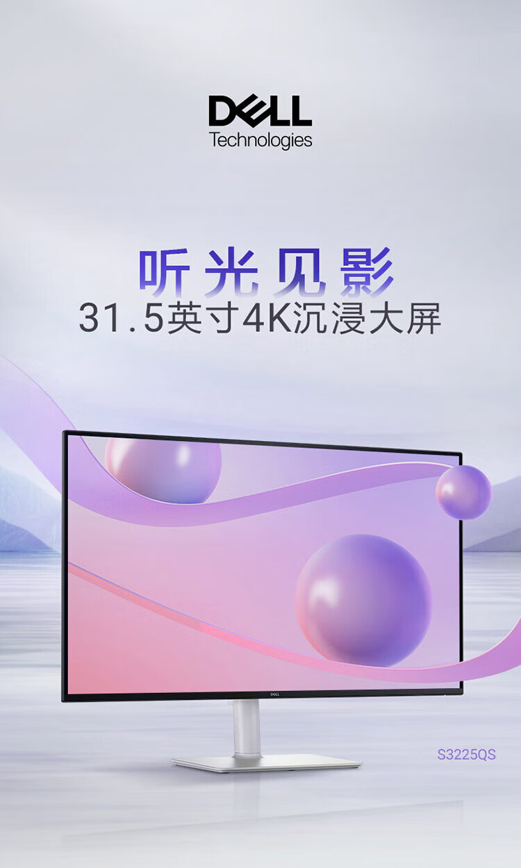戴尔(DELL)31.5英寸 4K显示器 120Hz高刷 内置音箱 硬件防蓝光 10.7亿色 FreeSync 电脑显示屏 S3225QS