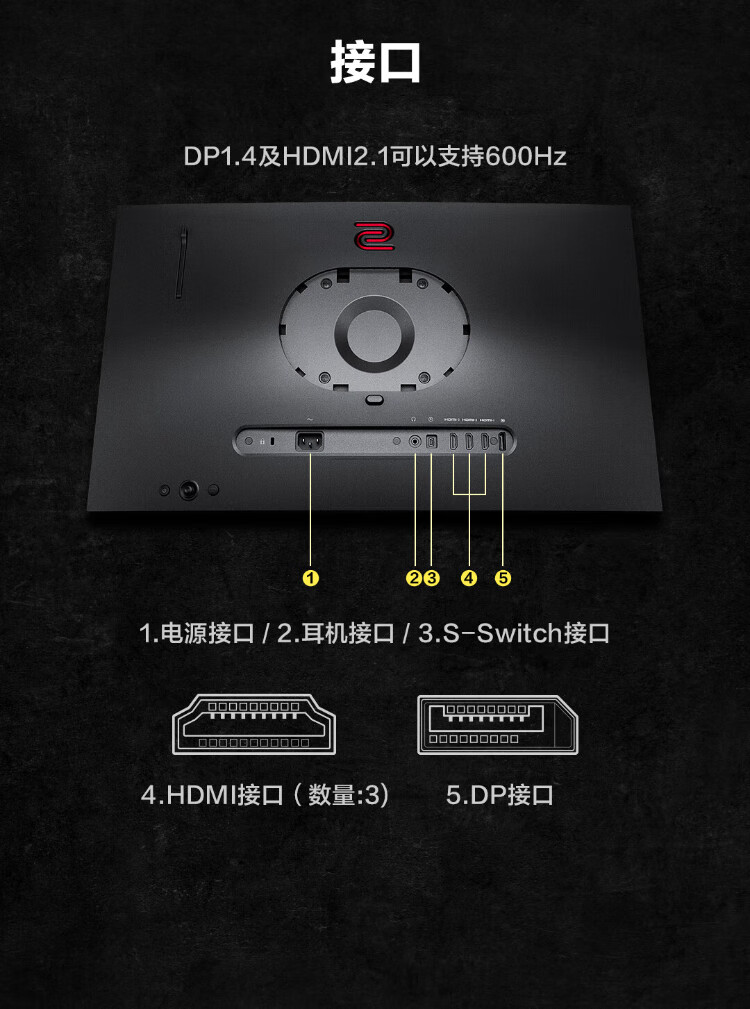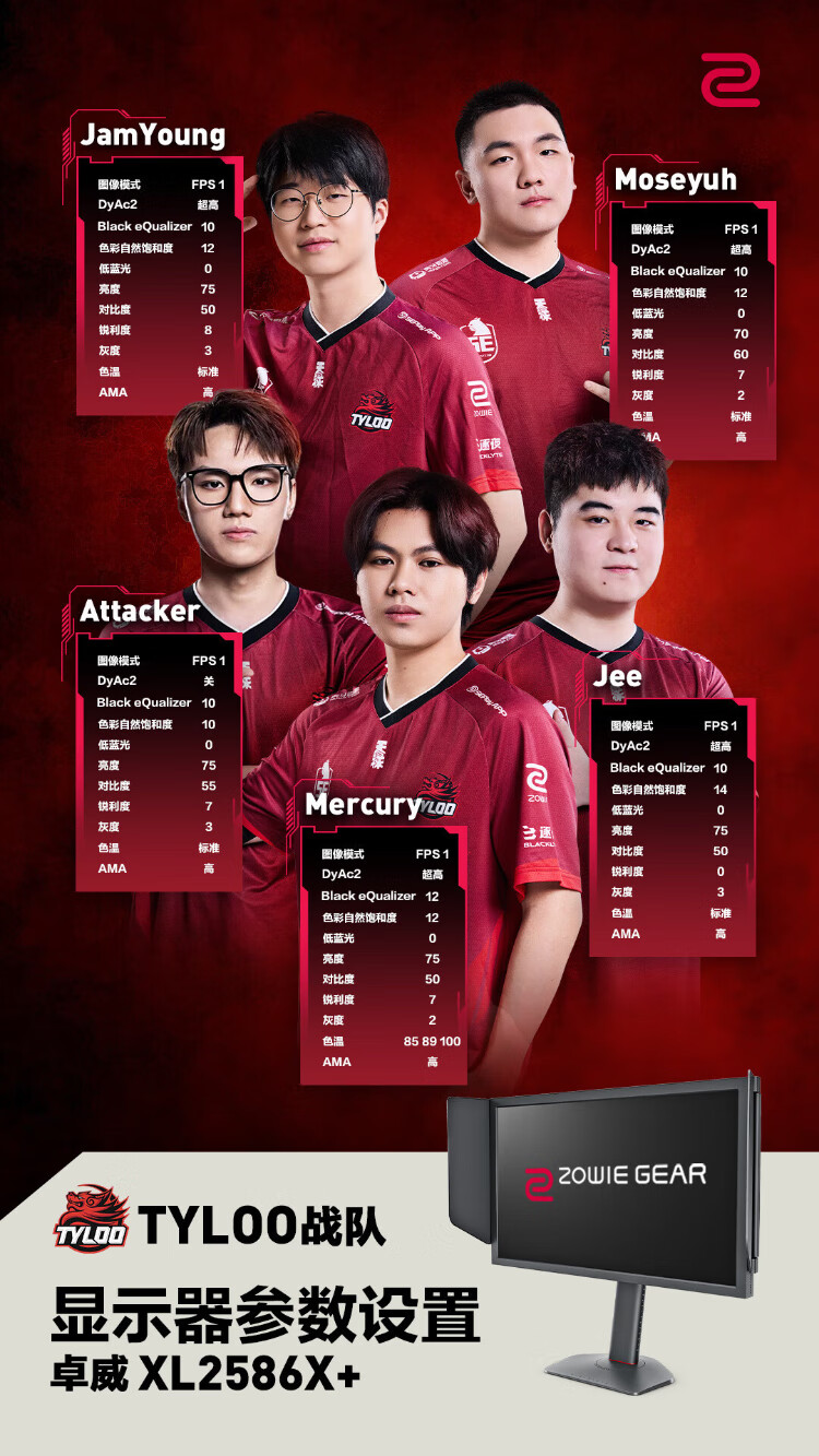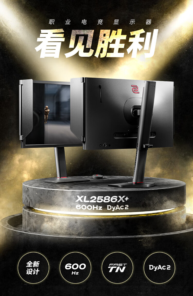 卓威奇亚(ZOWIE GEAR)600Hz显示器 电竞显示器 游戏显示屏 DyAc2技术 旋转升降 TN屏 电脑显示器540Hz升级款 XL2586X+
