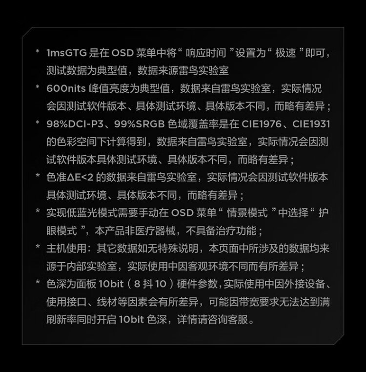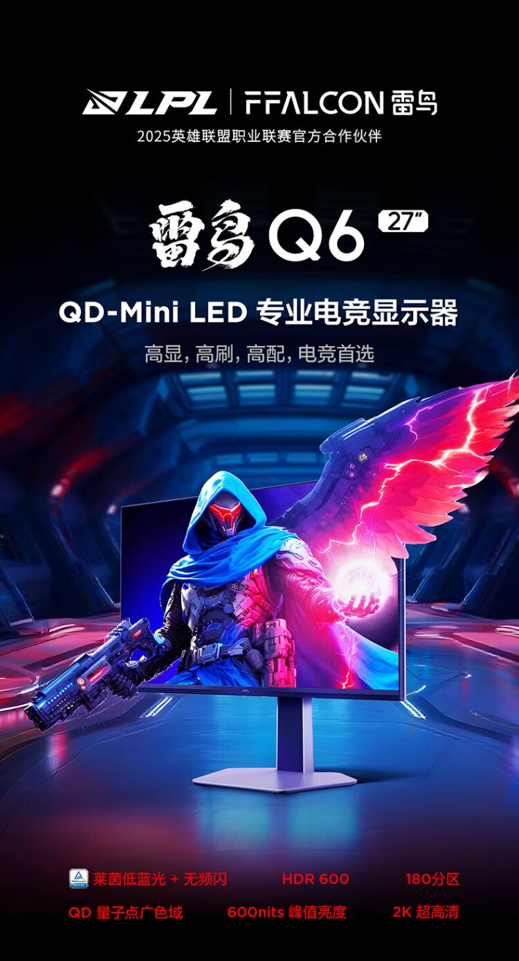 FFALCON雷鸟全新Q6 27英寸2K180Hz QD-MiniLED电竞高刷显示器 双音响 旋转升降 HDR600 护眼办公电脑显示屏