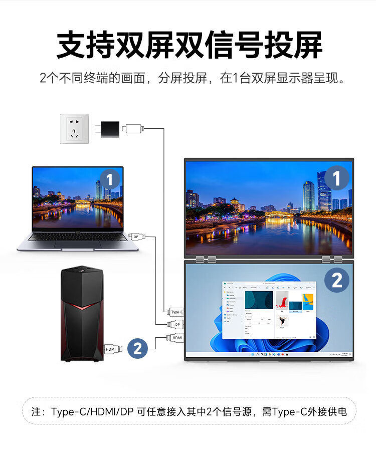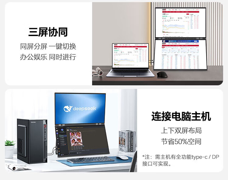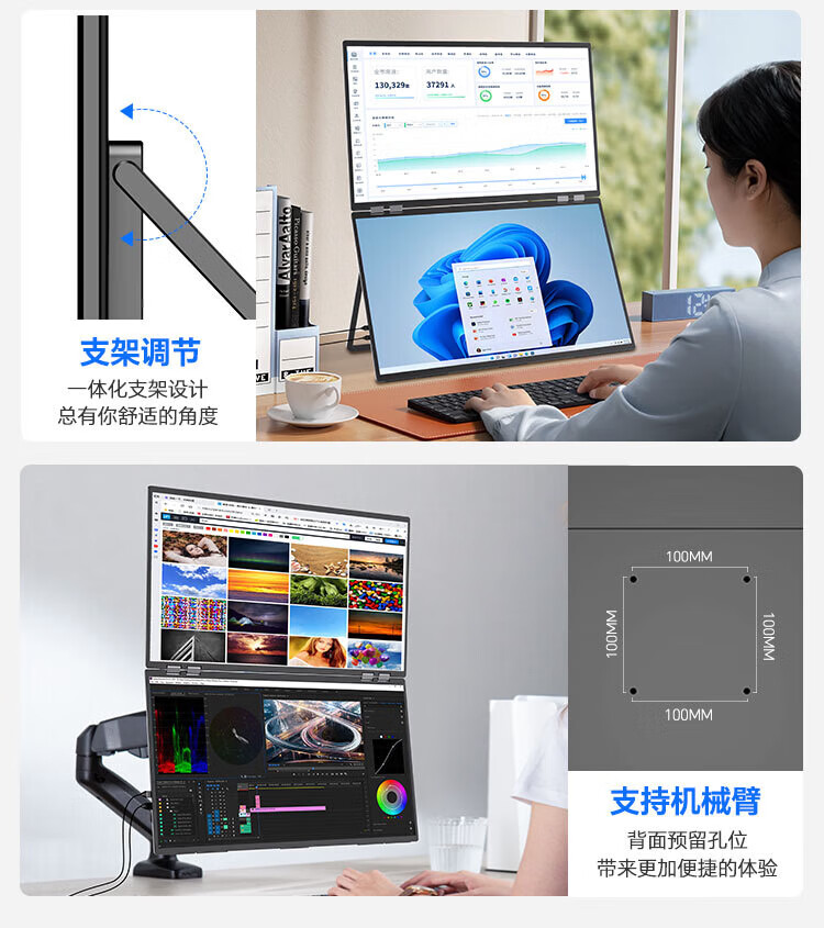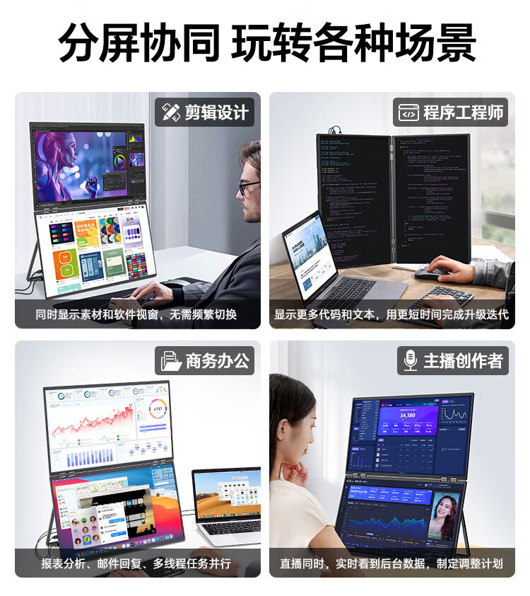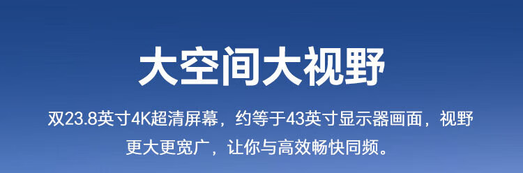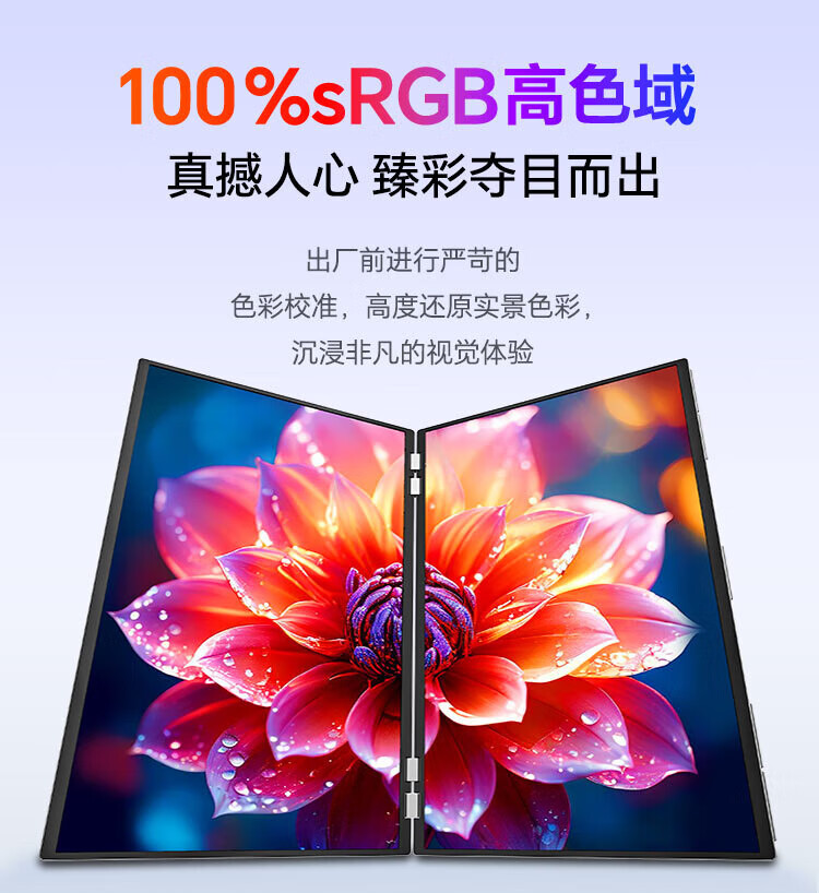 雕塑家23.8英寸4K超清显示器双屏可折叠 100%sRGB色域10bit滤蓝光 电脑办公笔记本炒股扩展副屏MU24LT