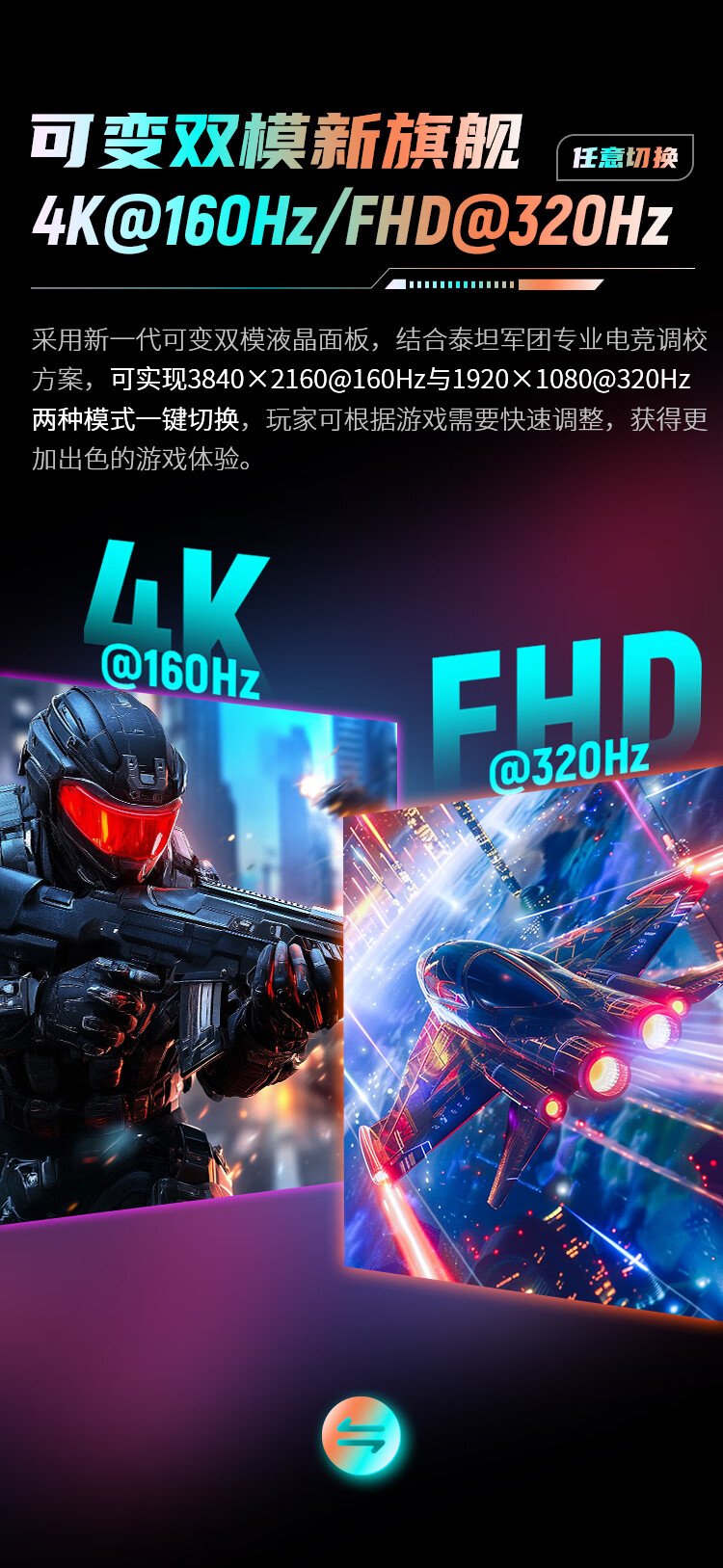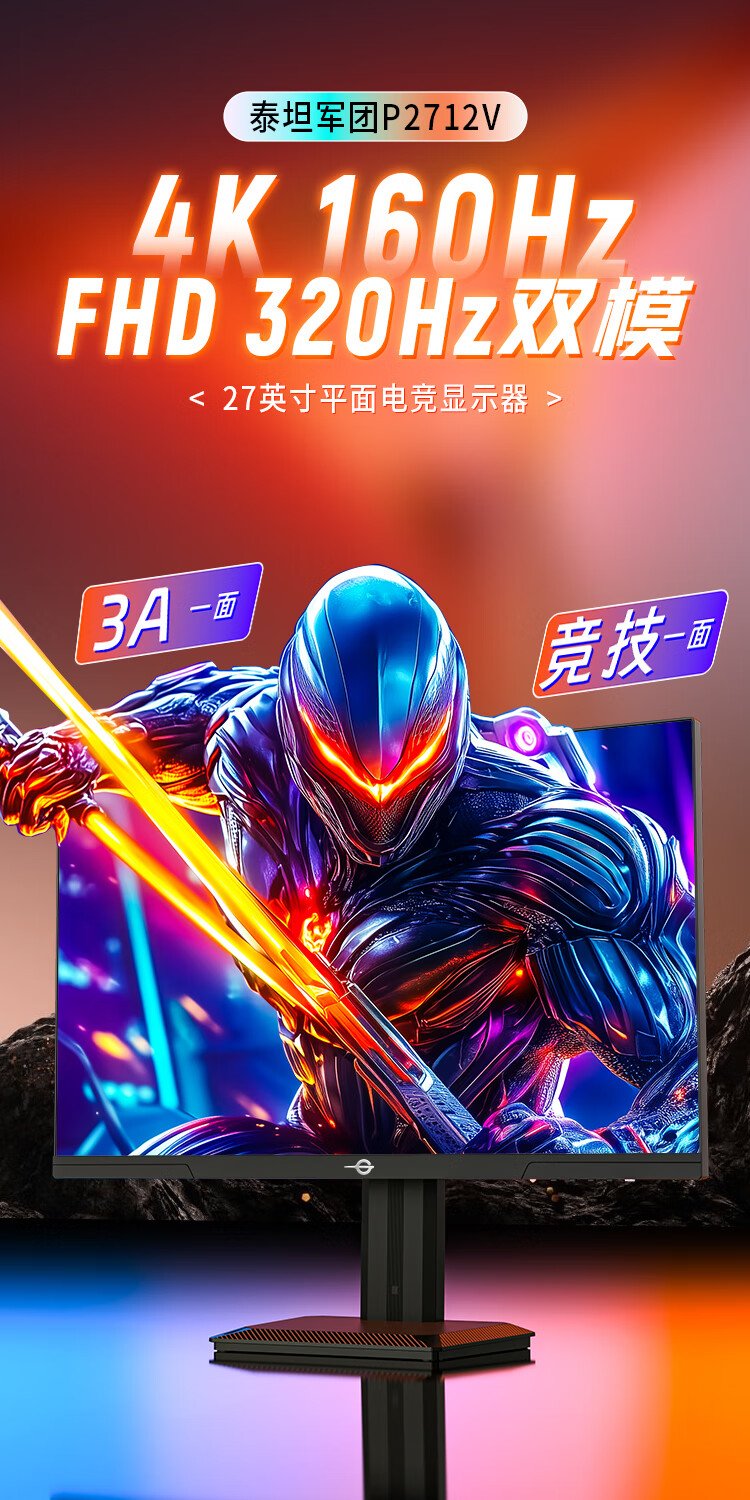 泰坦军团27英寸4K 160Hz高刷双模320Hz FastIPS HDR400硬件低蓝光 电竞背光灯效10bit旋转升降显示器P2712V