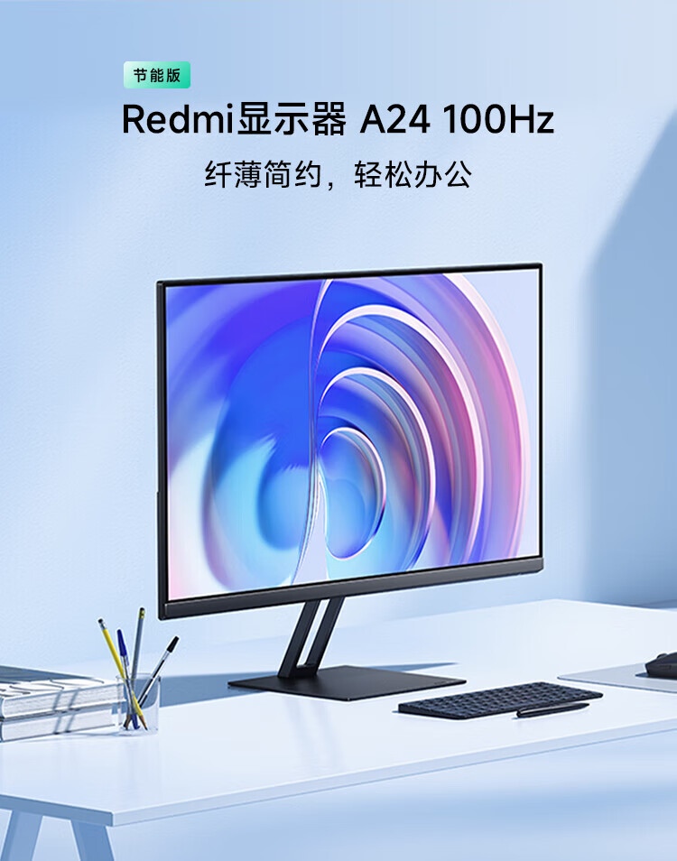 小米Redmi 23.8英寸显示器 100Hz IPS技术 三微边设计 低蓝光 电脑办公显示器显示屏 A24节能版