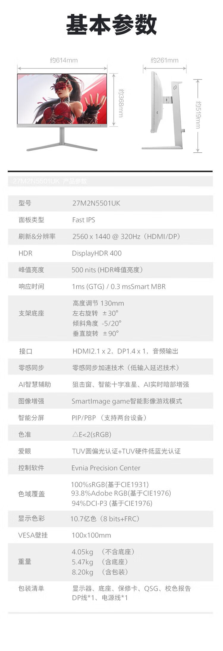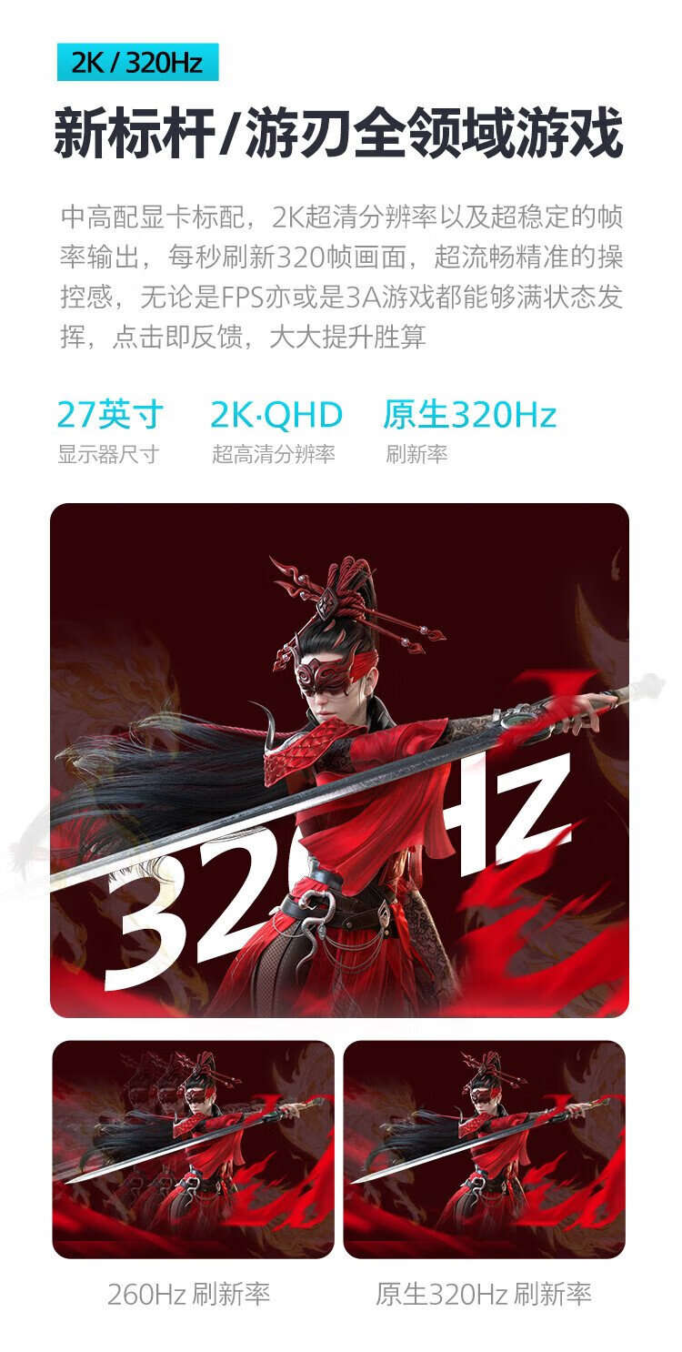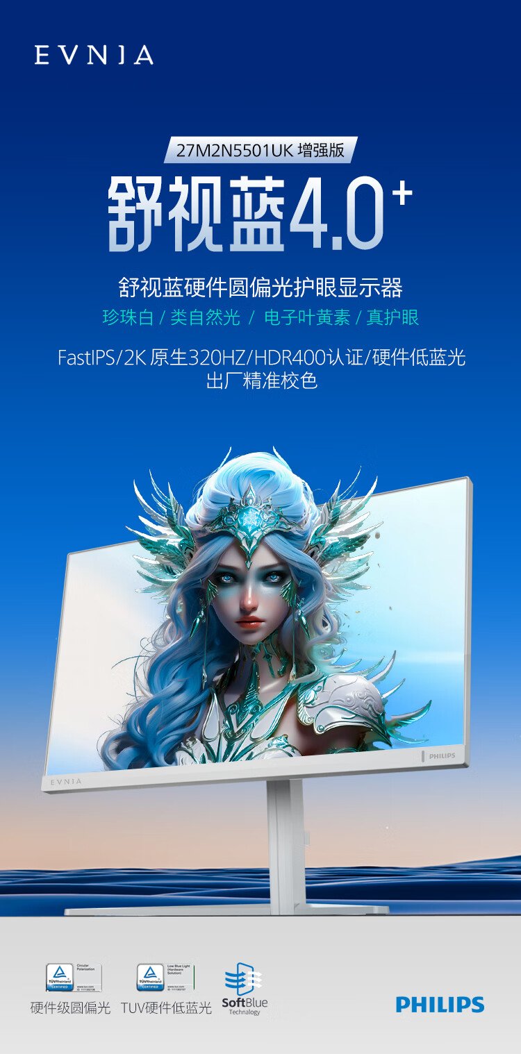 飞利浦EVNIA弈威27英寸2K320Hz 舒视蓝圆偏光硬件护眼FastIPS HDR400校色HDMI2.1 电竞显示器27M2N5501UK