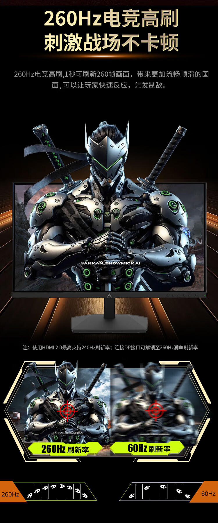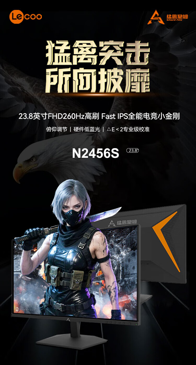 Lecoo联想来酷23.8英寸超频260Hz FastIPS硬件低蓝光 HDR400亮度 1ms暗区突围游戏电竞显示器 N2456S