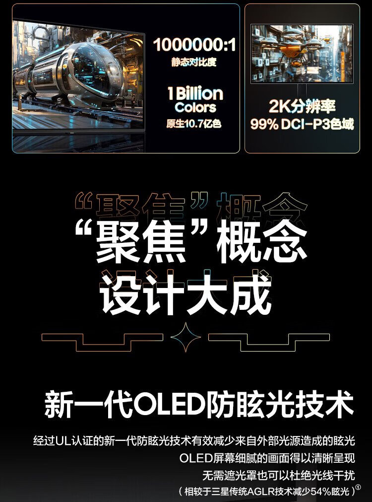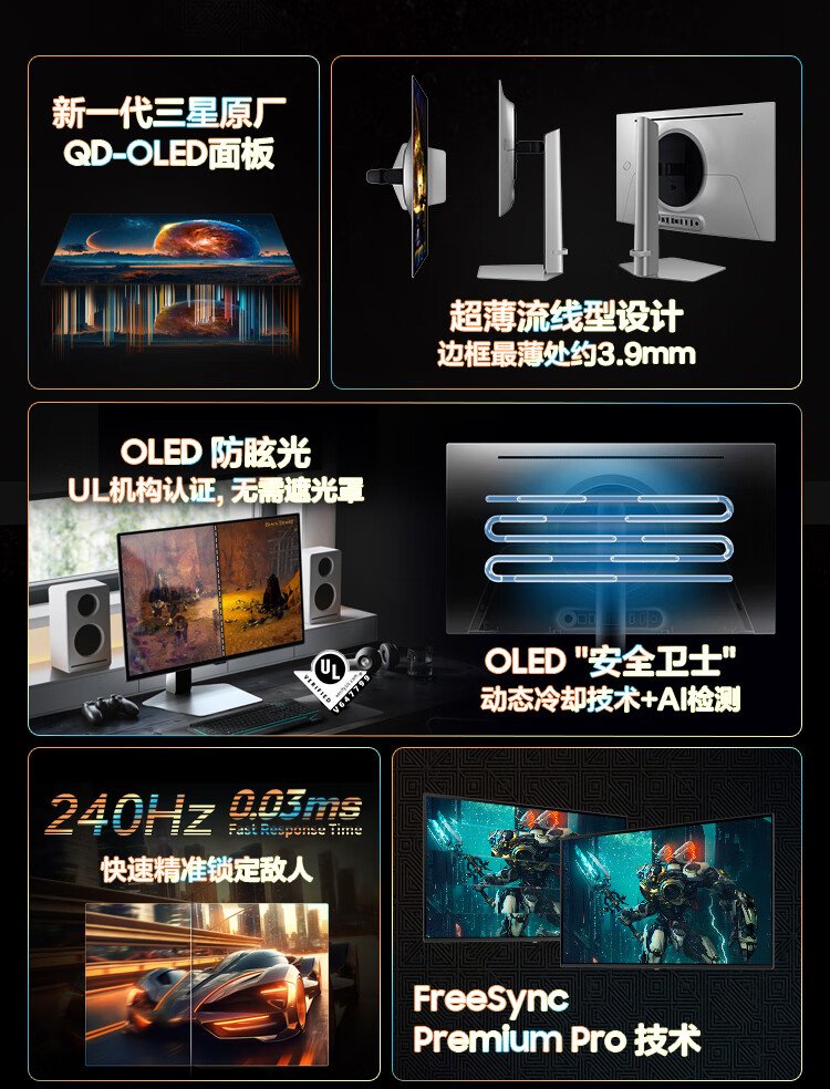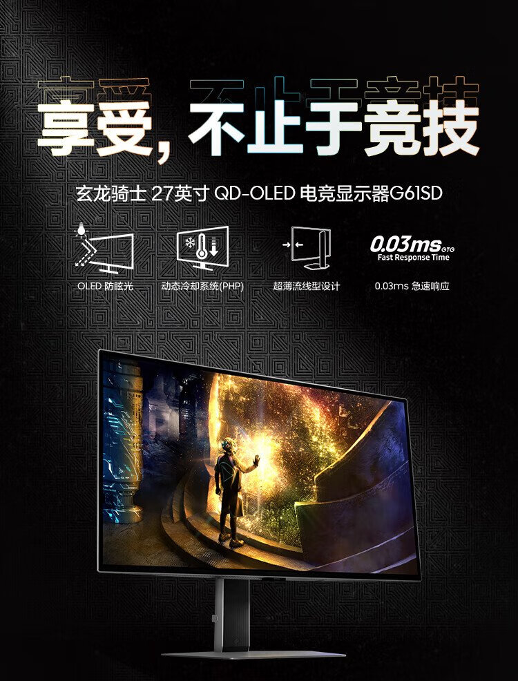 三星(SAMSUNG)27英寸 G61SD QD-OLED 240Hz 2K 0.03msGTG 防烧屏技术防眩光玄龙骑士 电竞显示器 LS27DG610SBXXF