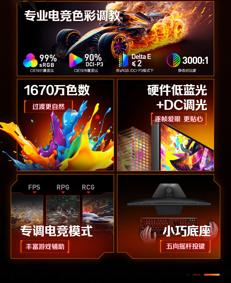 KOORUI科睿24.5英寸300Hz高刷 硬件低蓝光HDR400认证 广色域电竞显示屏 游戏电脑显示器F50X3S
