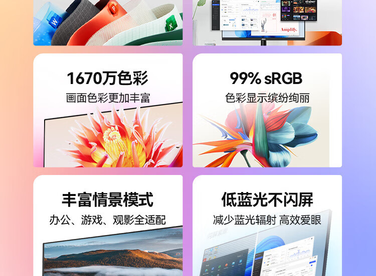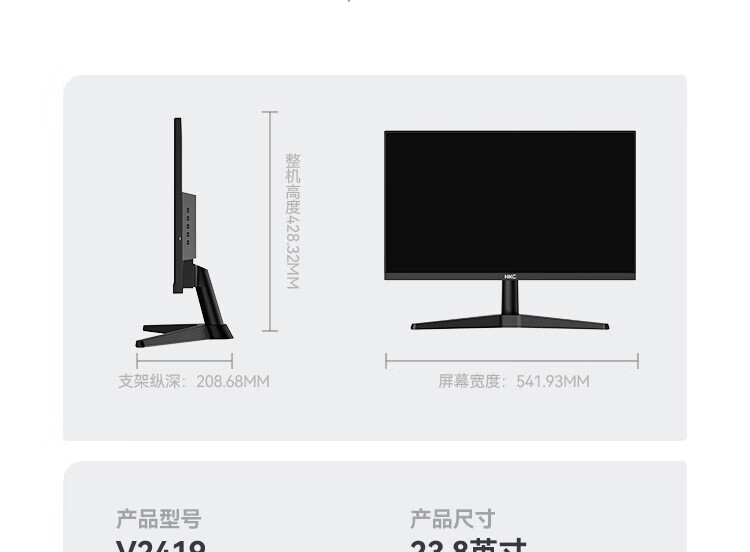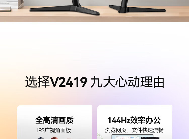 HKC 23.8英寸IPS面板144Hz高刷99%sRGB广色域低蓝光不闪屏外接电脑屏幕游戏电竞办公显示器V2419