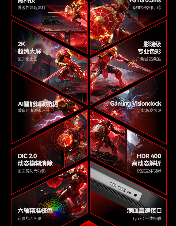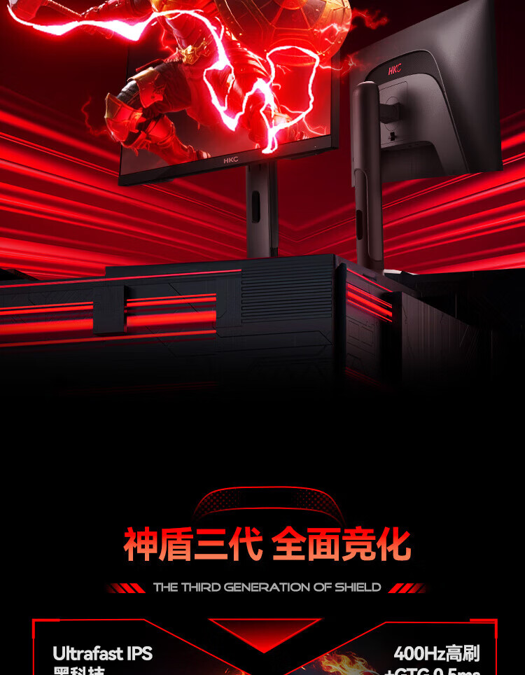 HKC 27 pouces 2K 400Hz haute brosse Ultra FastIPS écran de jeu HDR400 matériel faible lumière bleue type-c jeu rotatif ascenseur 360Hz moniteur UG27EQ