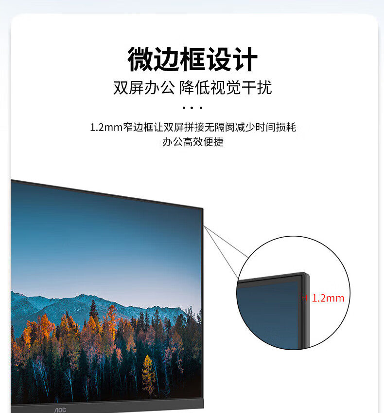AOC 23.8英寸显示器 75Hz HDMI接口 1080P全高清广视角 低蓝光不闪 可壁挂家用办公液晶电脑显示屏幕 24B20HN/D
