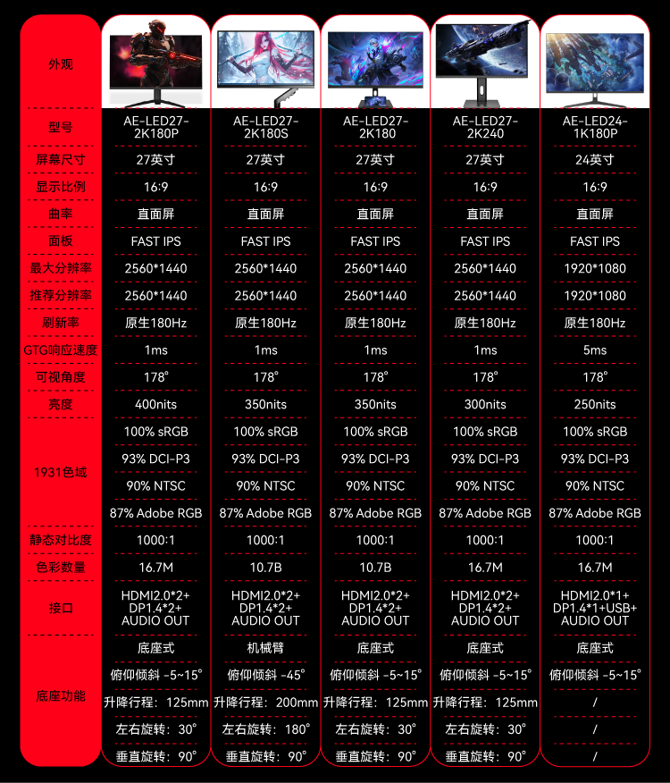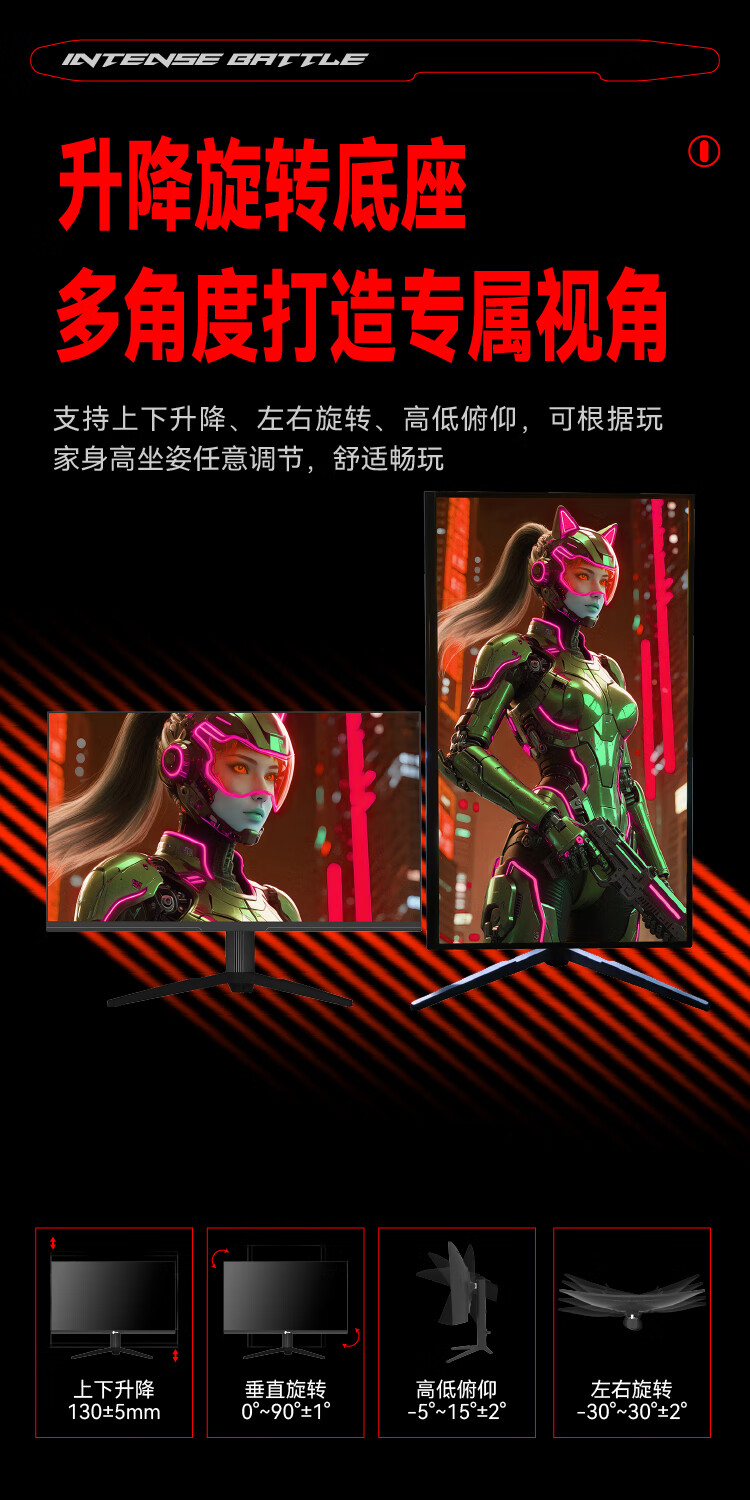 清视界27寸2K高刷电竞显示器180hz可旋转升降笔记本外接机械臂拓展屏幕1ms响应IPS硬件低蓝光护眼广色域 27寸2K180Hz电竞游戏屏 配旋转升降底座