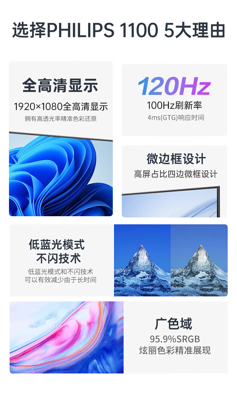 Philips (PHILIPS) 27-inch IPS 120Hz full HD low blue light energy-saving certification four-sided micro-frame HDMI/VGA commercial office computer display monitor 27E2N2100