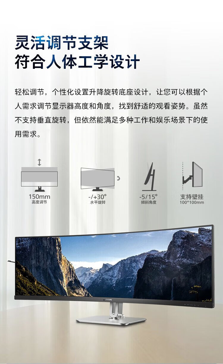 Philips (PHILIPS) Moniteur incurvé de 49 pouces quasi-4K 144 Hz HDR400 TypeC90W, écran partagé matériel, faible lumière bleue, affichage d'ordinateur de conception de bureau 49B2U5300C 40B1U5600|TPYEC|HDR|écran partagé