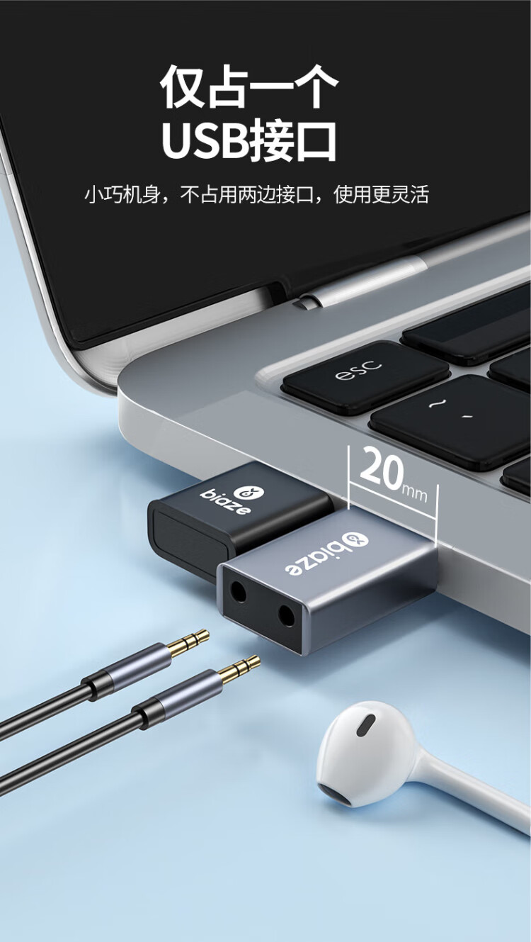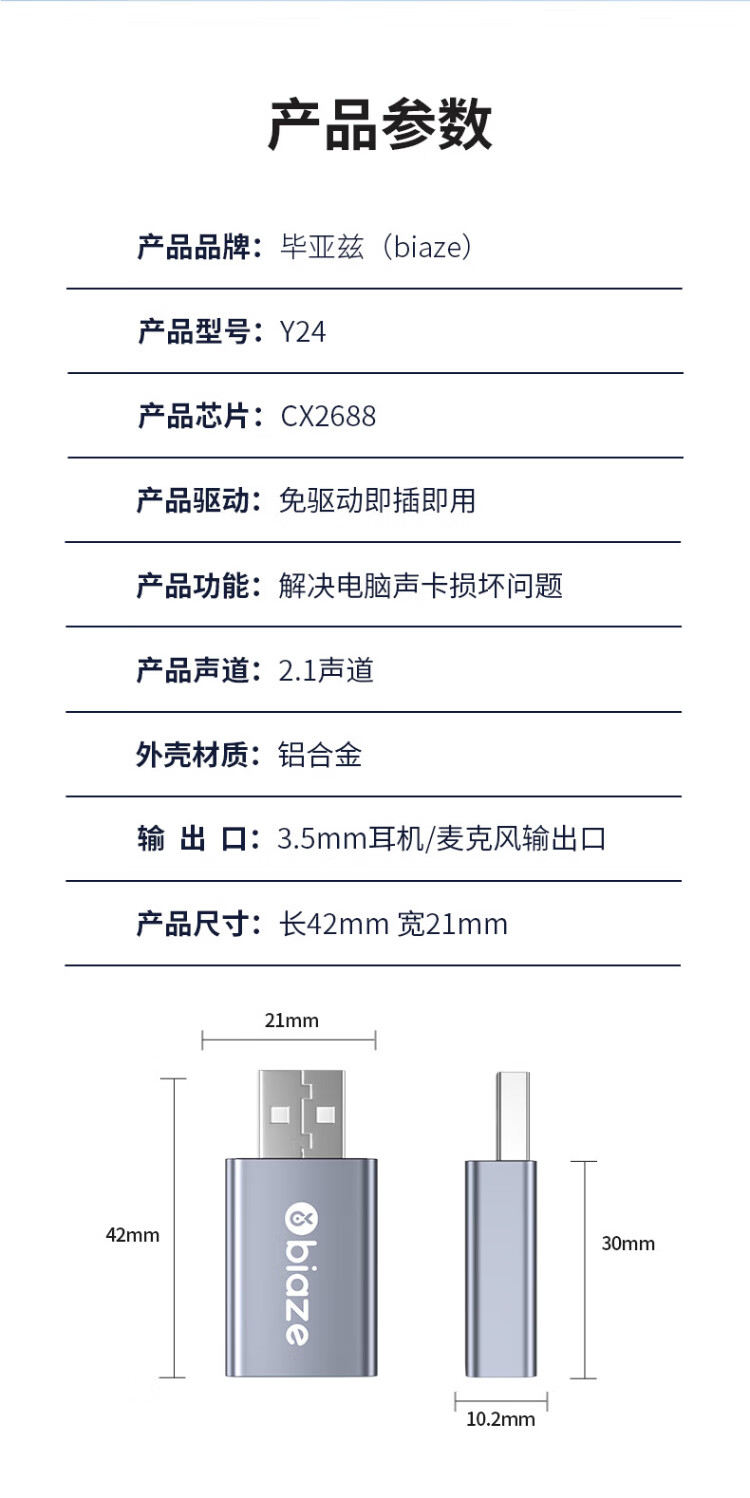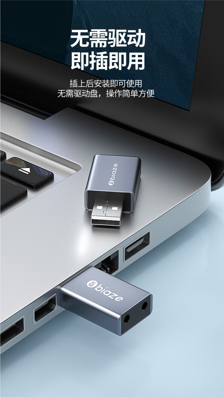 毕亚兹 USB外置声卡免驱转换器 电脑笔记本台式机转3.5mm音频接口耳机麦克风PS4连接音响转换器头 Y24