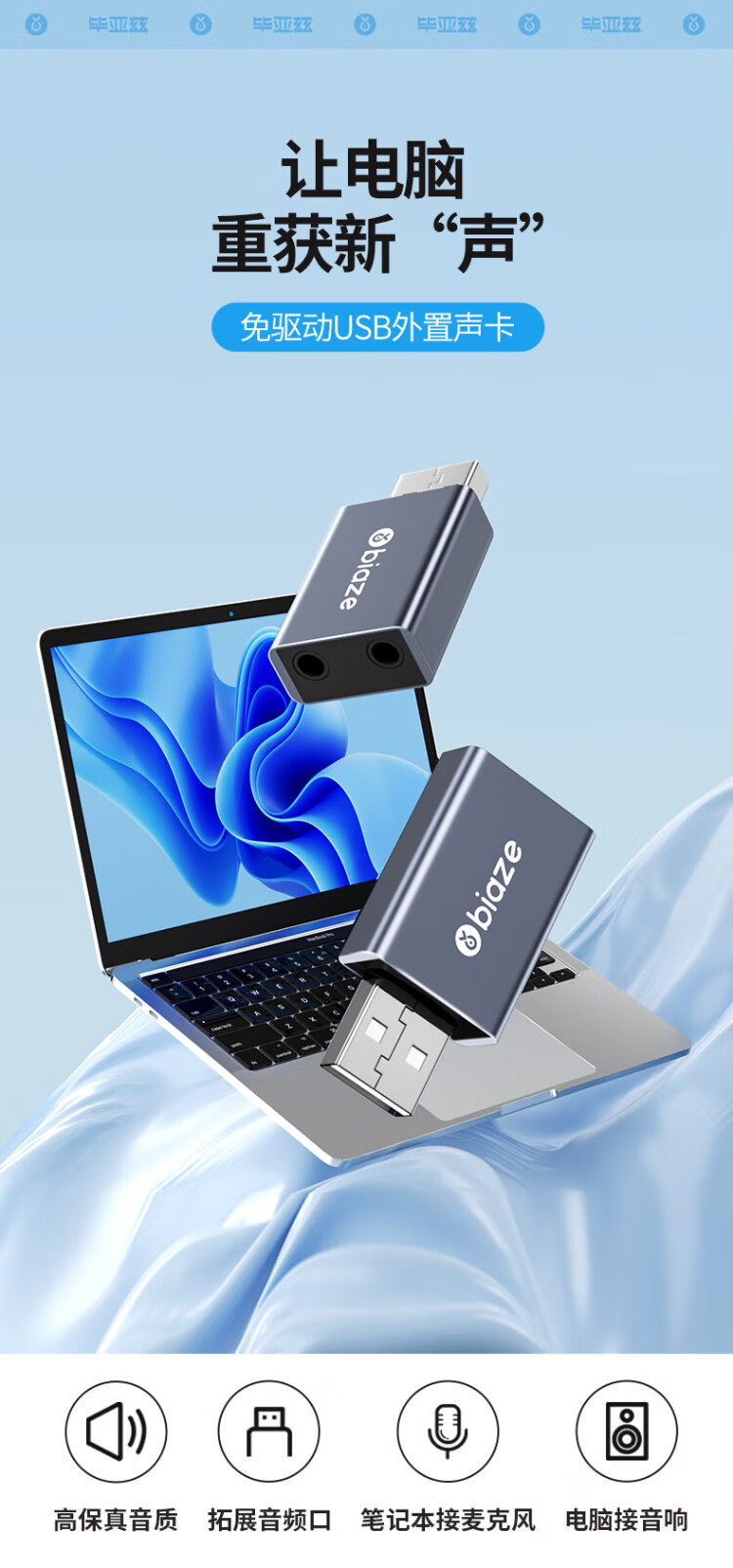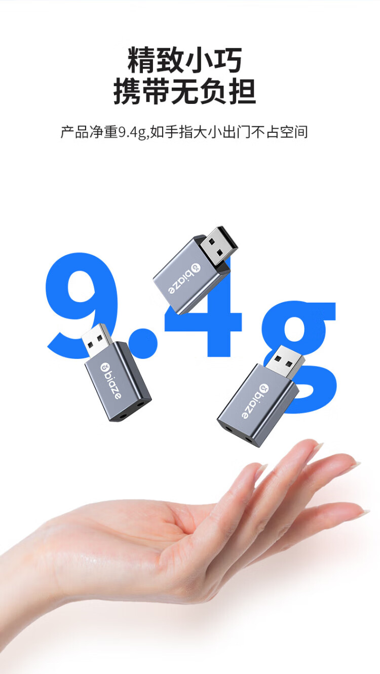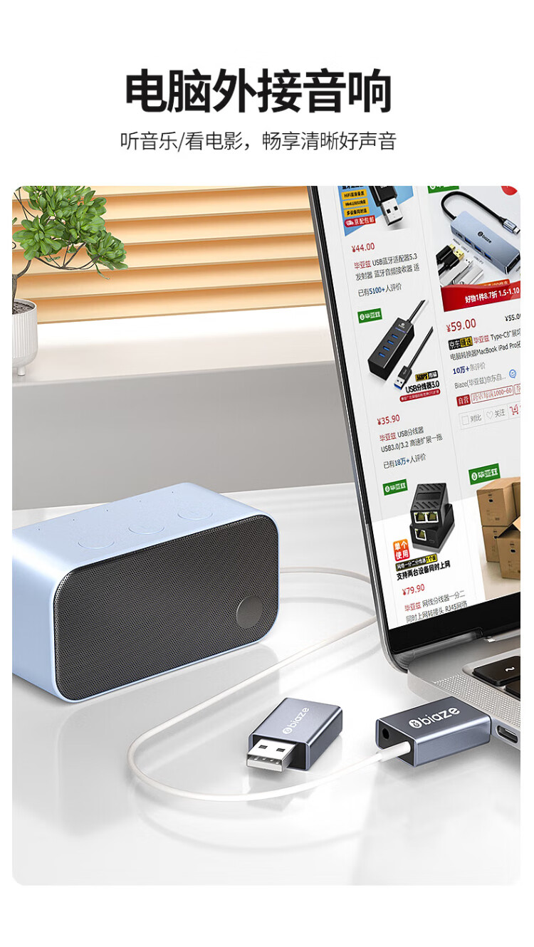 毕亚兹 USB外置声卡免驱转换器 电脑笔记本台式机转3.5mm音频接口耳机麦克风PS4连接音响转换器头 Y24