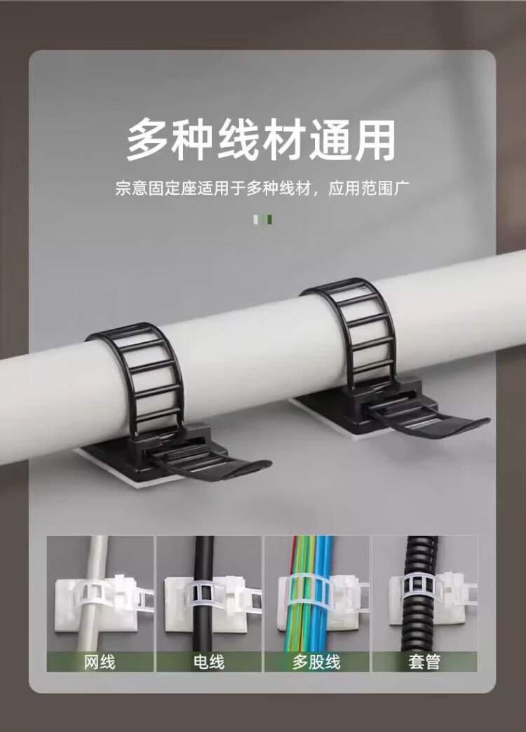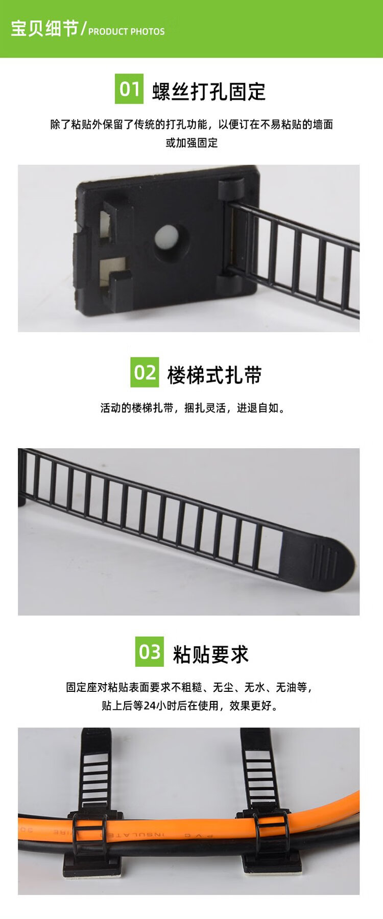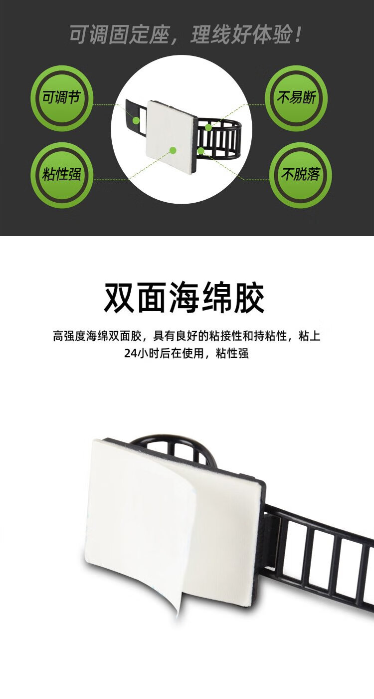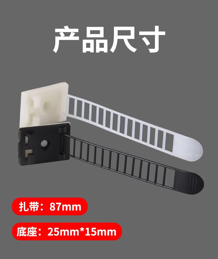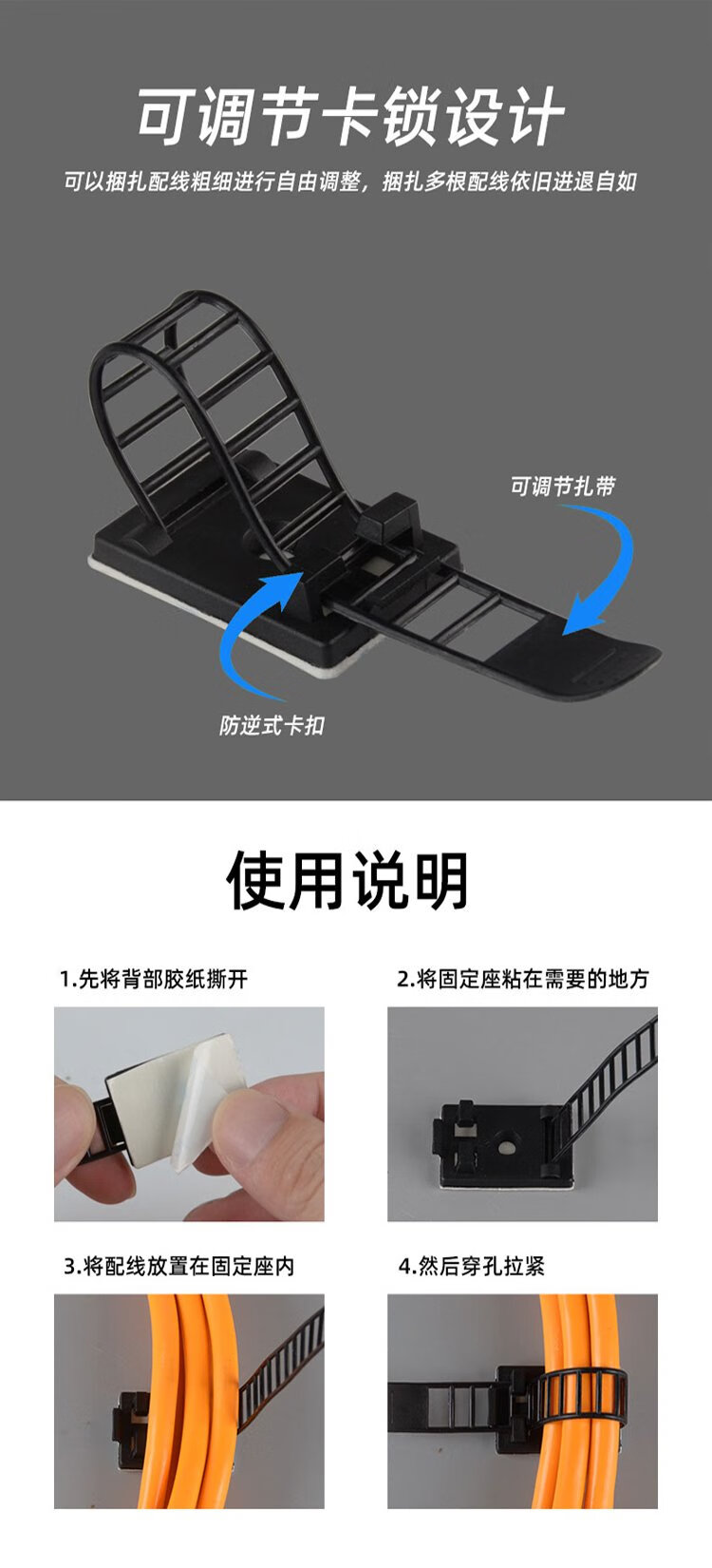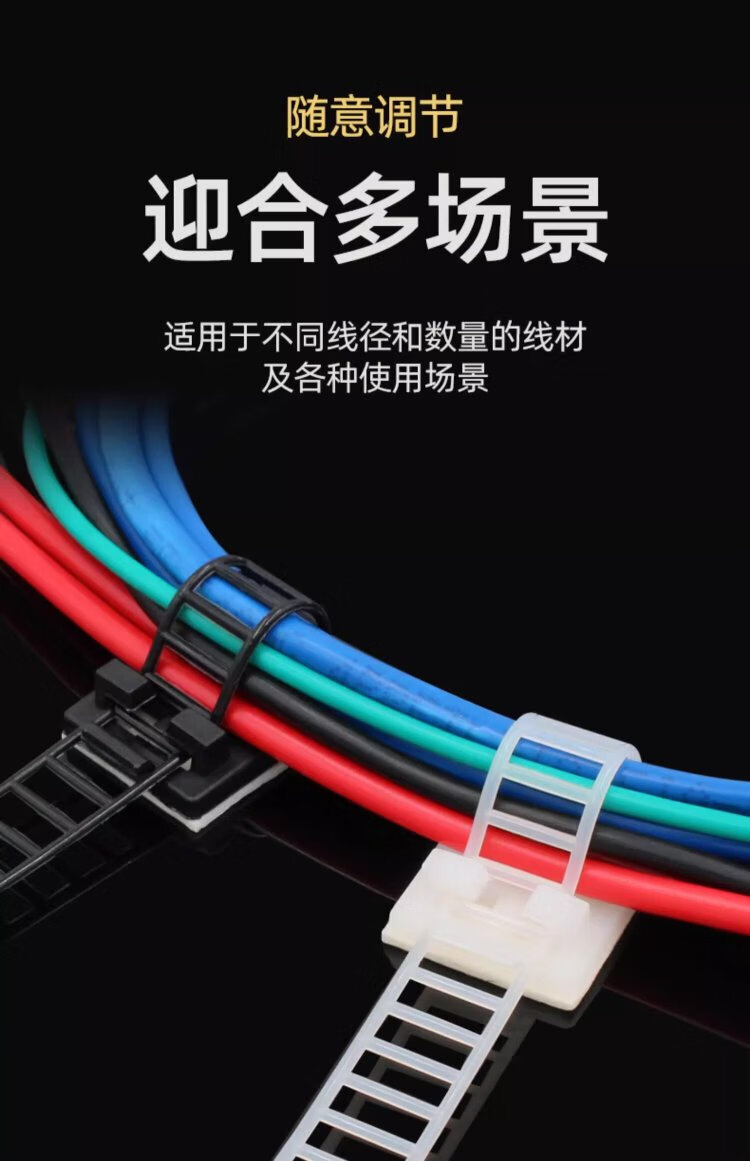 Liantuo nylon cable ties, 3M adhesive fixed base cable ties, self-adhesive wire organizer, cable buckle, fixed clip, wire clip, 50 pieces C205 black