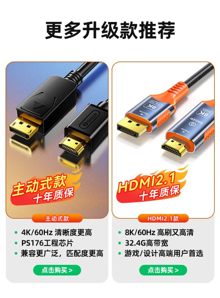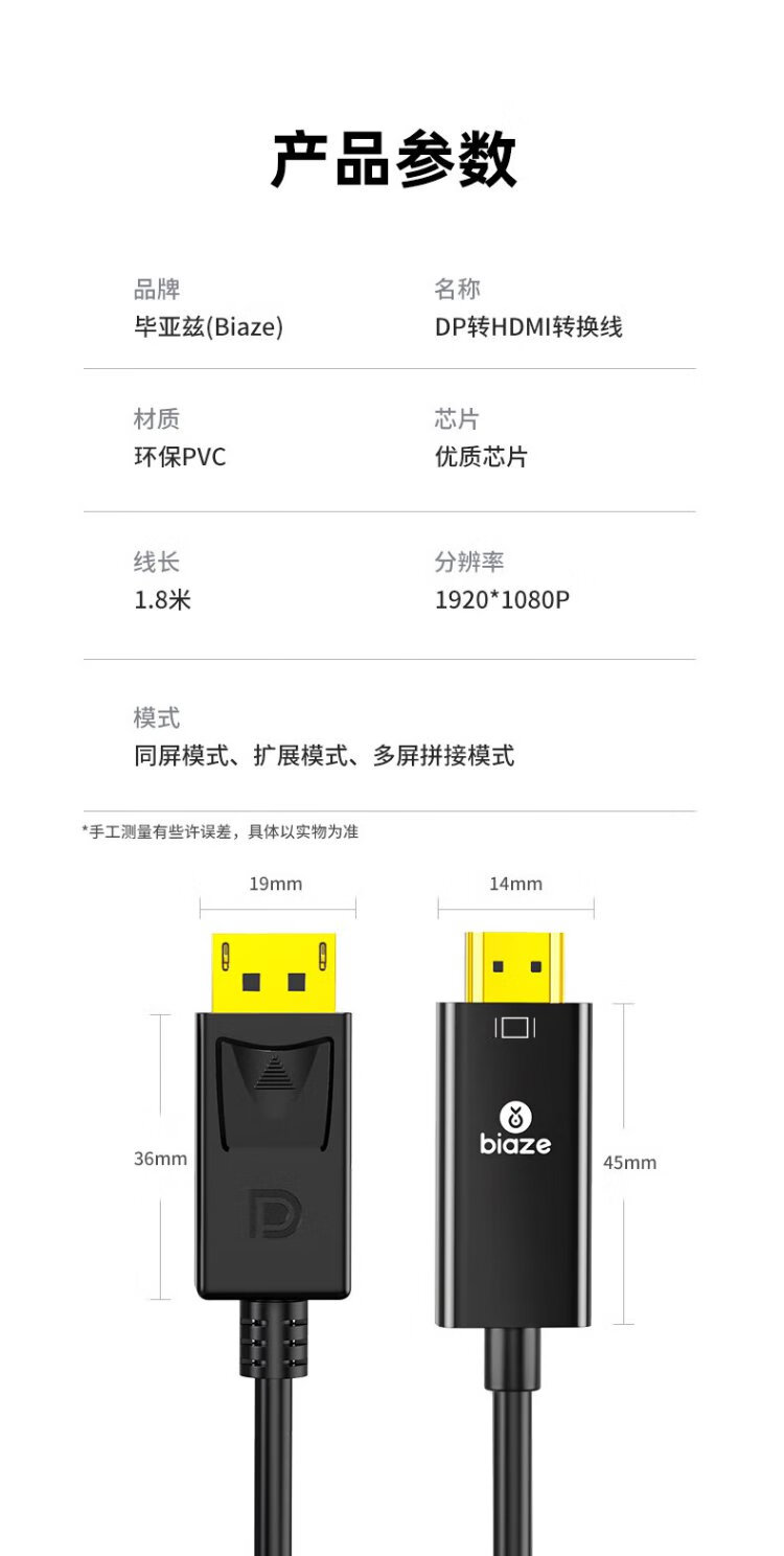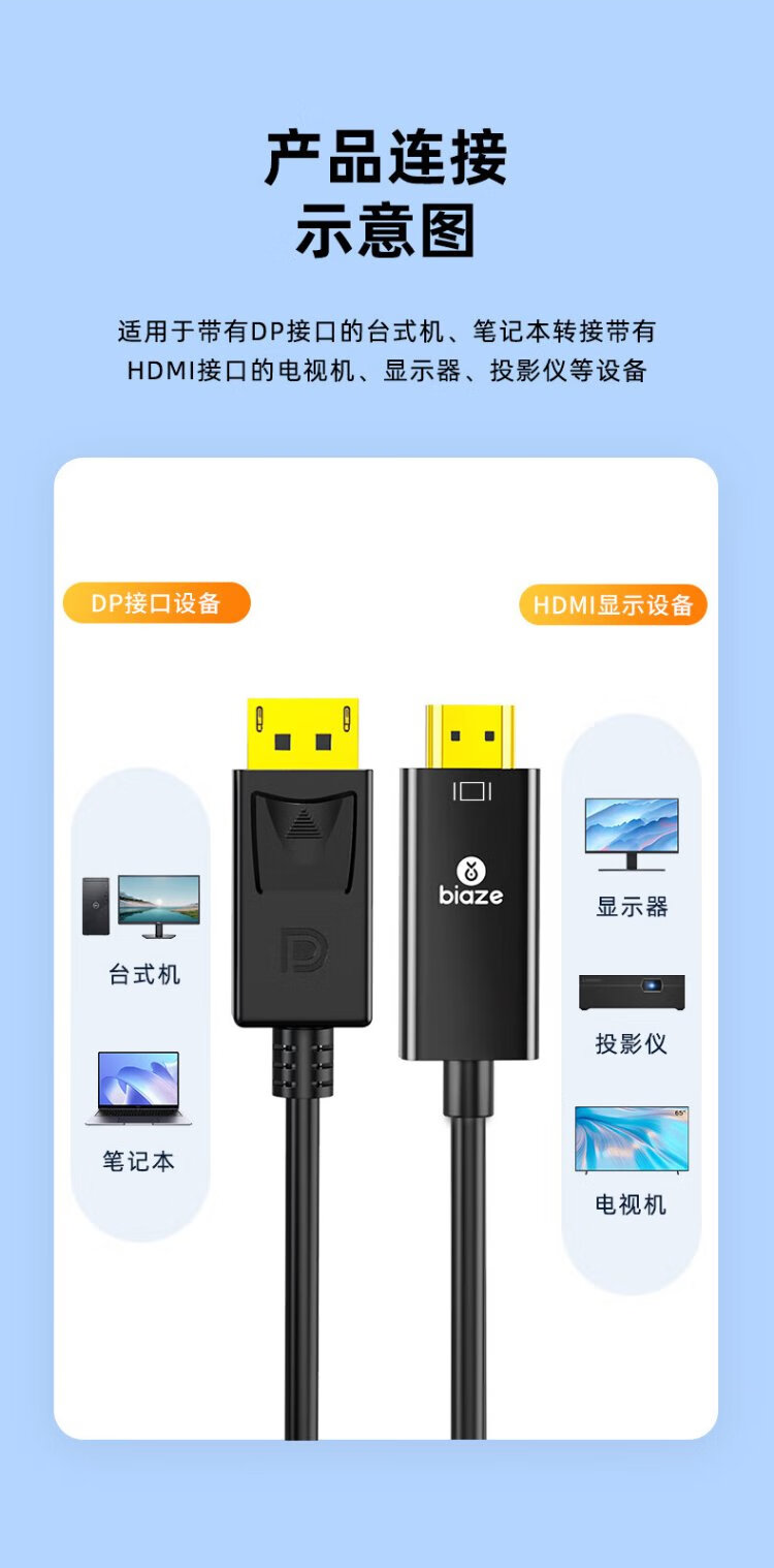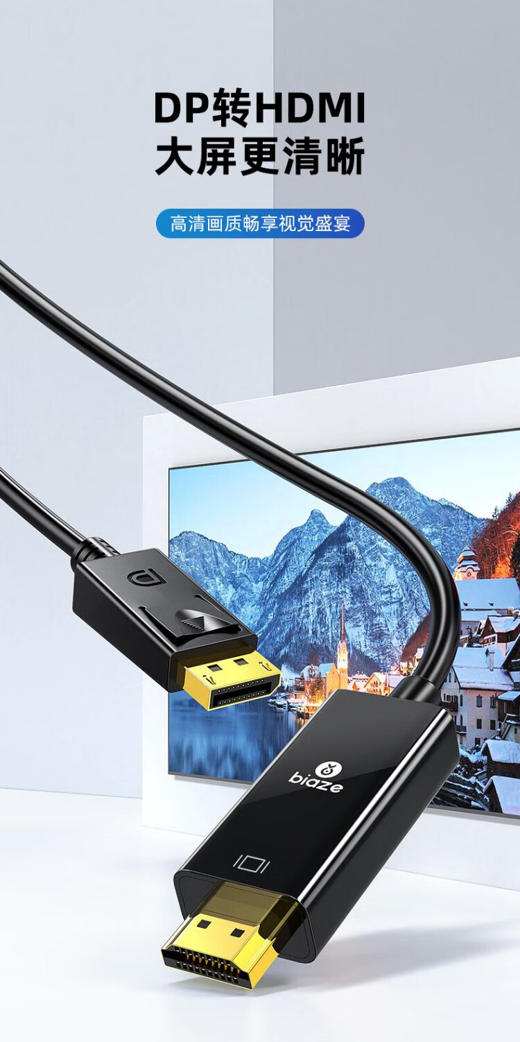 Biaz Cable adaptador DP a HDMI Cable HD 1080P DisplayPort a HDMI Cable de video macho a macho Cable convertidor DP grande de computadora a TV 1,8 metros