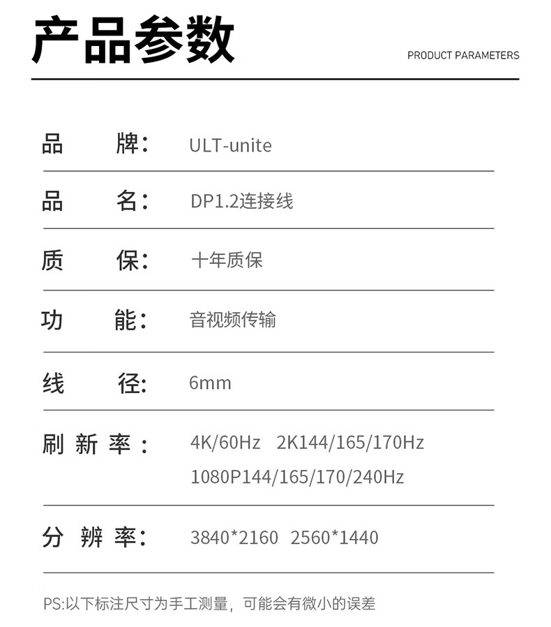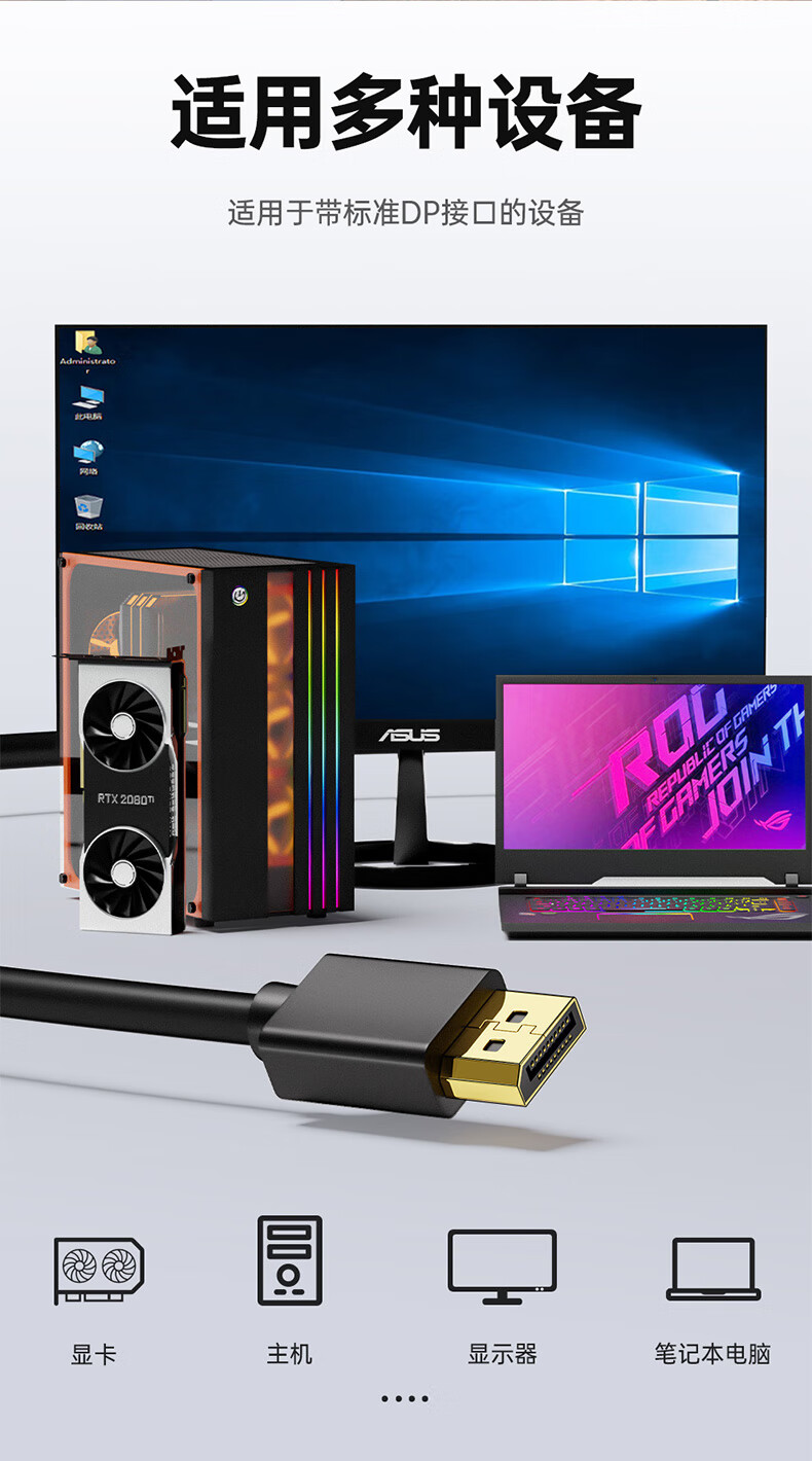 ULT-unite DP cable version 1.2 4K60Hz HD 2K165Hz cable desktop computer graphics card notebook DisplayPort display video cable 2 meters