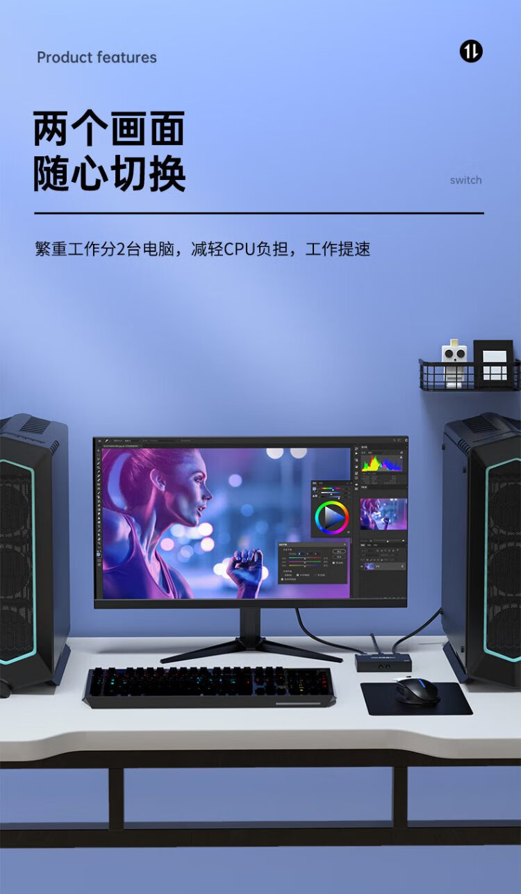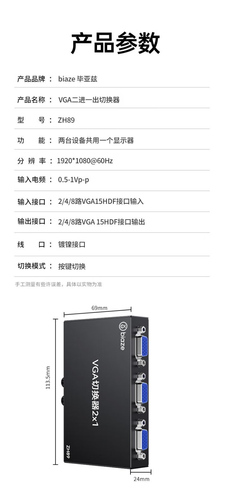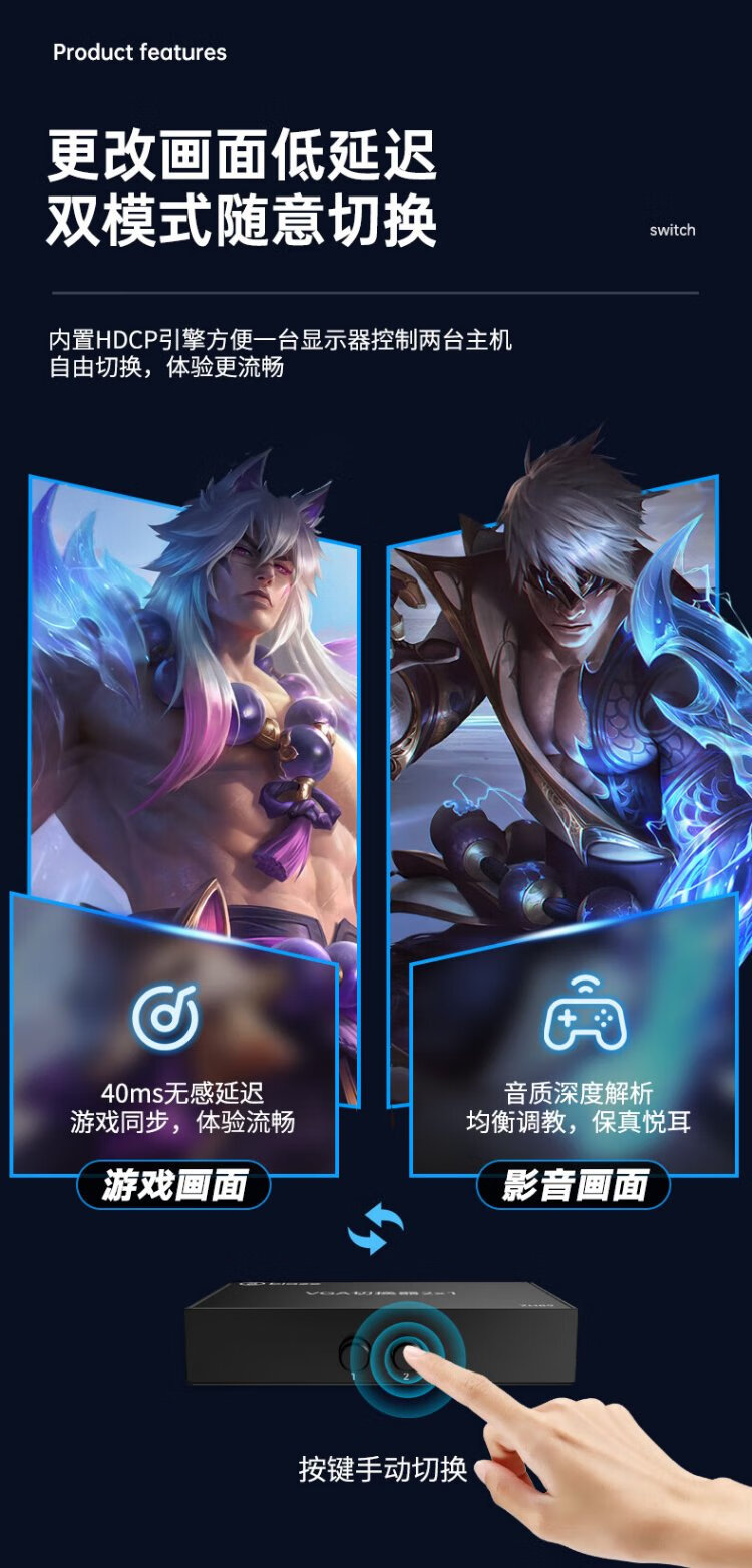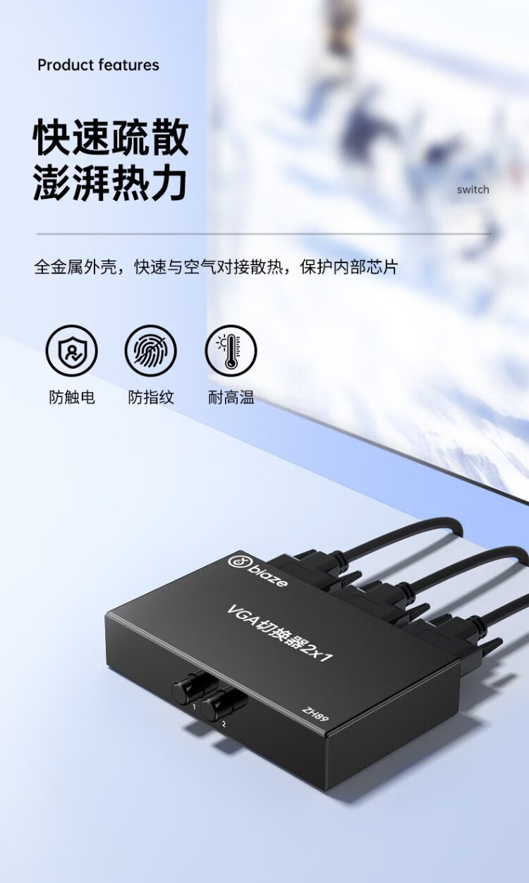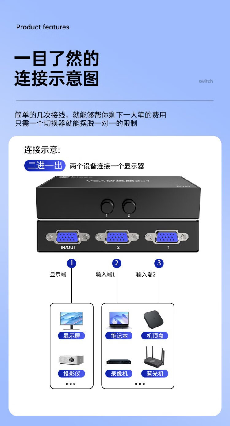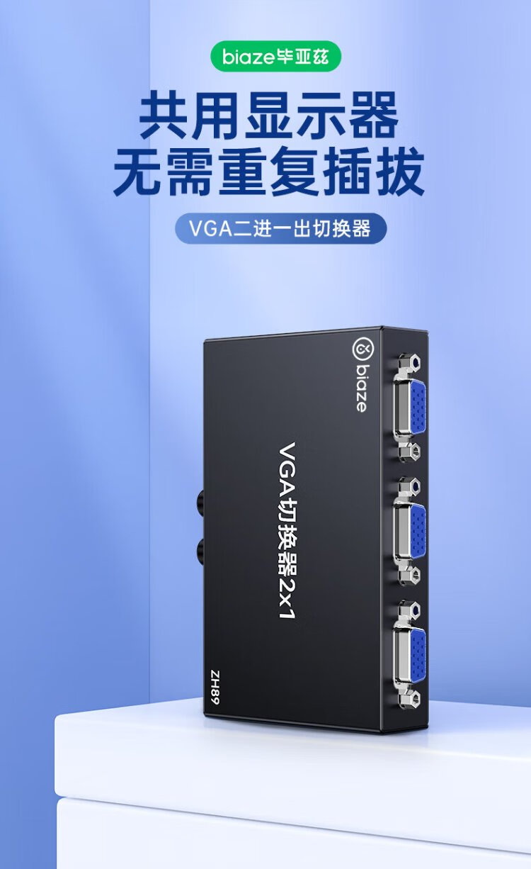 毕亚兹 VGA切换器二进一出高清2进1出一拖二视频转换器切屏器共享器 多笔记本台式主机共用显示器