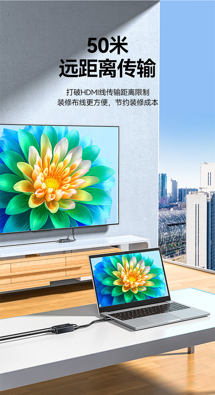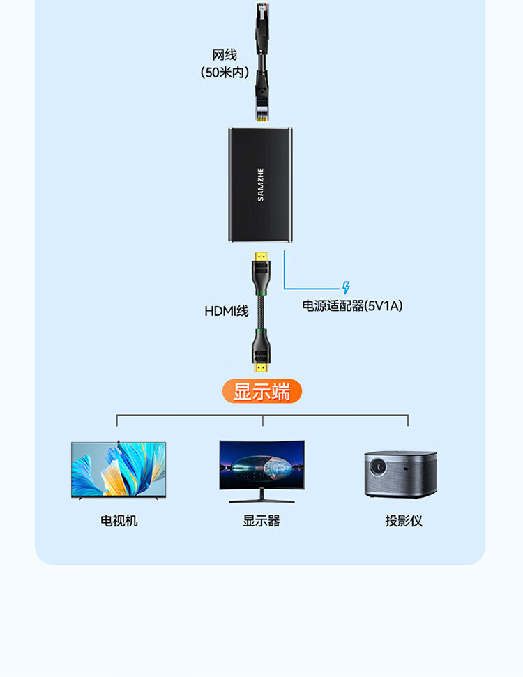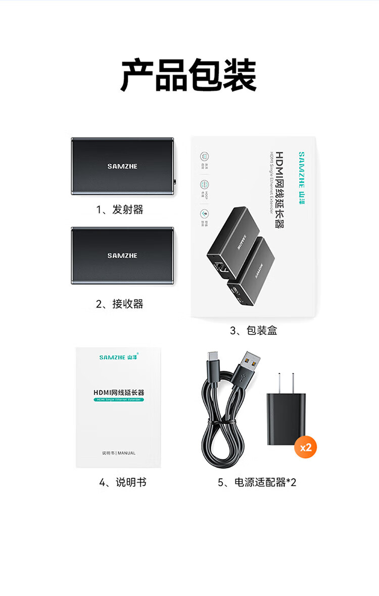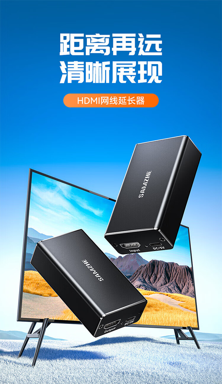 Shanze HDMI Extender Network Cable to HDMI Converter Signal Extender HDMI to RJ45 Network Cable Network Port 1080P Video Transmission 50 Meter Pair SZ-50W