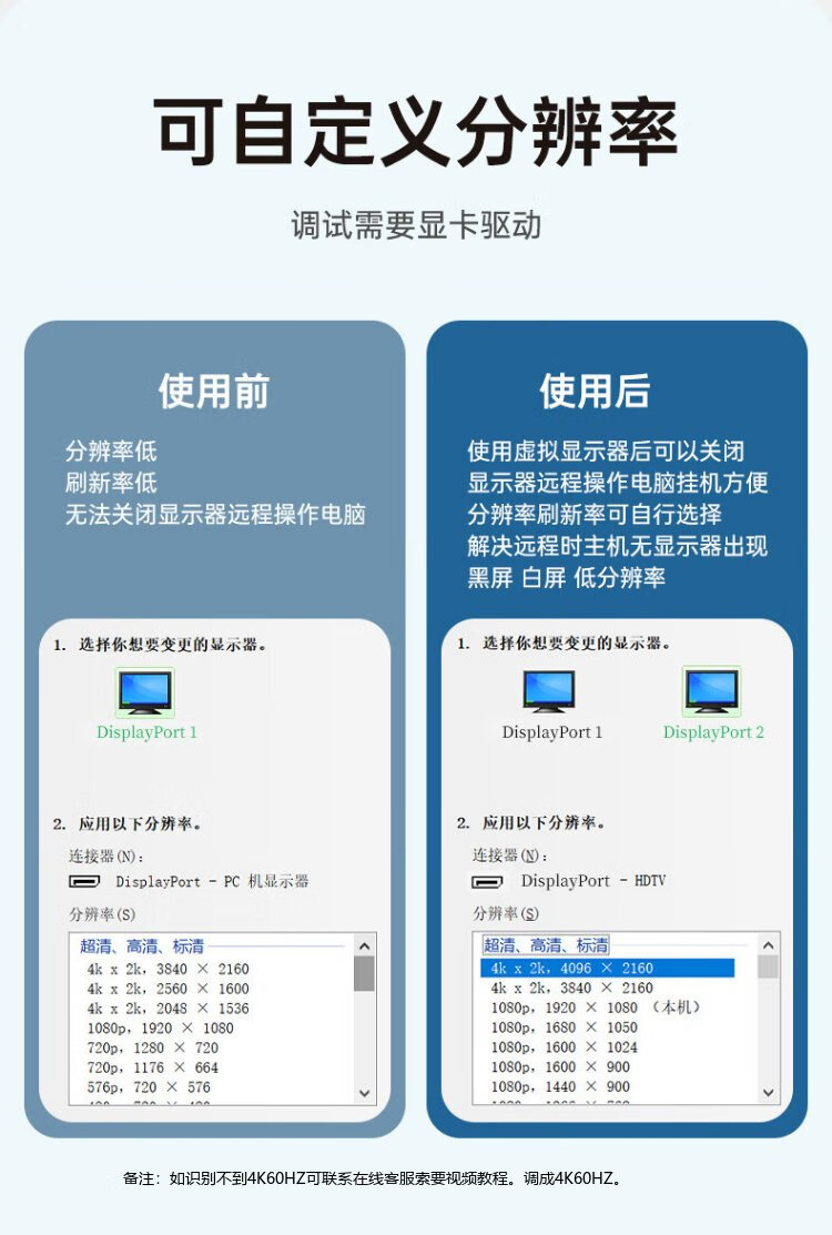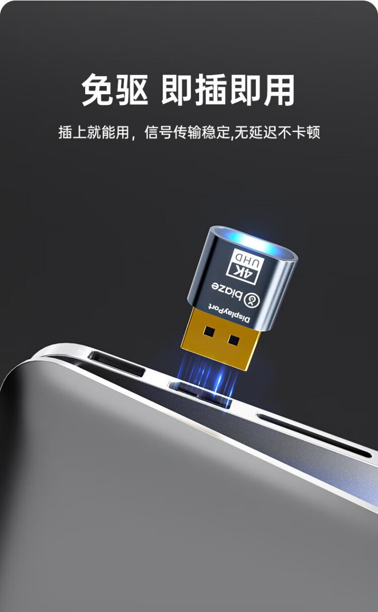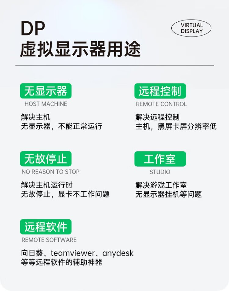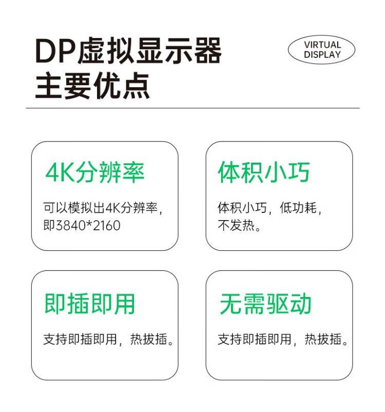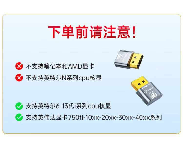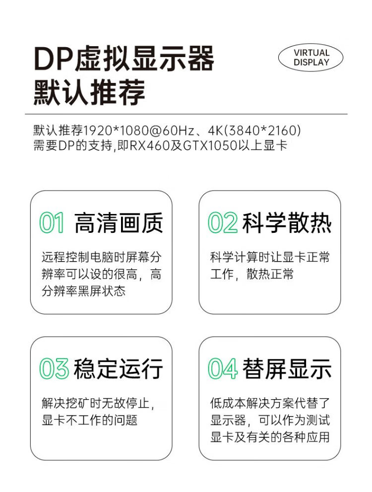 毕亚兹 DP诱骗器 显卡欺骗器DP虚拟器显卡 假负载远程4K输出远程控制挂机外接显示器 TT40
