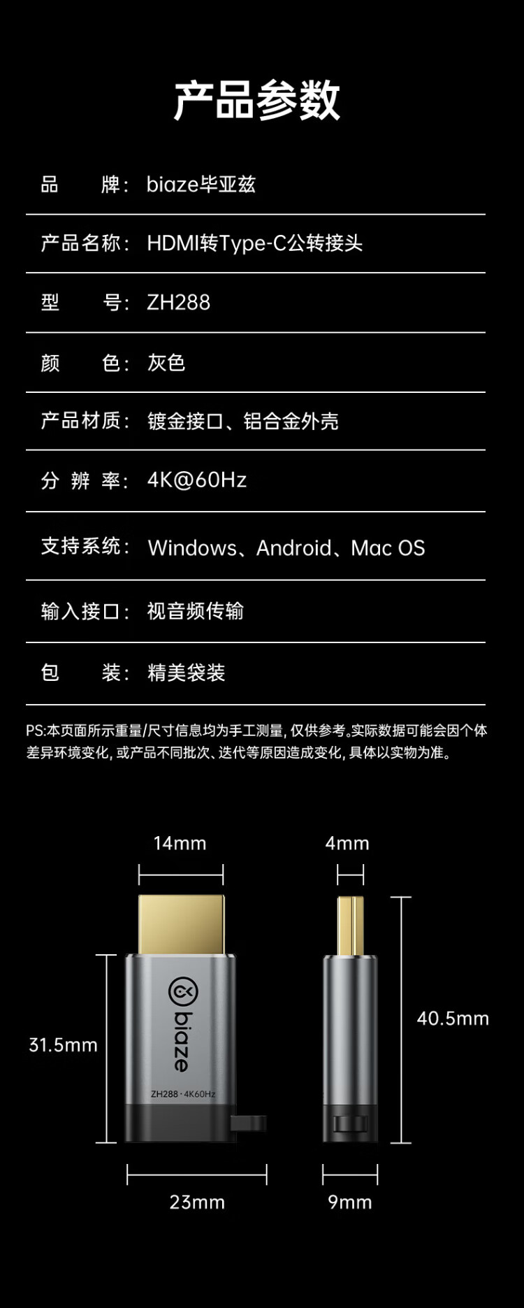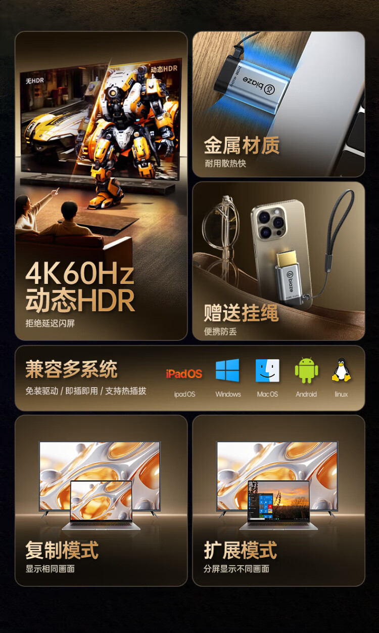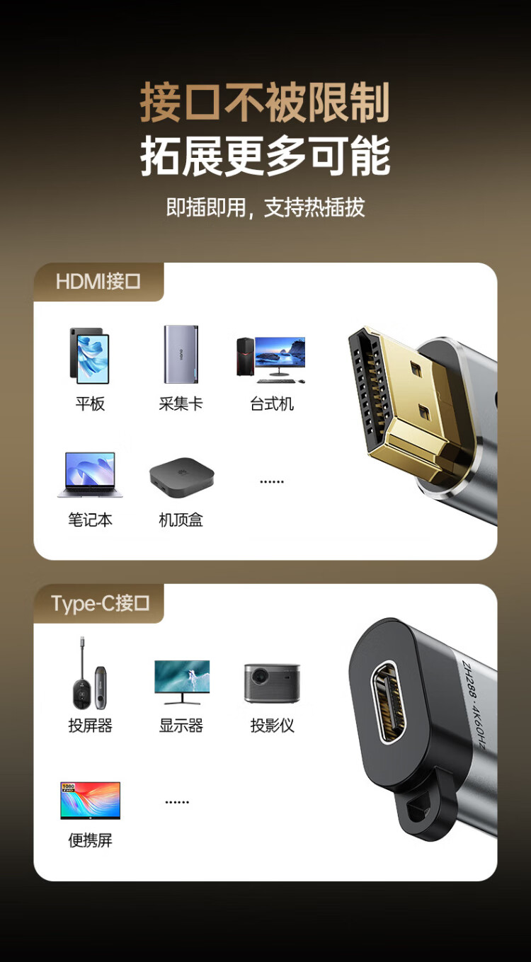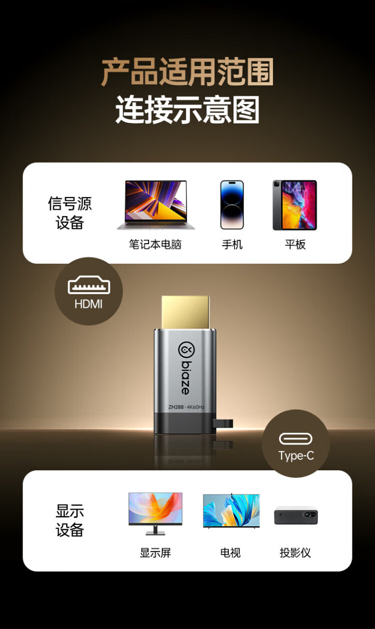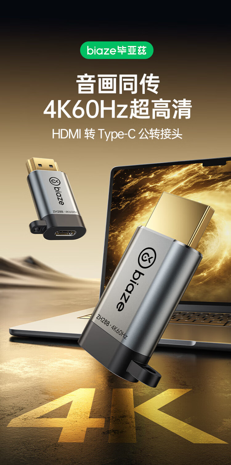 Biaz HDMI to Type-C adapter cable 4K screen projection converter to USB-C Thunderbolt 3 interface Apple 17pro MacBook computer iPad Huawei projection expansion