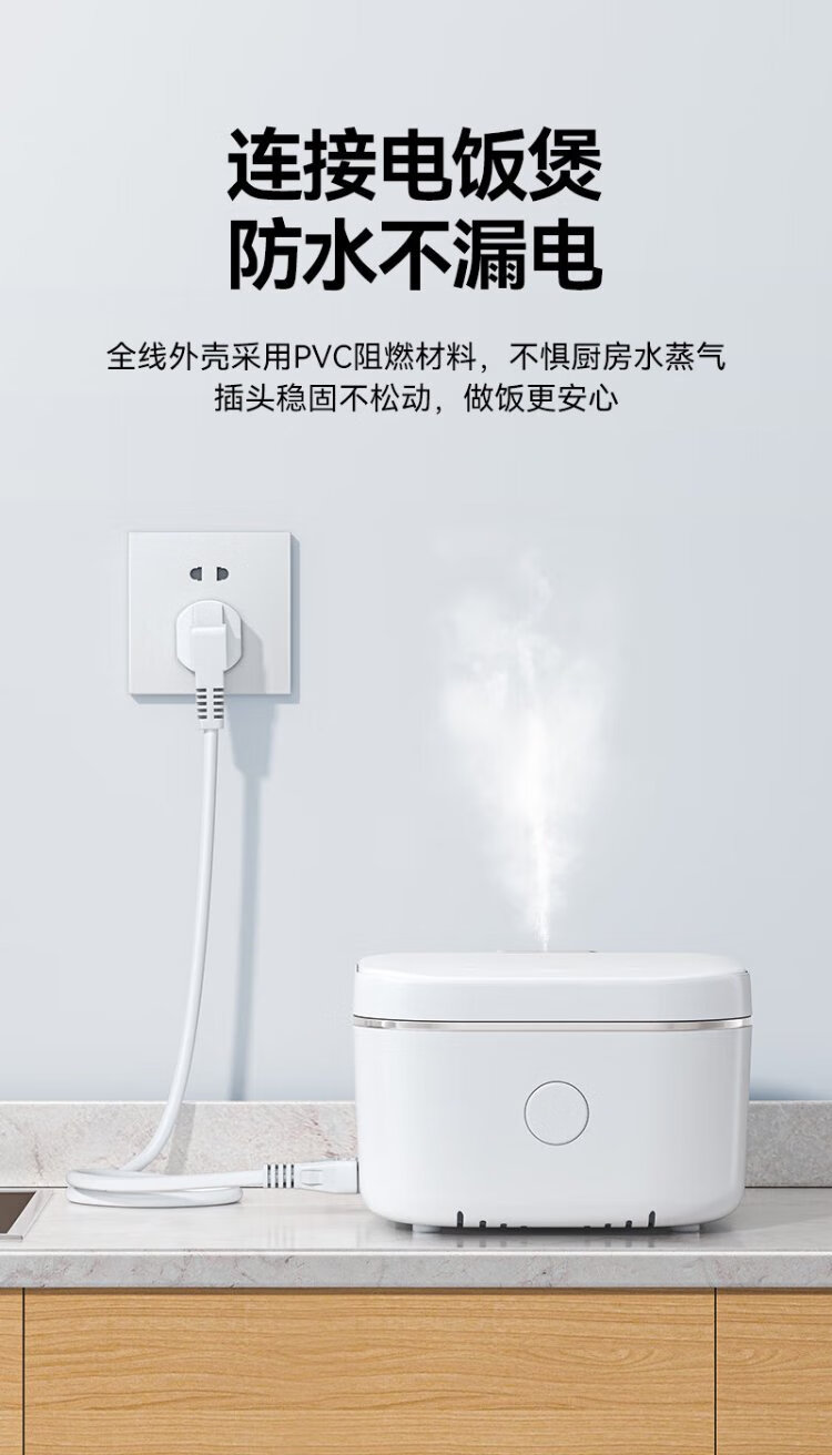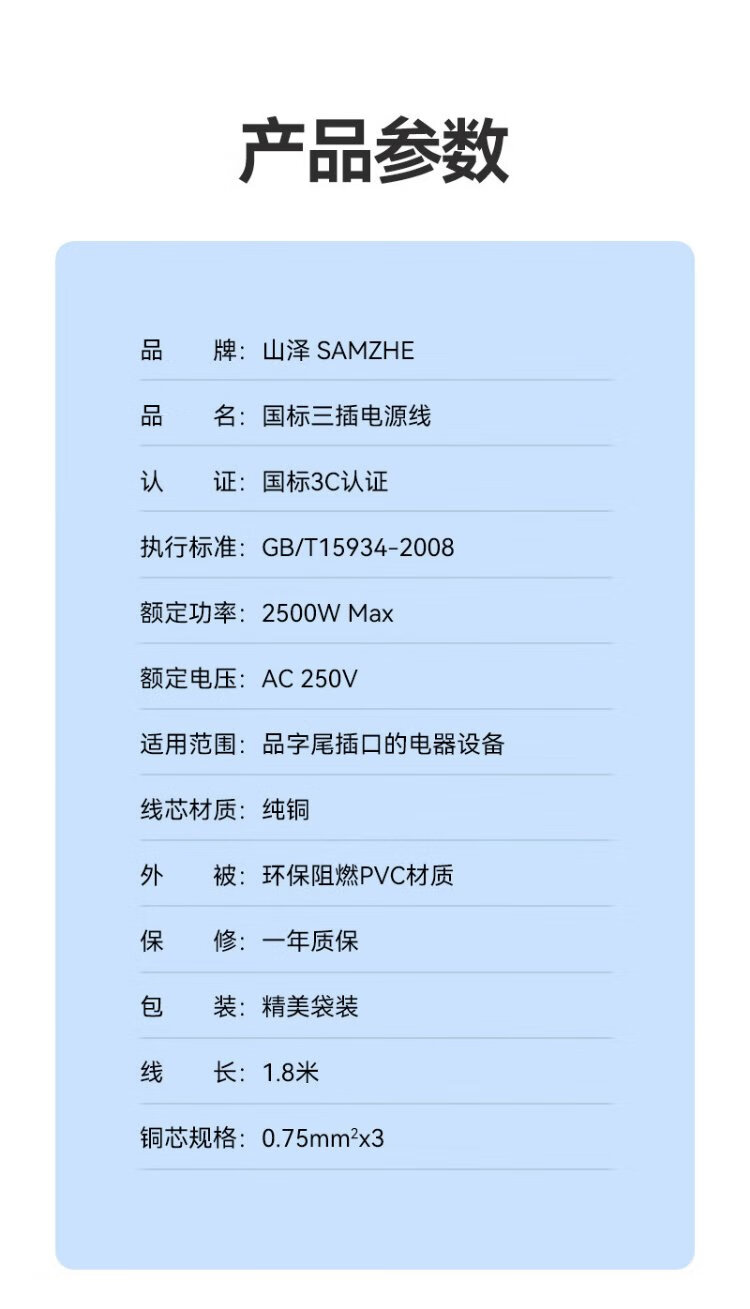 山泽 电脑电源线1.8米【国标3C认证】台式主机显示器三孔芯品字尾 电饭锅煲打印机箱通用 白色DY-3KX