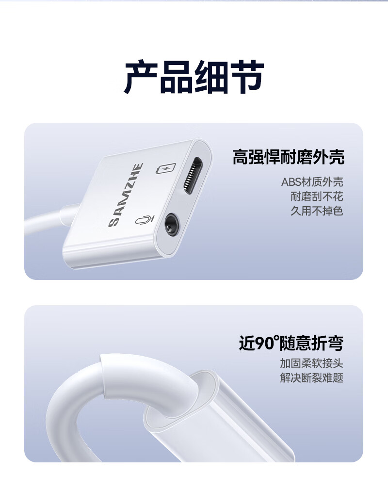 Shanze Lightning to Lightning+3.5mm headphone adapter Apple mobile phone two-in-one splitter adapter head charging call listening to karaoke LT35