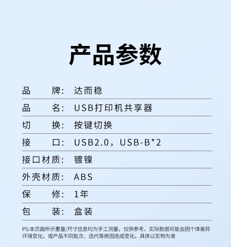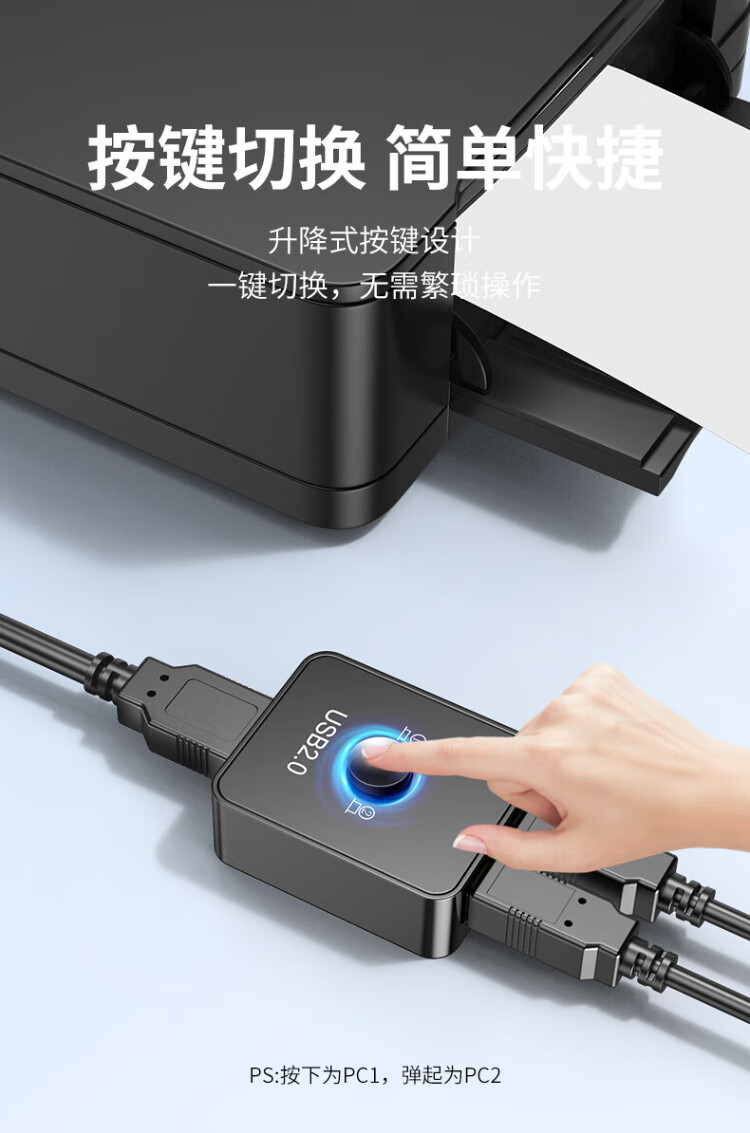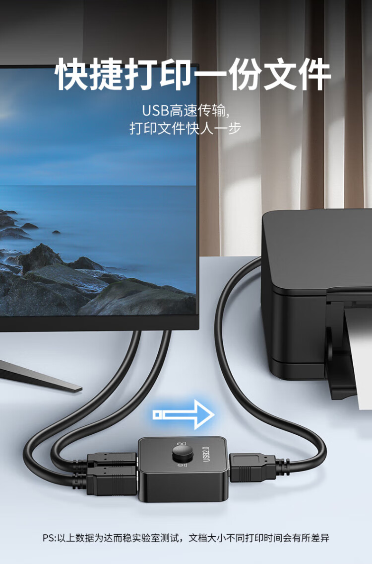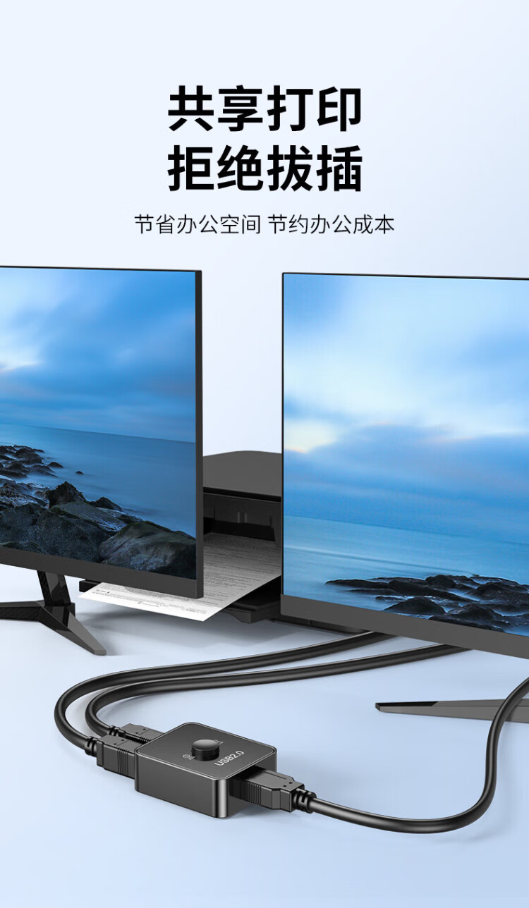 达而稳(DOREWIN)USB打印机共享器一拖二分线器一拖二 二进一出双向切换两台电脑共用鼠标键盘U盘共享
