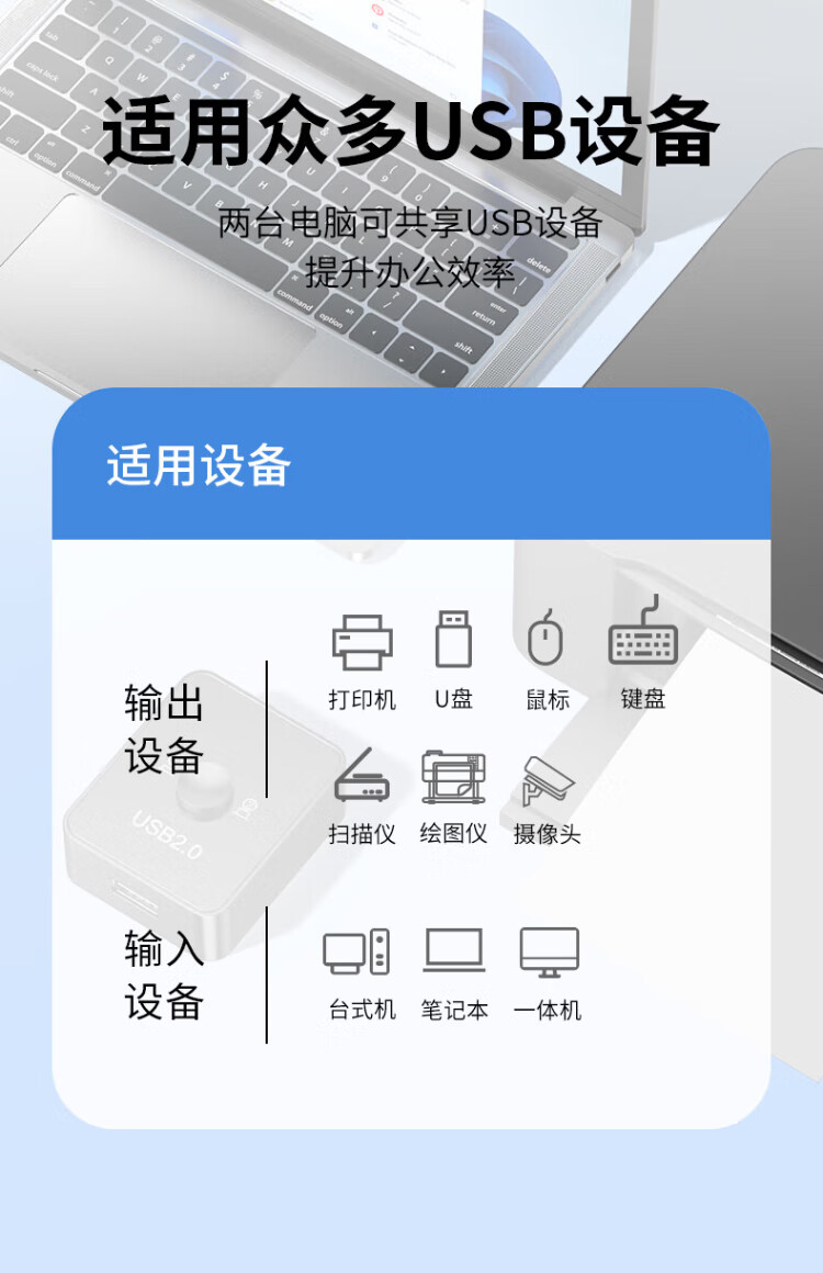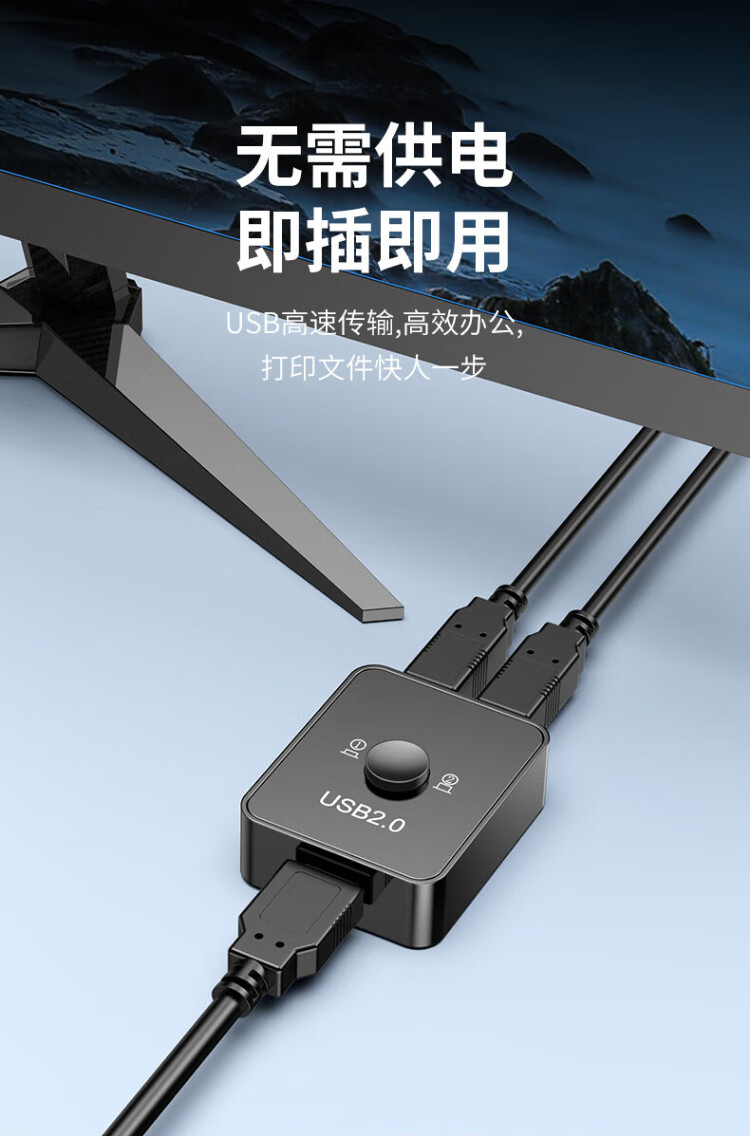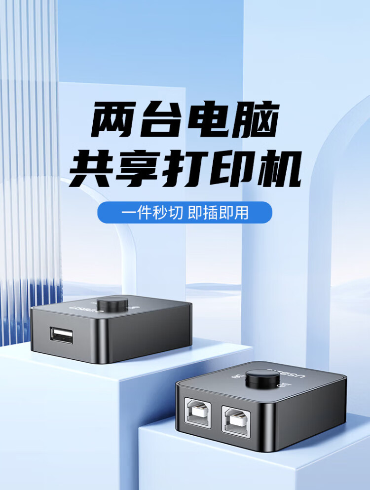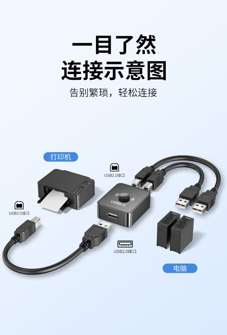 达而稳(DOREWIN)USB打印机共享器一拖二分线器一拖二 二进一出双向切换两台电脑共用鼠标键盘U盘共享