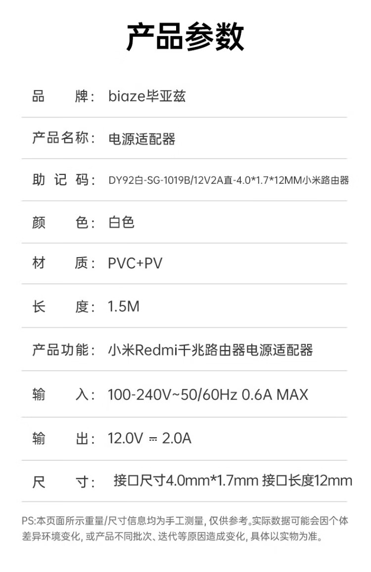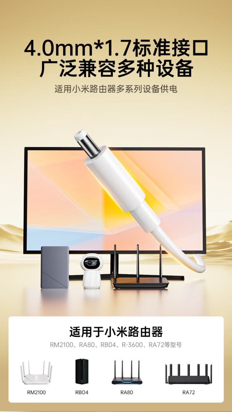 毕亚兹 小米Redmi千兆路由器AX3600/AX6000电源适配器线AX5400/RM2100/RA80充电器12V1.5A电源线2A插头