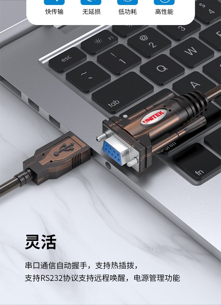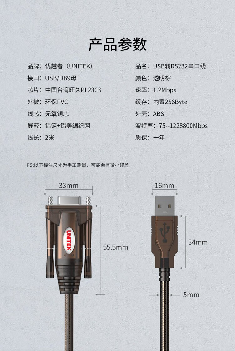 优越者 usb转rs232串口线母头 9孔转usb PLC考勤机收银机标签打印机公对母com口调试线2米Y-105D