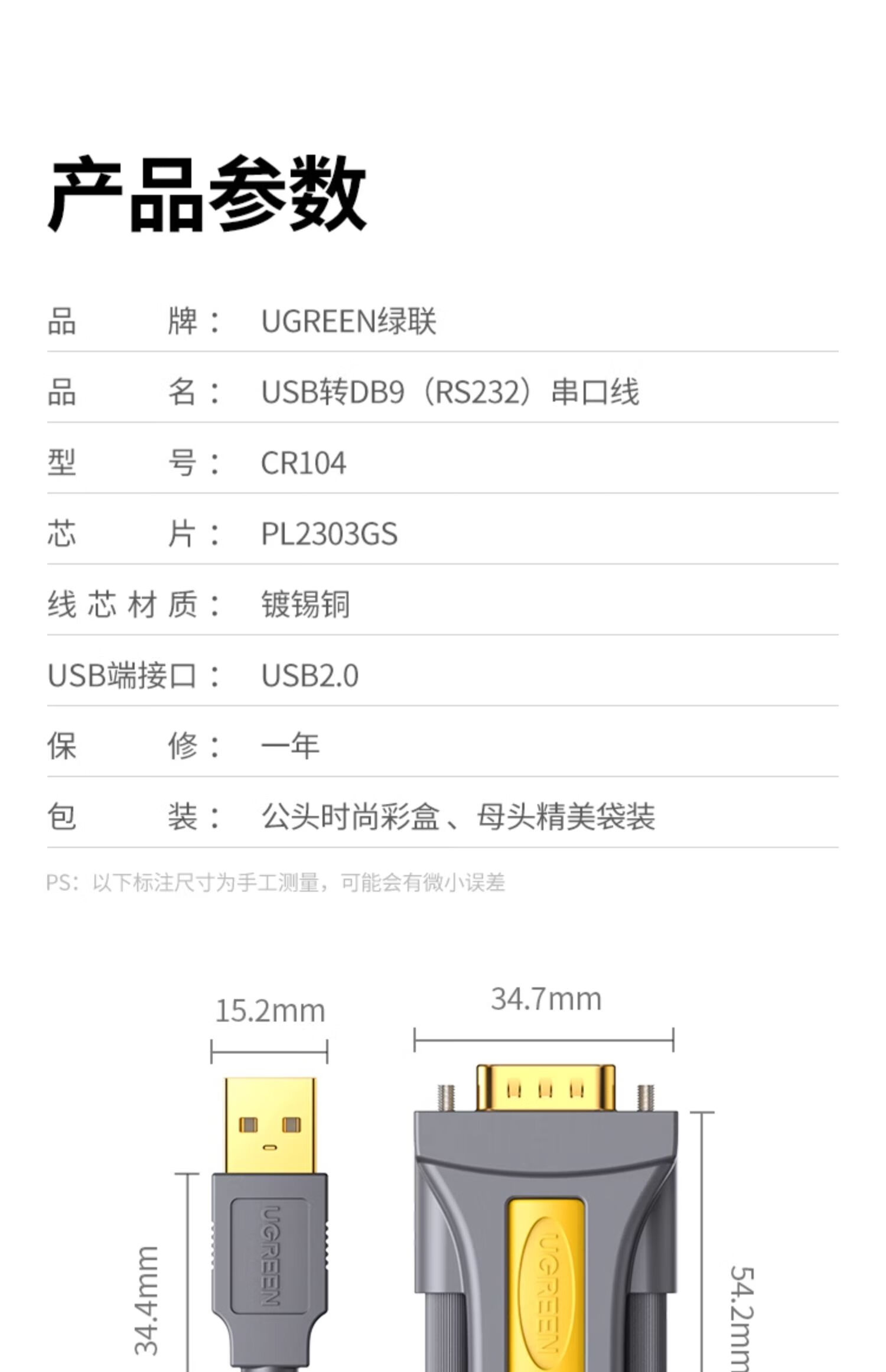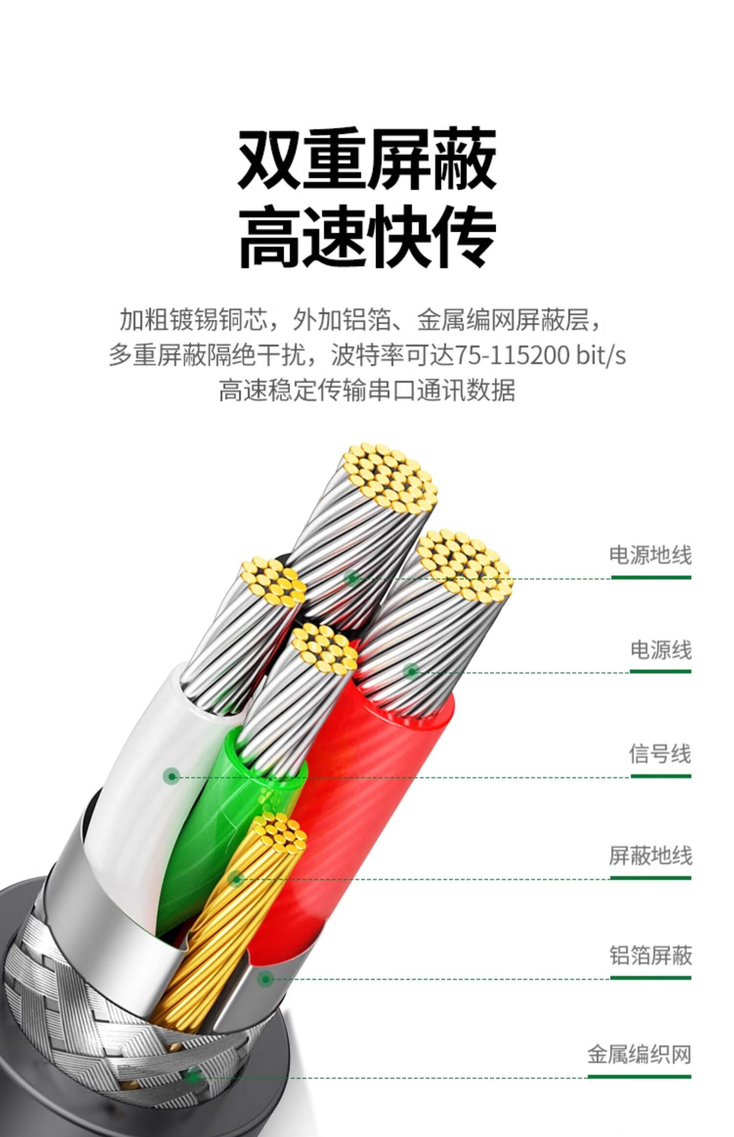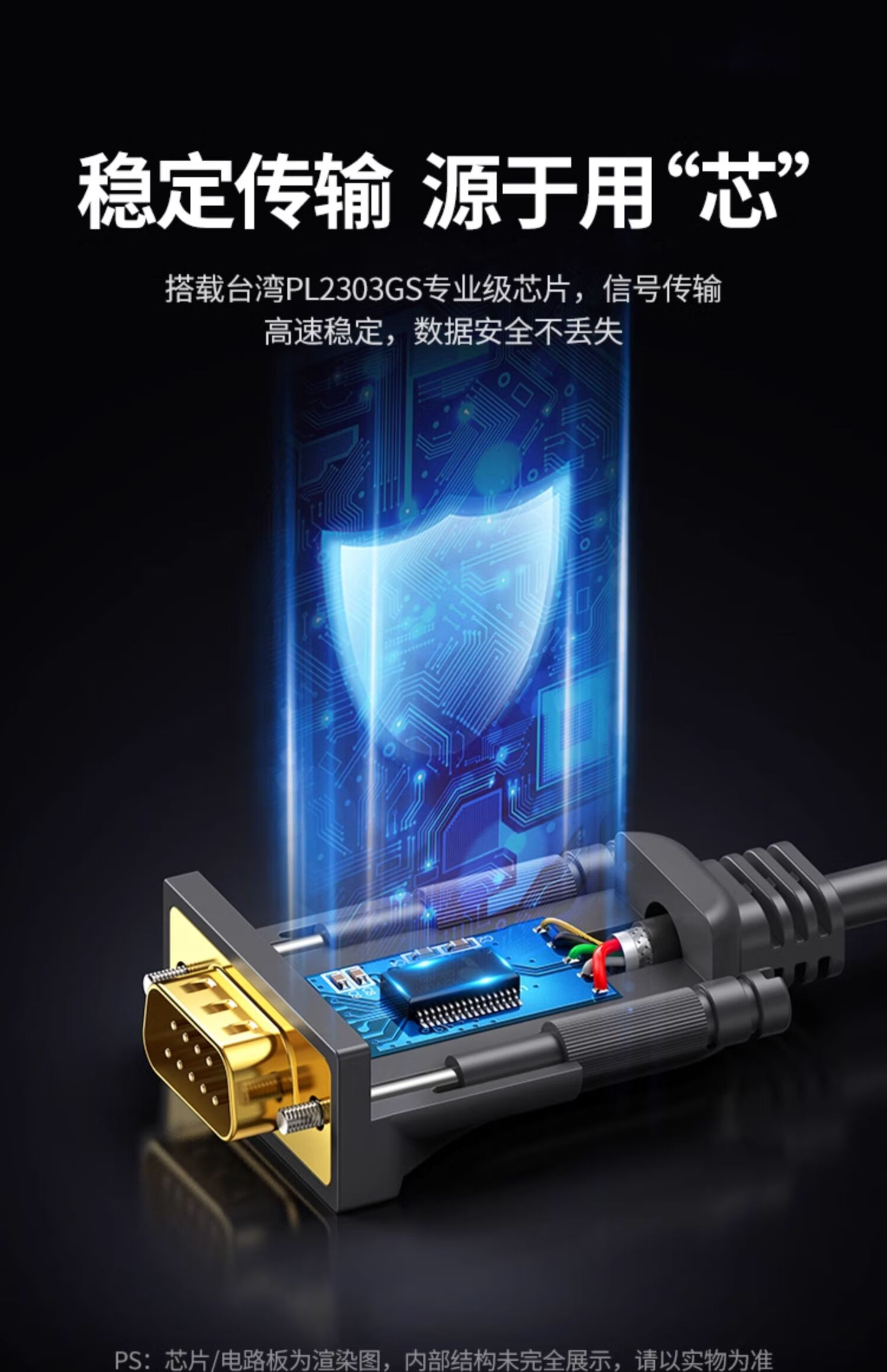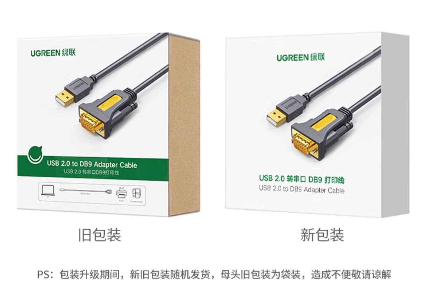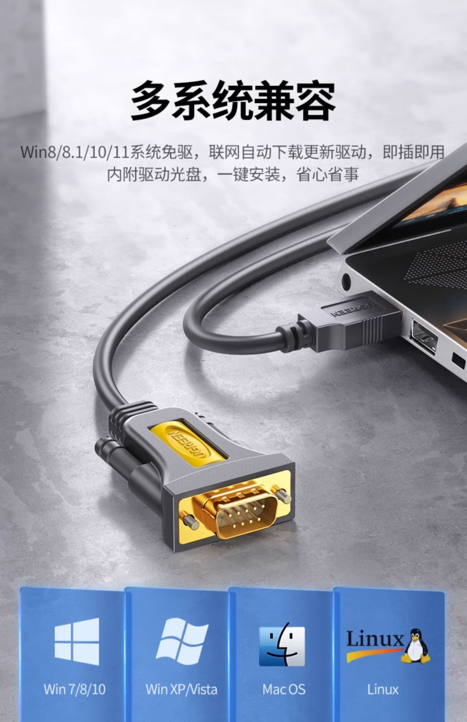 绿联(UGREEN) USB转RS232串口线 USB转DB9针公头转接线 com口调试线支持考勤机收银机标签打印机线 USB转串口 公头 1m