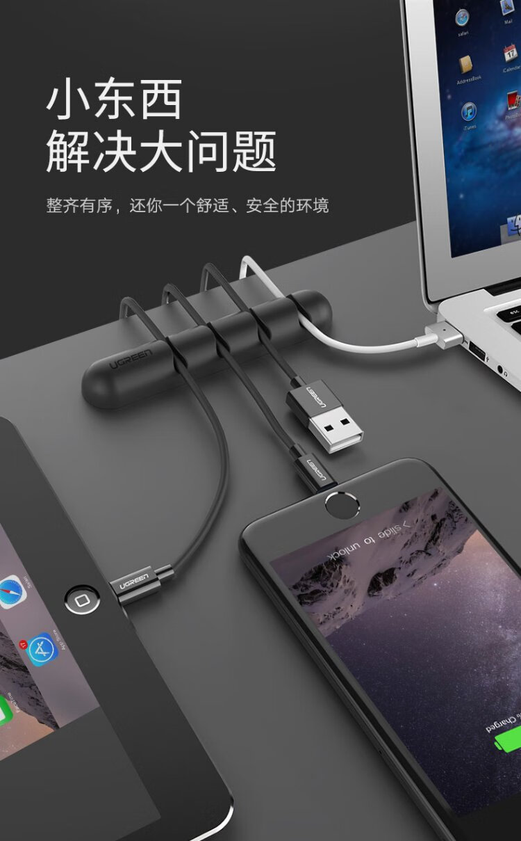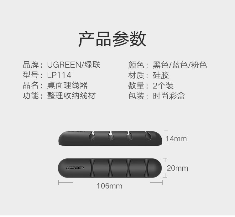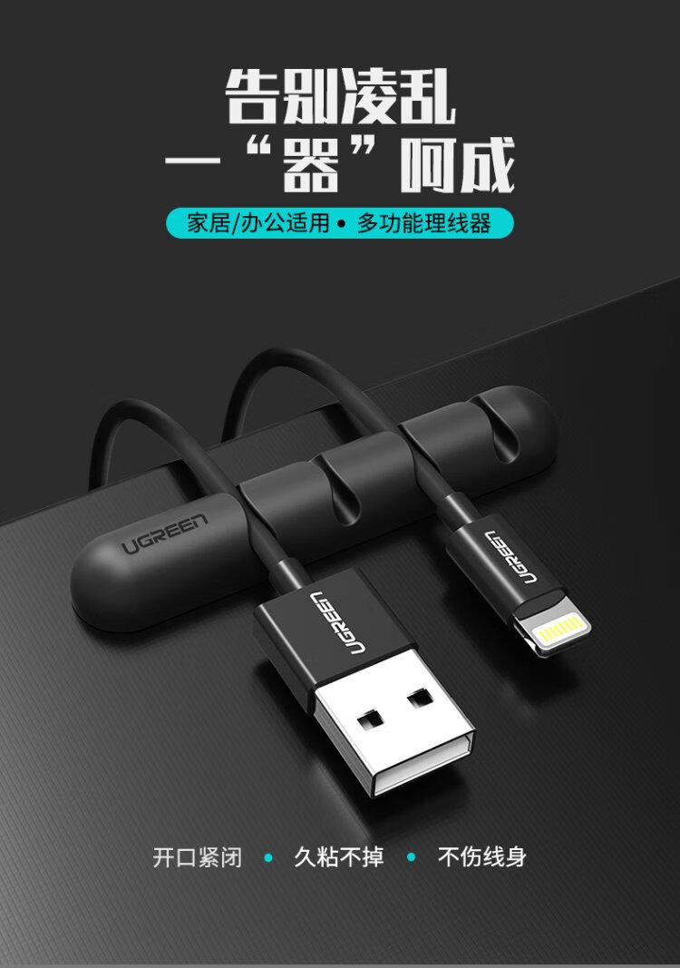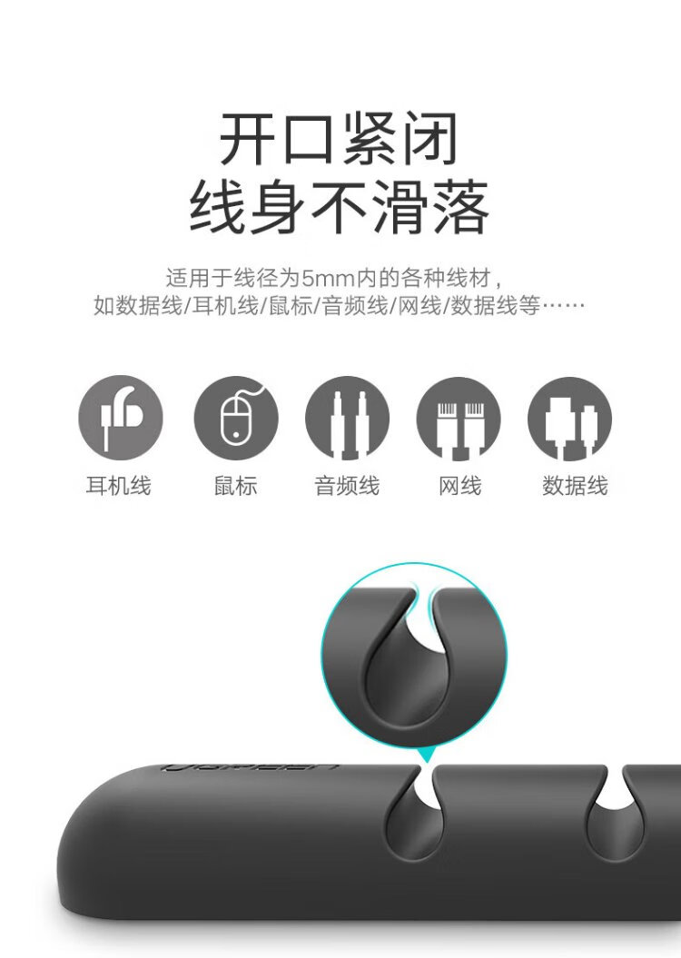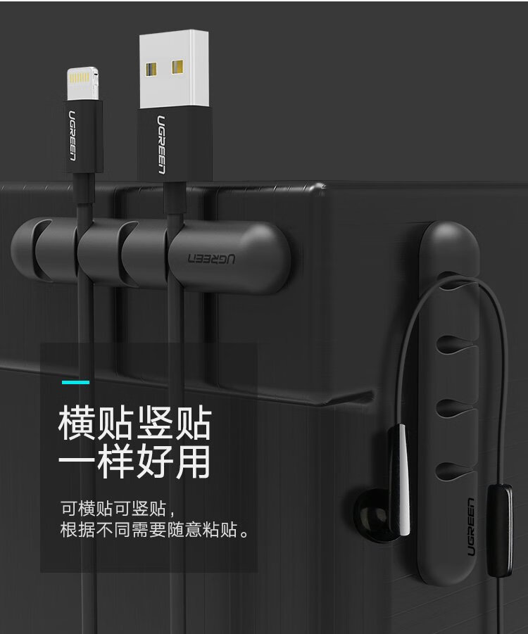 Greenland Desktop Cable Organizer Fixed Power Data Cable Clip Winder Cable Storage and Organizing Cable Clip Binding Cable Ties 2 Pack Black 30762