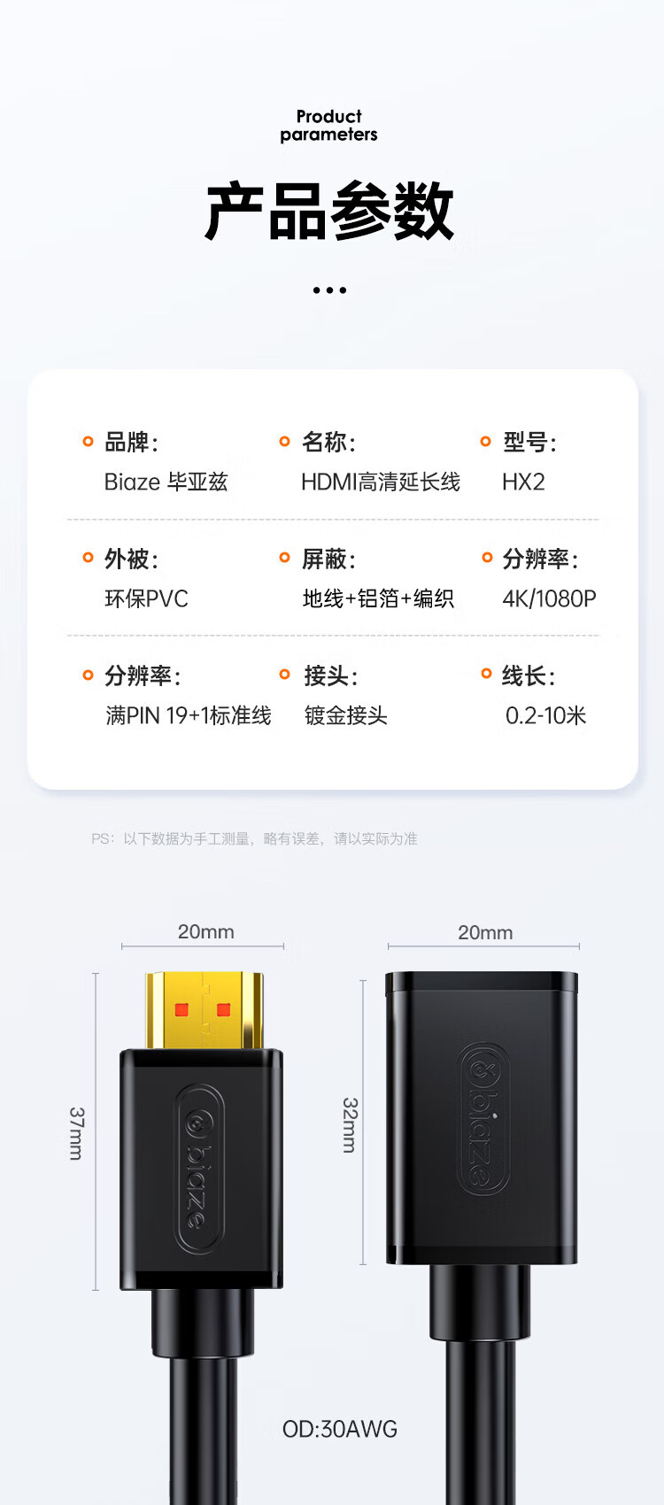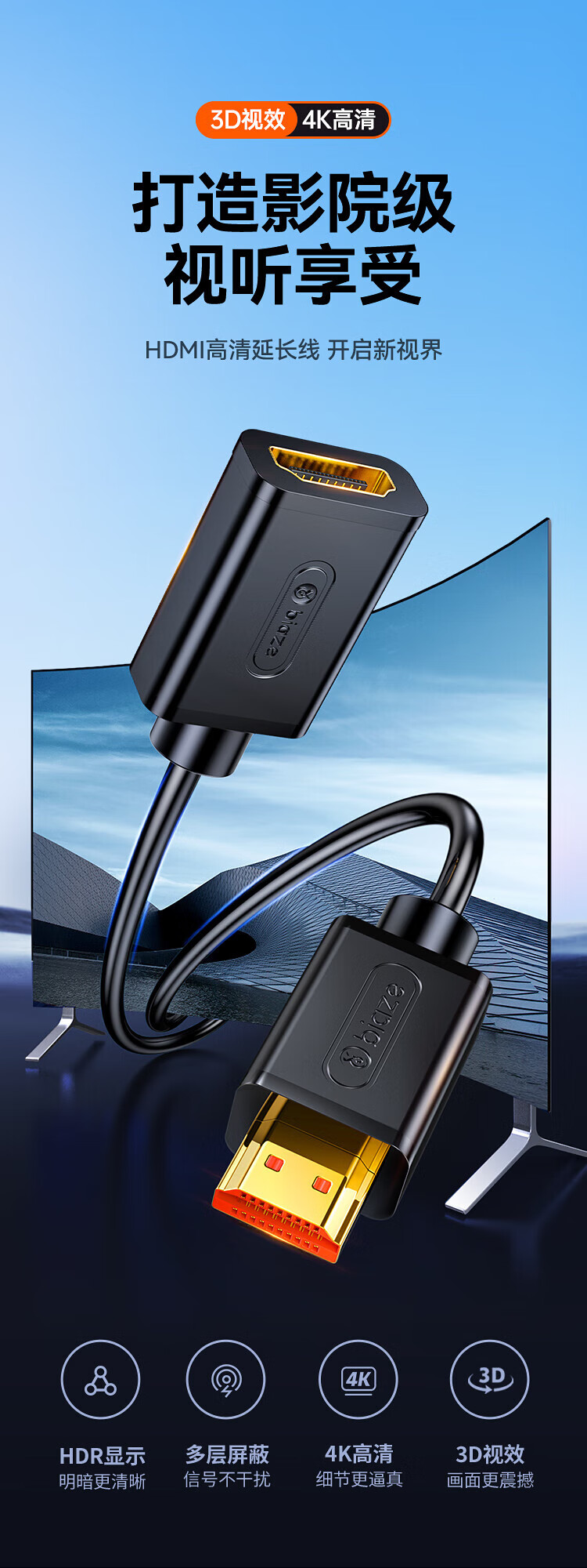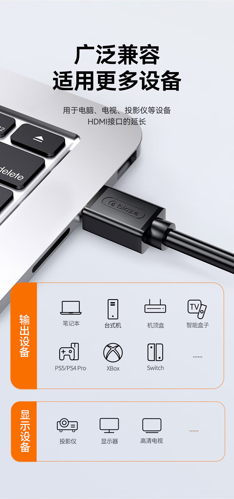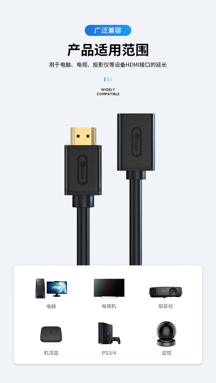 Biaz HDMI-Kabel-Verlängerungskabel 4K60 High-Definition 1 Meter HDMI-High-Definition-Kabel Stecker auf Buchse Version 2.0 3D-Videokabel Computer TV-Box Set-Top-Box Datenverbindungskabel HX2