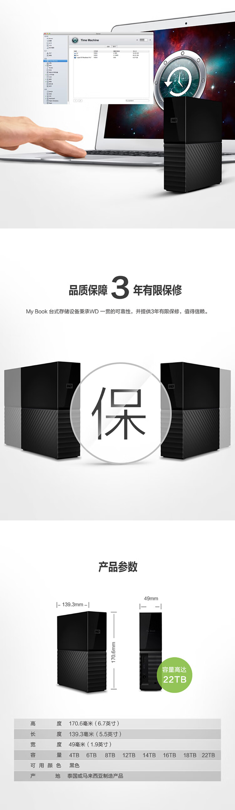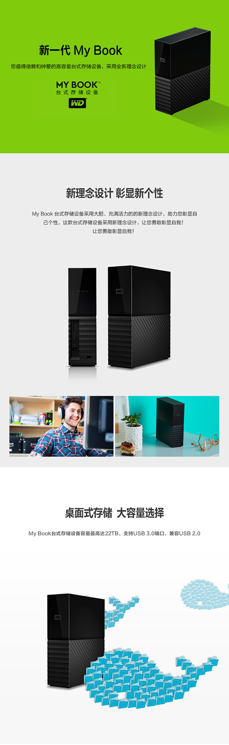 西部数据(WD)14TB 移动硬盘 USB3.0 桌面存储 My Book 3.5英寸 大容量 机械硬盘 移动台式企业级办公 外接加密