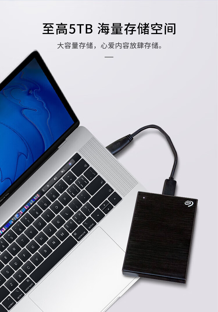 希捷(SEAGATE)移动硬盘 5TB 加密 USB3.0高速 希捷铭2.5英寸 灰 便携大容量机械硬盘 保护隐私 数据恢复服务