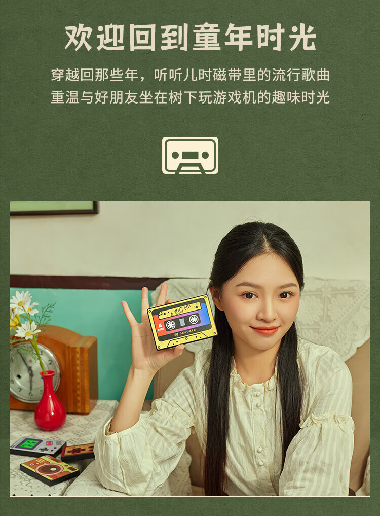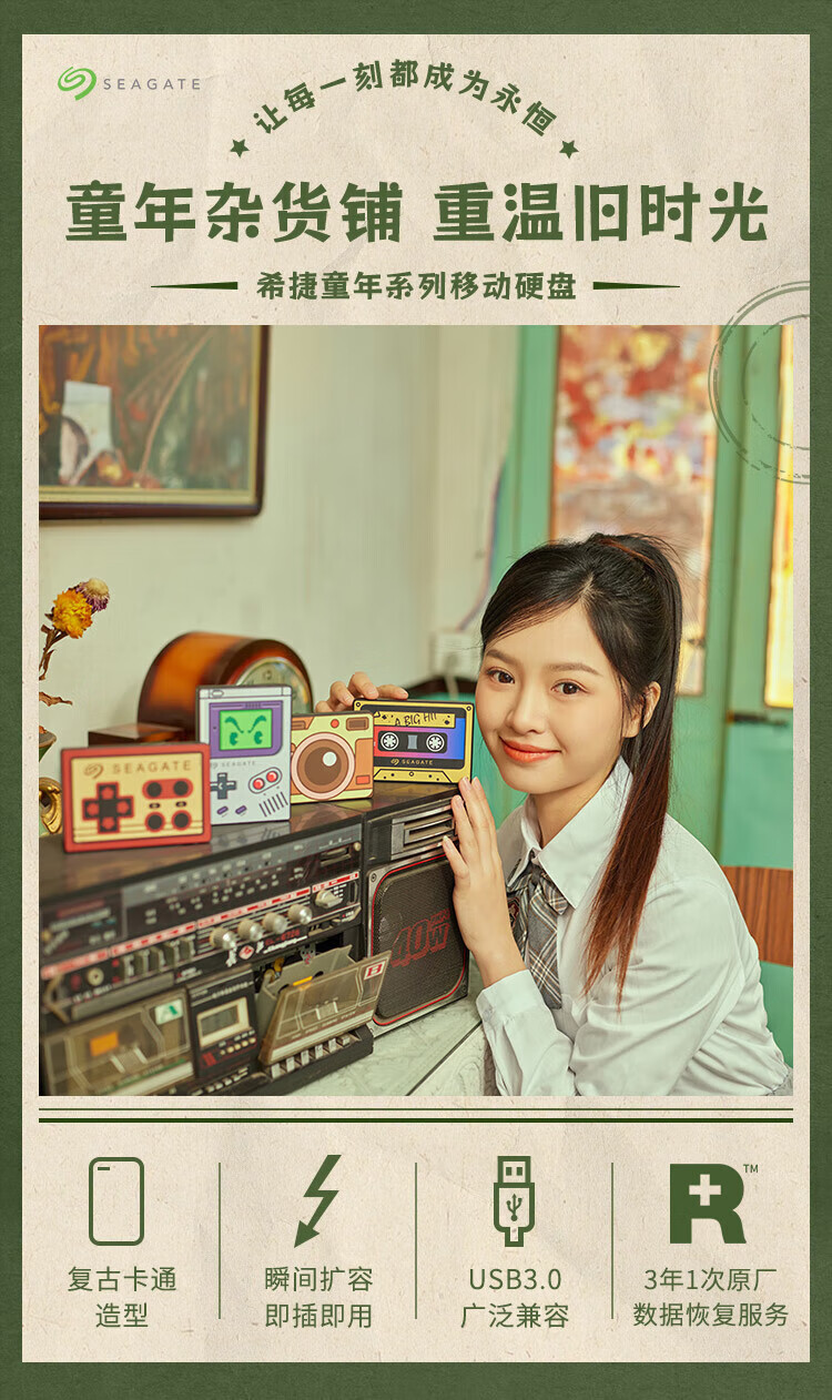 希捷(SEAGATE)移动硬盘 2TB USB3.0高速 机械硬盘 兼容Mac 便捷 童年小相机 复古金 数据恢复服务 外接存储